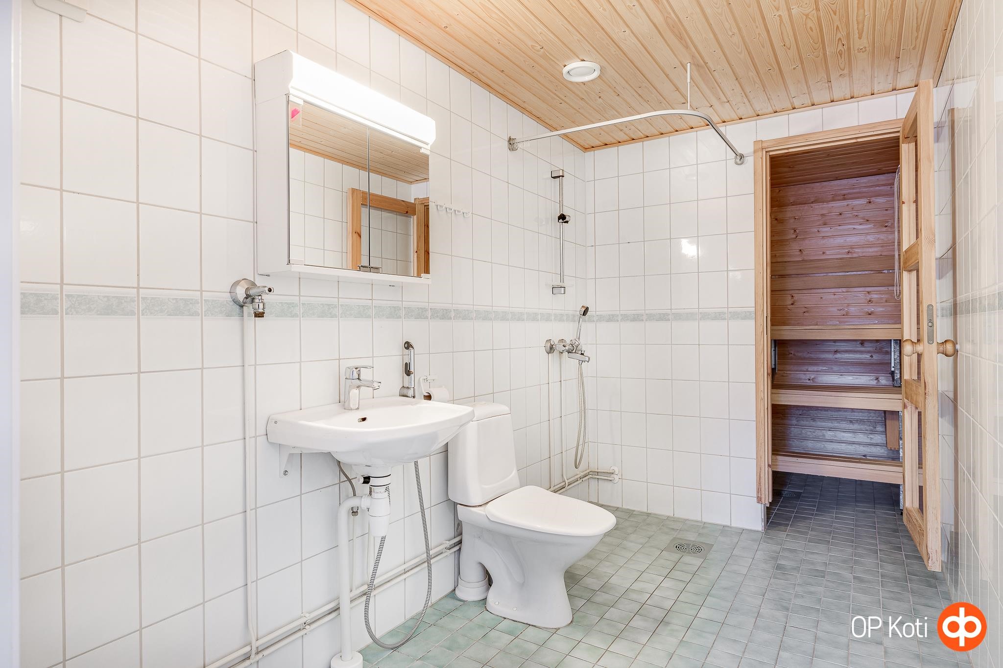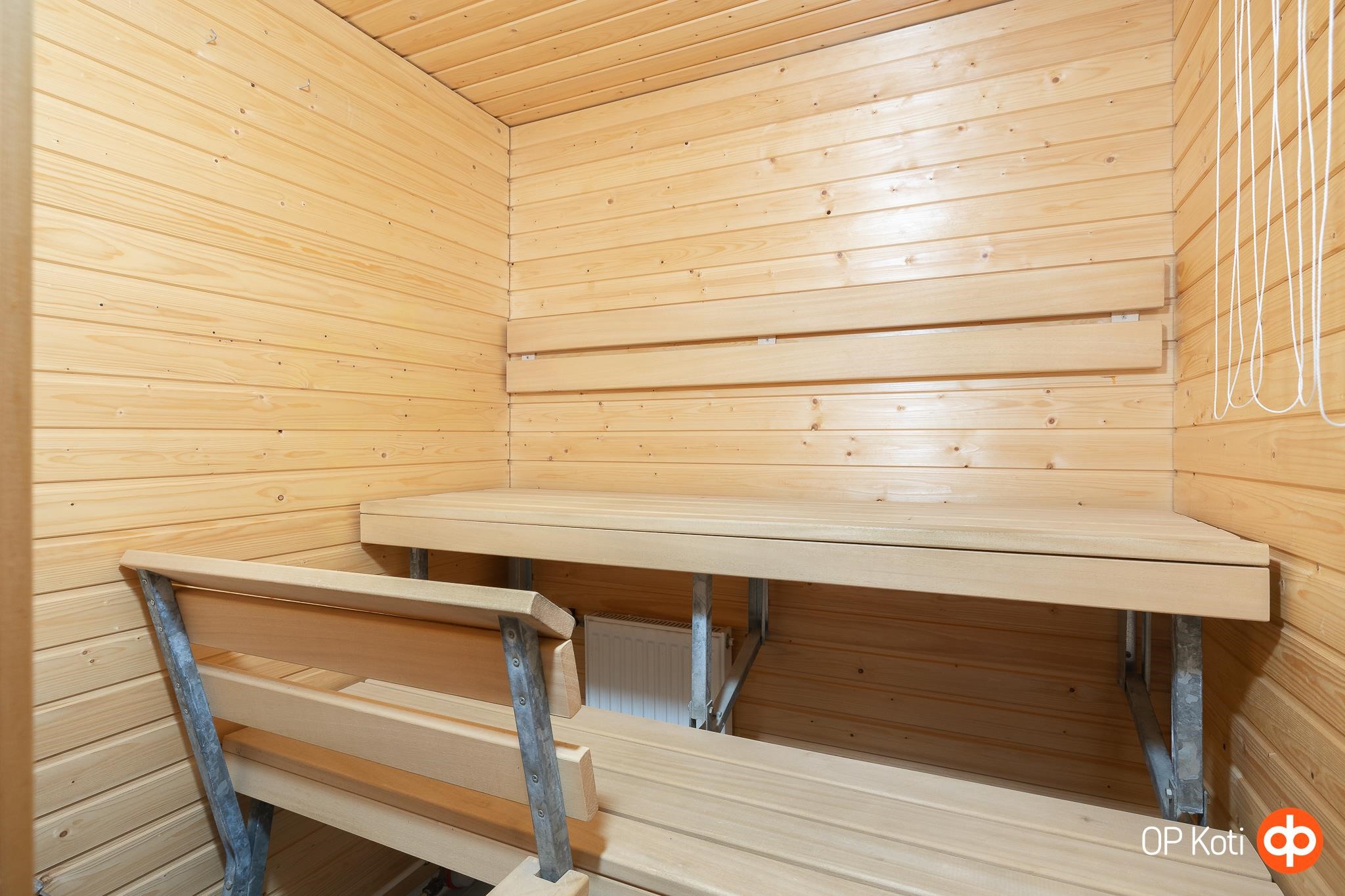 - Sauna, sähkökiuas, kylpyhuone, peilikaappi, pesukoneliitäntä, lattialämmitys, kiinteät valaisimet.