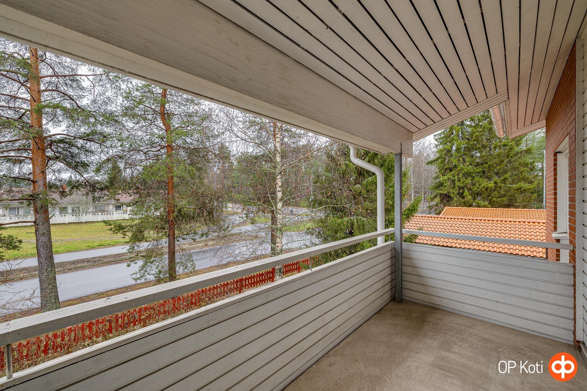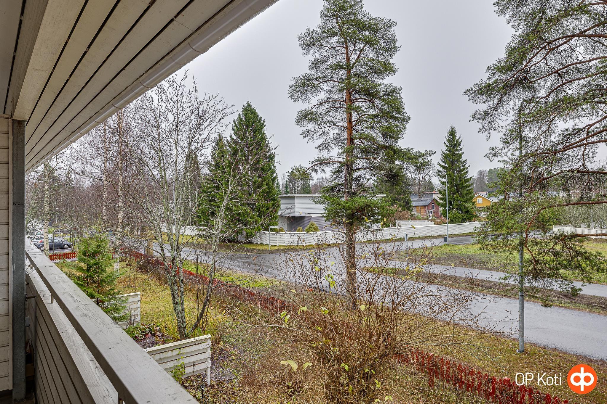- Parvekkeelta näkymä Yrjönrannan tien suuntaan, koilliseen.