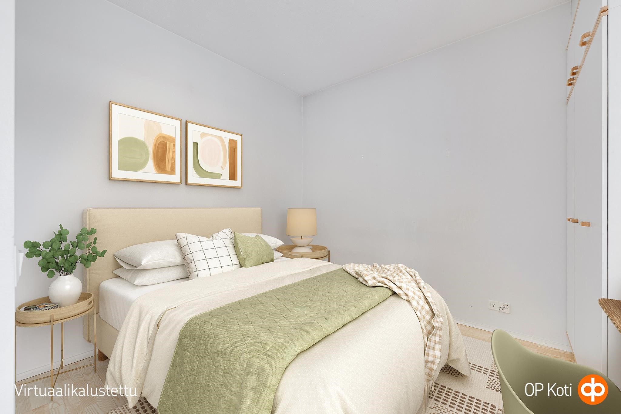 Kodin sydämenä toimii valoisa olohuone-keittiötila, josta on käynti isolle parvekkeelle. Erillisessä makuutilassa on hyvin kaappitilaa, ja tilava kylpyhuone sekä oma sauna tuovat arkeen ripauksen luksusta.