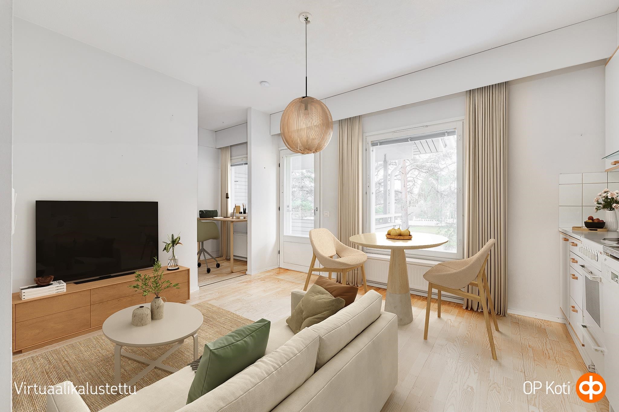 Peruskuntoinen mutta siisti huoneisto sopii erinomaisesti yksin asuvalle tai pariskunnalle, joka arvostaa luonnon läheisyyttä ja rauhallista asuinympäristöä.