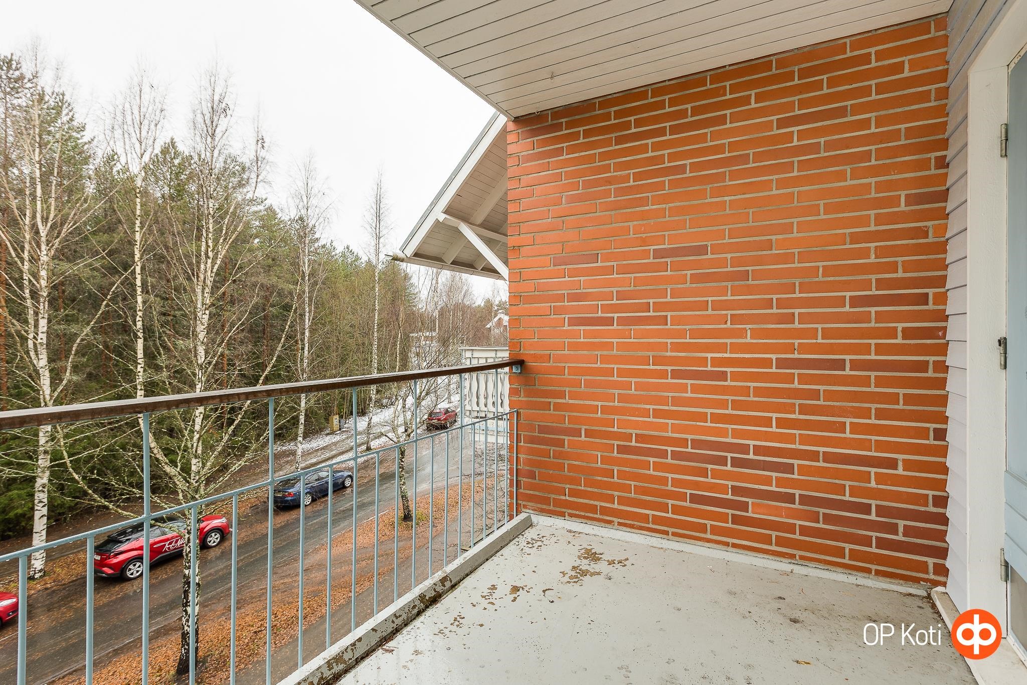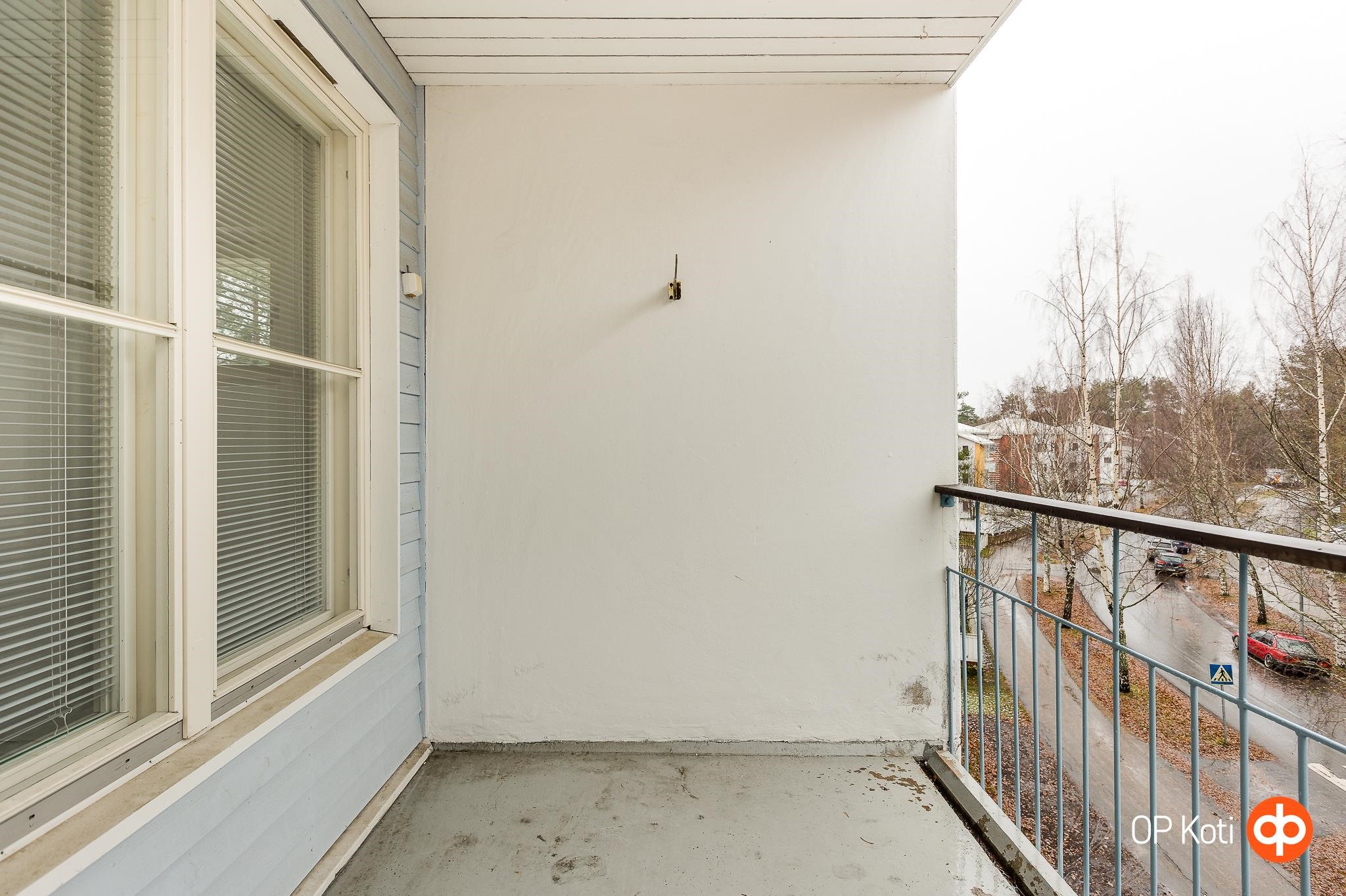 - Sisään vedetty, kulmaparveke lännen suuntaan, näkymä kadulle