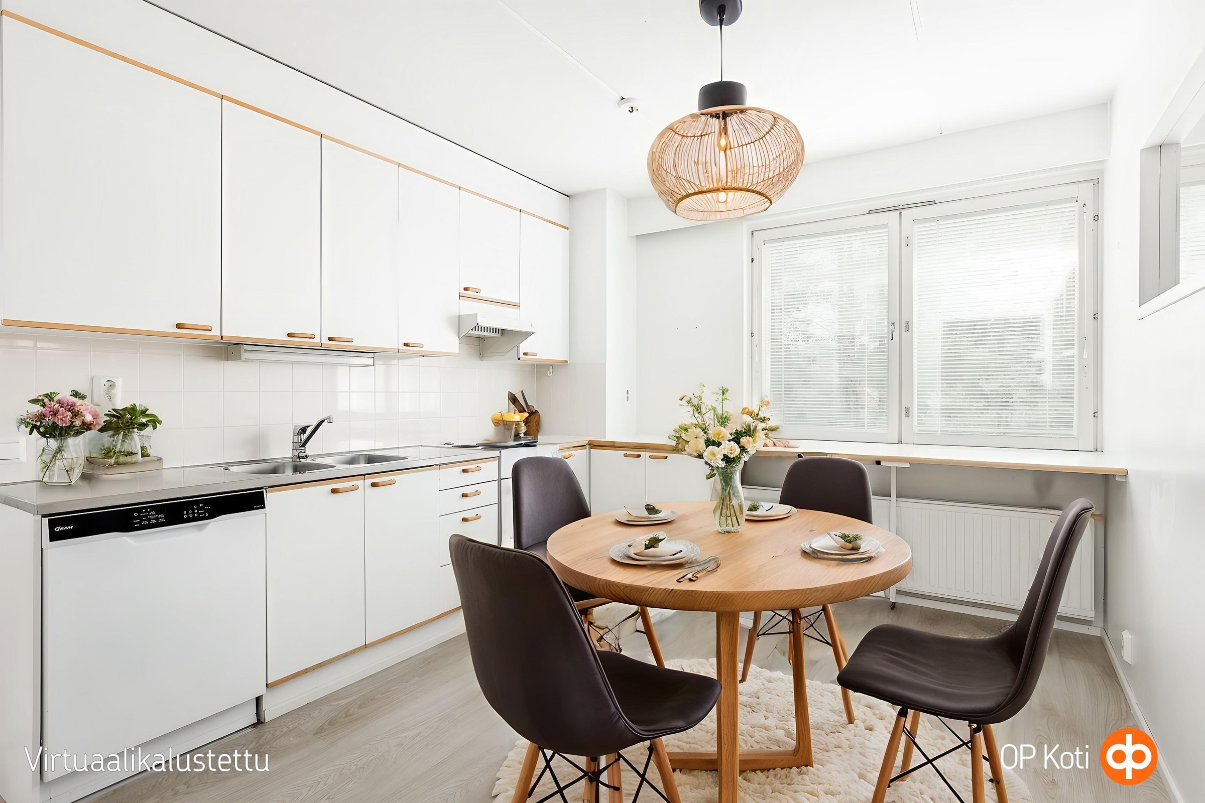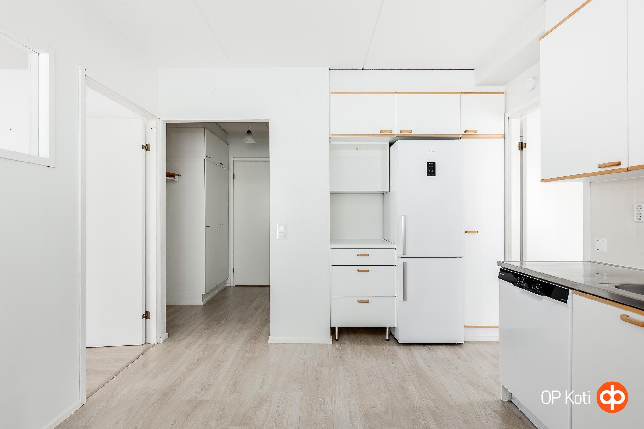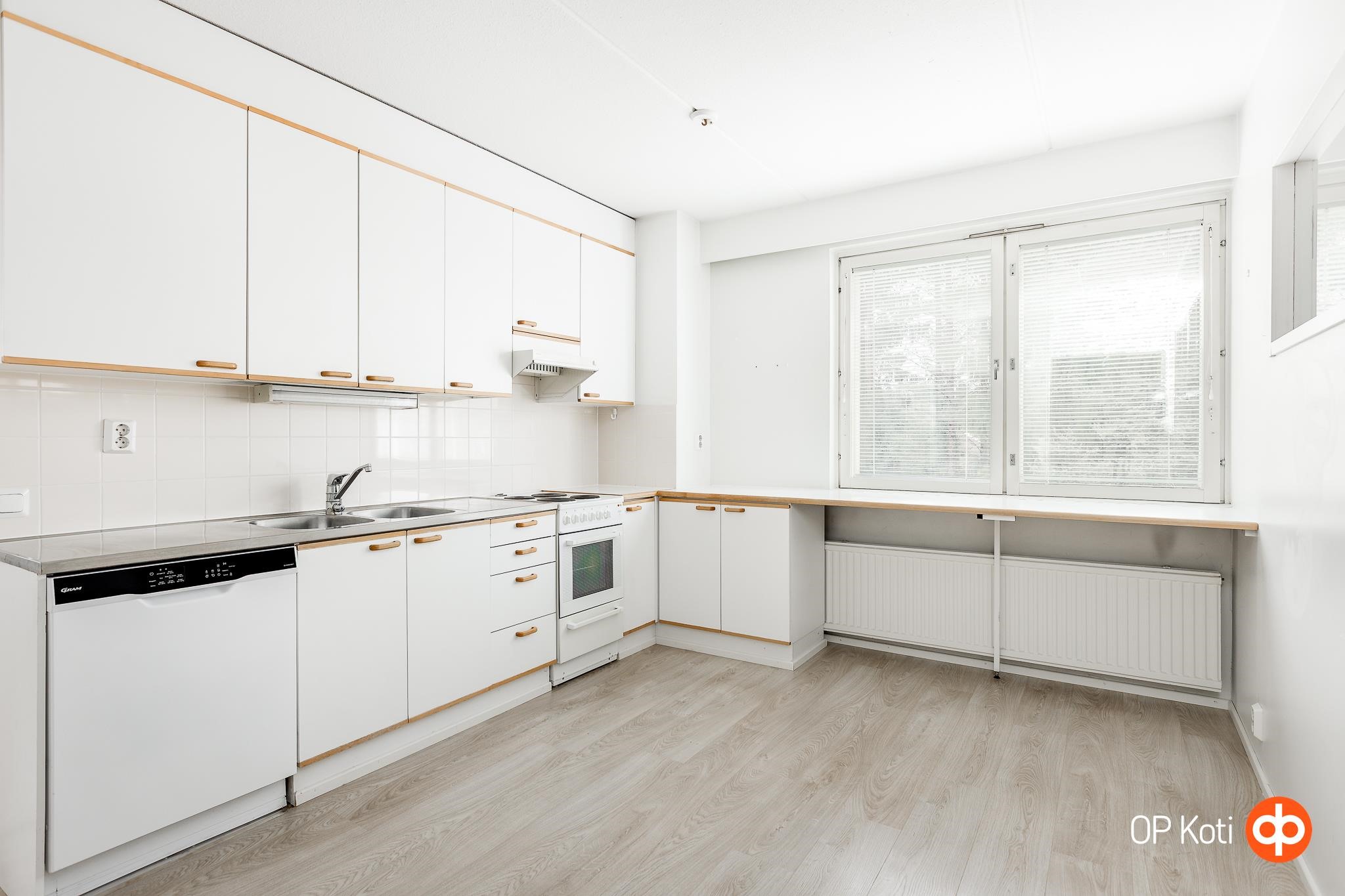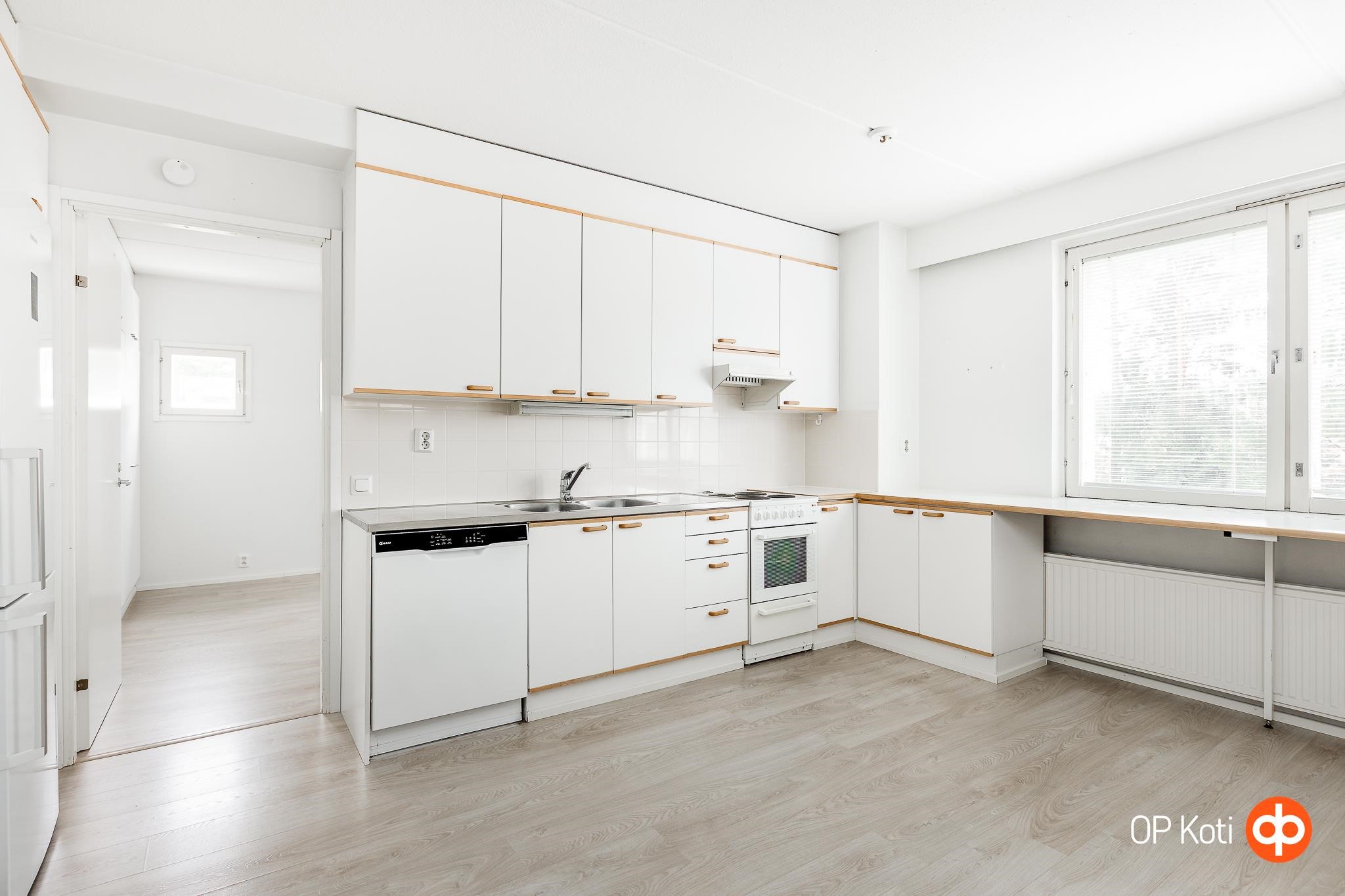 Huoneistoon on uusittu vaaleat laminaattilattiat. Erillinen keittiö tarjoaa erinomaiset puitteet ruoanlaittoon ja ruokapöydälle jää mukavasti oma tila. Sisään vedetty kulmaparveke on ilta-auringon suuntaan. Remontoidussa kylpyhuoneessa ja saunassa on panostettu laatuun ja mukavuuteen, jossa on harmoninen värimaailma.