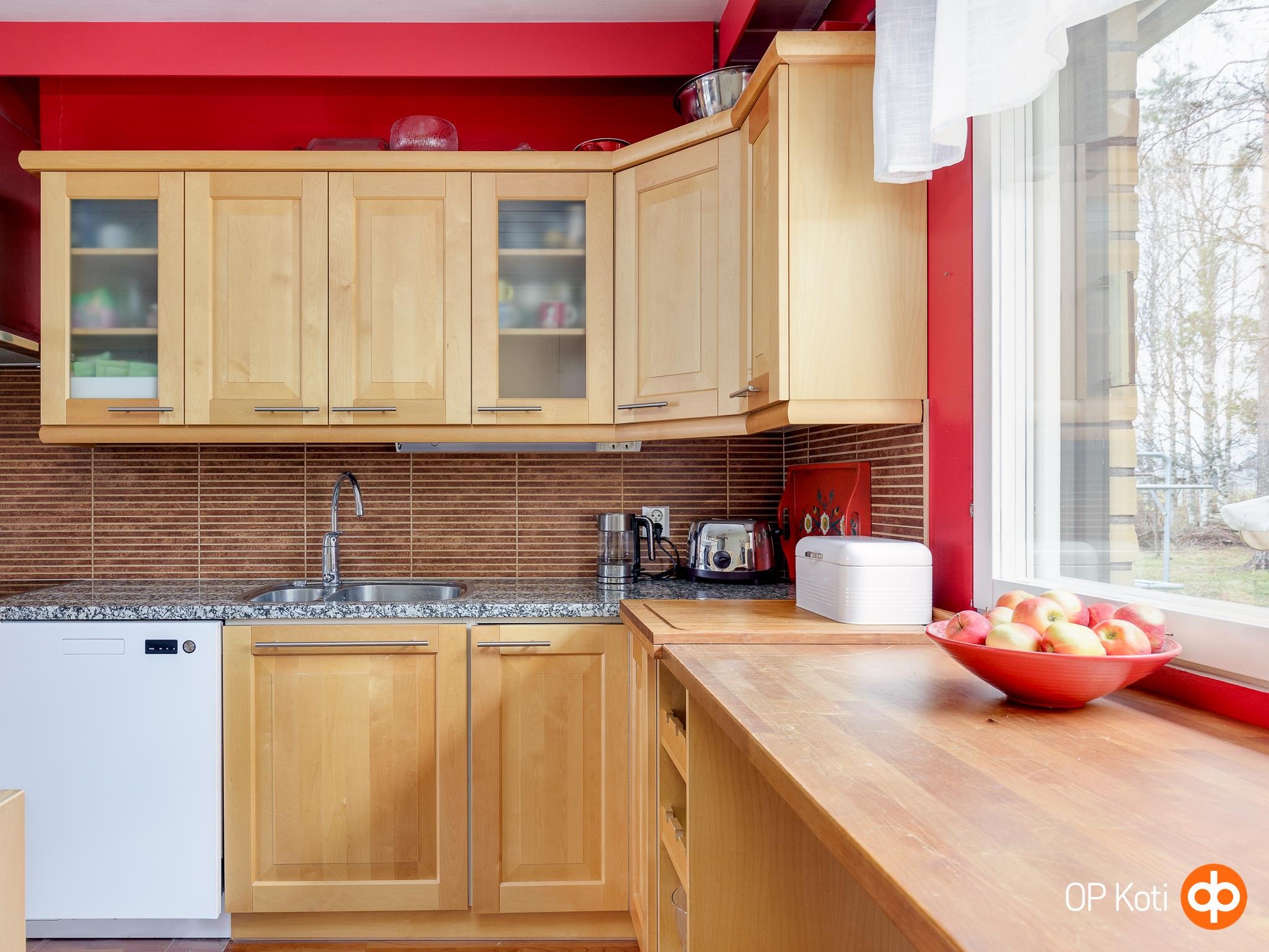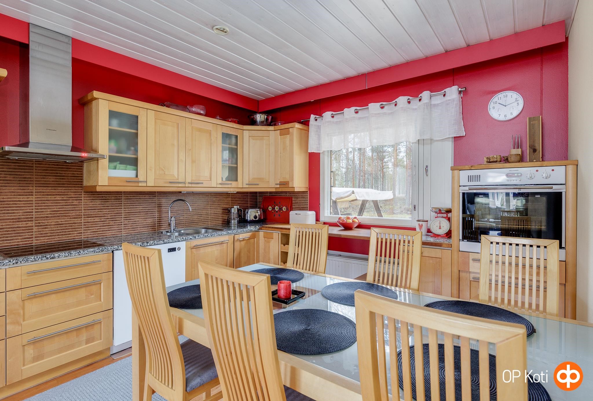 - Jääkaappi, pakastekaappi, erillisuuni kiertoilmauuni, keraaminen liesi, liesituuletin talotuuletin, mikroaaltouuni, astianpesukone uusittu v. 2022, kaapistot, kiinteät valaisimet, pöytätasojen materiaali Viitasaaren keltainen marmori. Kaapistot Materiaali lämpökäsitelty firenze-koivu