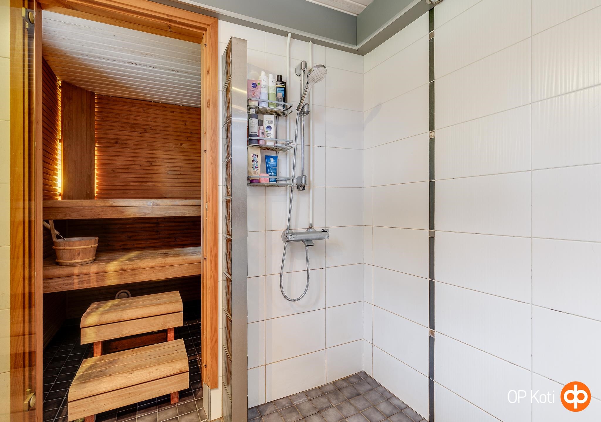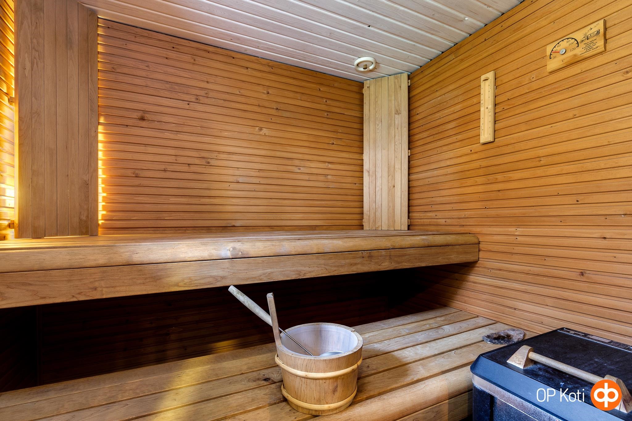 - Sauna, sähkökiuas ainavalmis, kylpyhuone, erillinen wc, suihku, peilikaappi, allaskaappi, pesukoneliitäntä, lattialämmitys, kiinteät valaisimet.