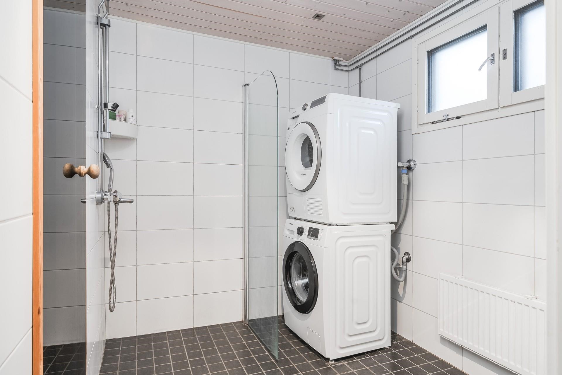 - Sauna, sähkökiuas, kylpyhuone, erillinen wc, suihku, suihkuseinä, peilit, pesukoneliitäntä, lattialämmitys sähköinen, kiinteät valaisimet.