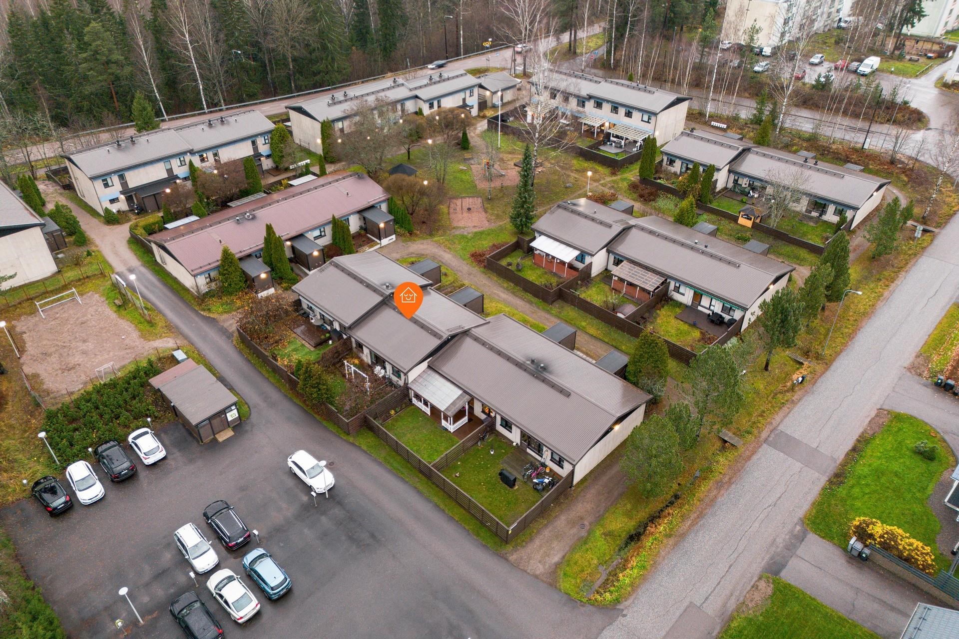 Yksitasoinen rivitalokoti halutulla pientaloalueella. Selkeä pohjaratkaisu. Keittiön tilava ruokailutila avautuu olohuoneeseen. Paljon säilytystilaa. Autopaikka sähköauton latausmahdollisuudella. Alue on lapsiperheiden suosimaa sillä koulut, päiväkodit, palvelut ja monipuoliset harrastusmahdollisuudet ovat aivan lähiympäristössä. Kiinteistönhoidosta vastaa huoltoyhtiö ja isännöinnistä ammatti-isännöitsijä.