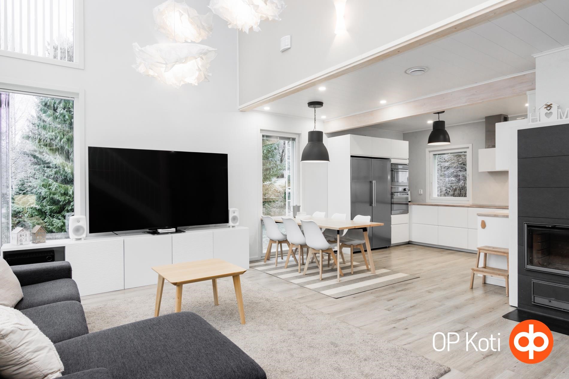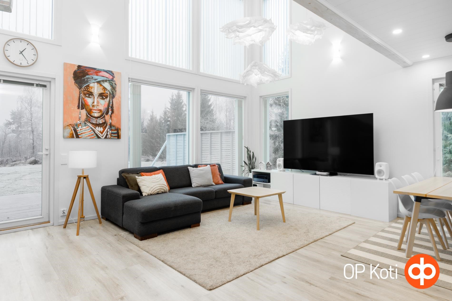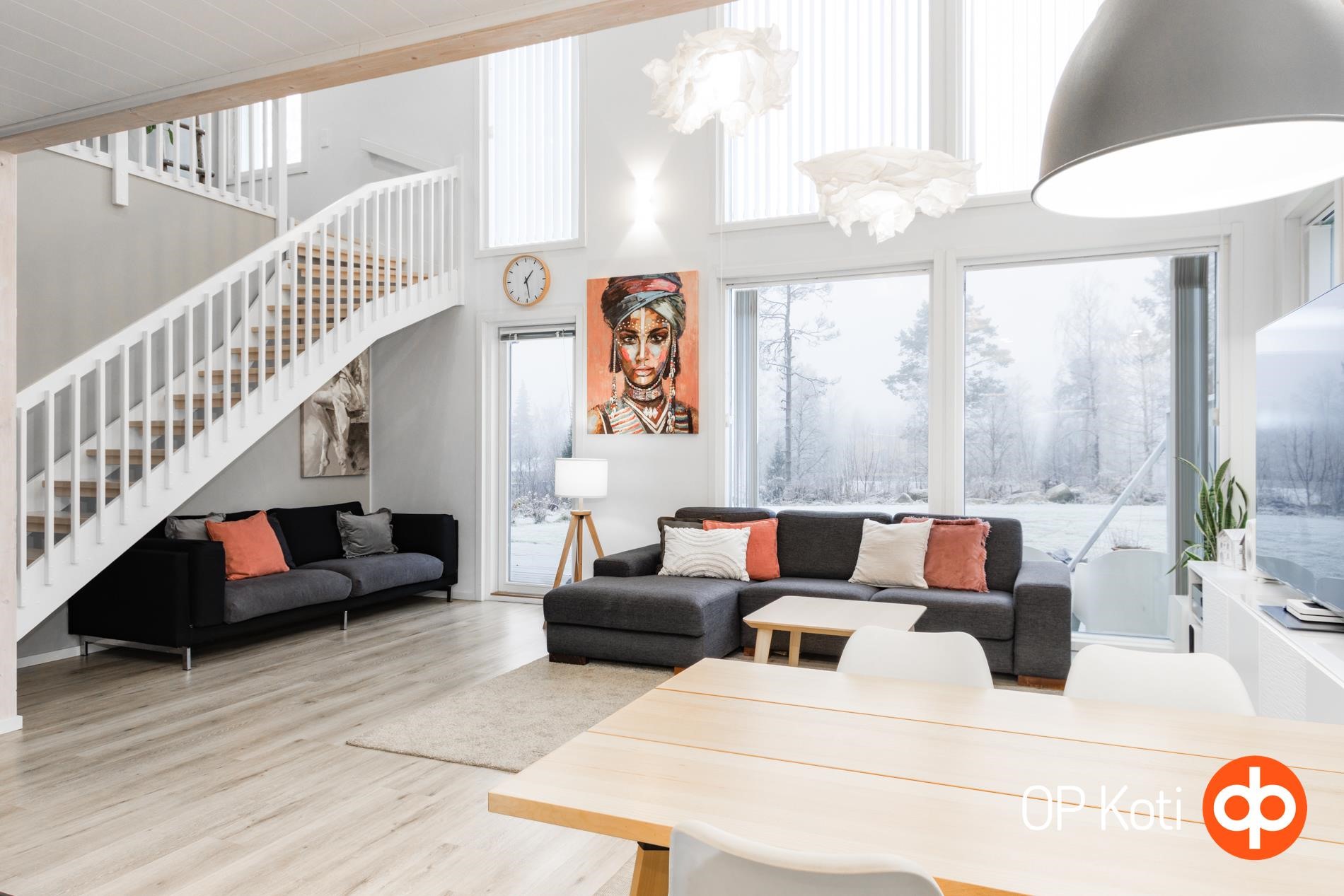 Tämä koti on moderni ja hyvin pidetty kokonaisuus. Talon tyylikkäät sisustuksen sävyt, arvostetut ja käytännölliset vinyylilattiat, olohuoneen korkeus, suuret ikkunat ja niiden suoma valoisuus kelpaavat vaativammallekin asujalle.