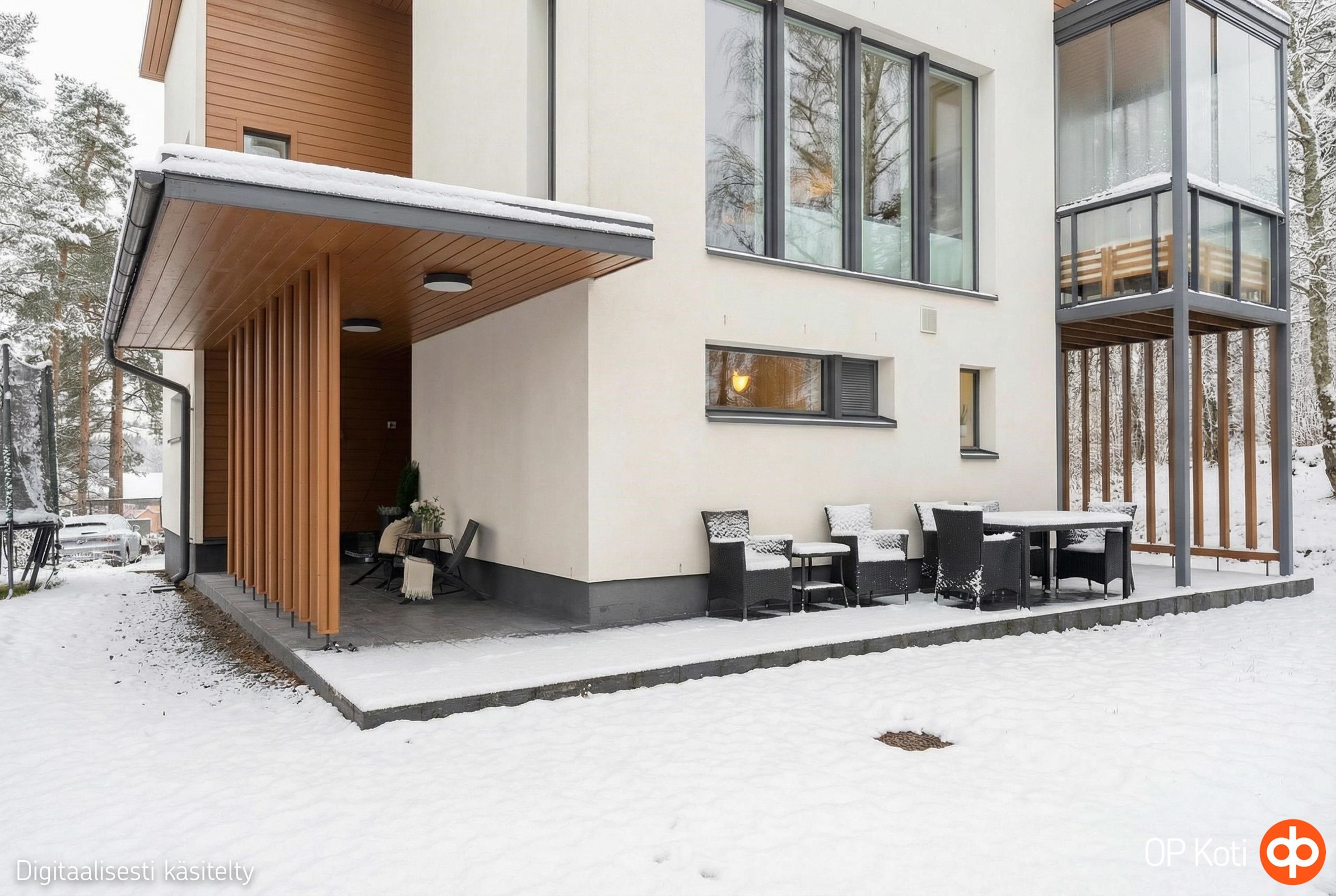 Heti vapaa! Päättyvän kadun varrella, rauhallisella sijainnilla, vapautumassa vuonna 2016 valmistunut tyylikäs, rapattu erillistalo + autotalli/varasto. Kodin sisääntulokerroksesta löytyy kaksi makuuhuoneena toimivaa tilaa, kodinhoitohuone sekä viihtyisä saunaosasto sadevesisuihkuineen. Yläkerrasta löytyvät perheen avarat ja valoisat yhteiset tilat sekä yksi makuuhuone, kylpyhuone ja avara lasitettu parveke. Parvekkeen alla on terassi, jossa on valmius porealtaalle ja kaminalle. Terassilta on käynti saunaosastolle ja kodinhoitohuoneeseen, jonka kuraeteistä arvostavat ainakin koiraperheet. Kellarihuoneista tästä talosta ei löydy. Maalämpö ja vesikiertoinen lattialämmitys on edullinen ja miellyttävä jalan alla viileään aikaan ja kesähelteellä helpotusta tuo maalämpöpumpun viilennyspuhallin.