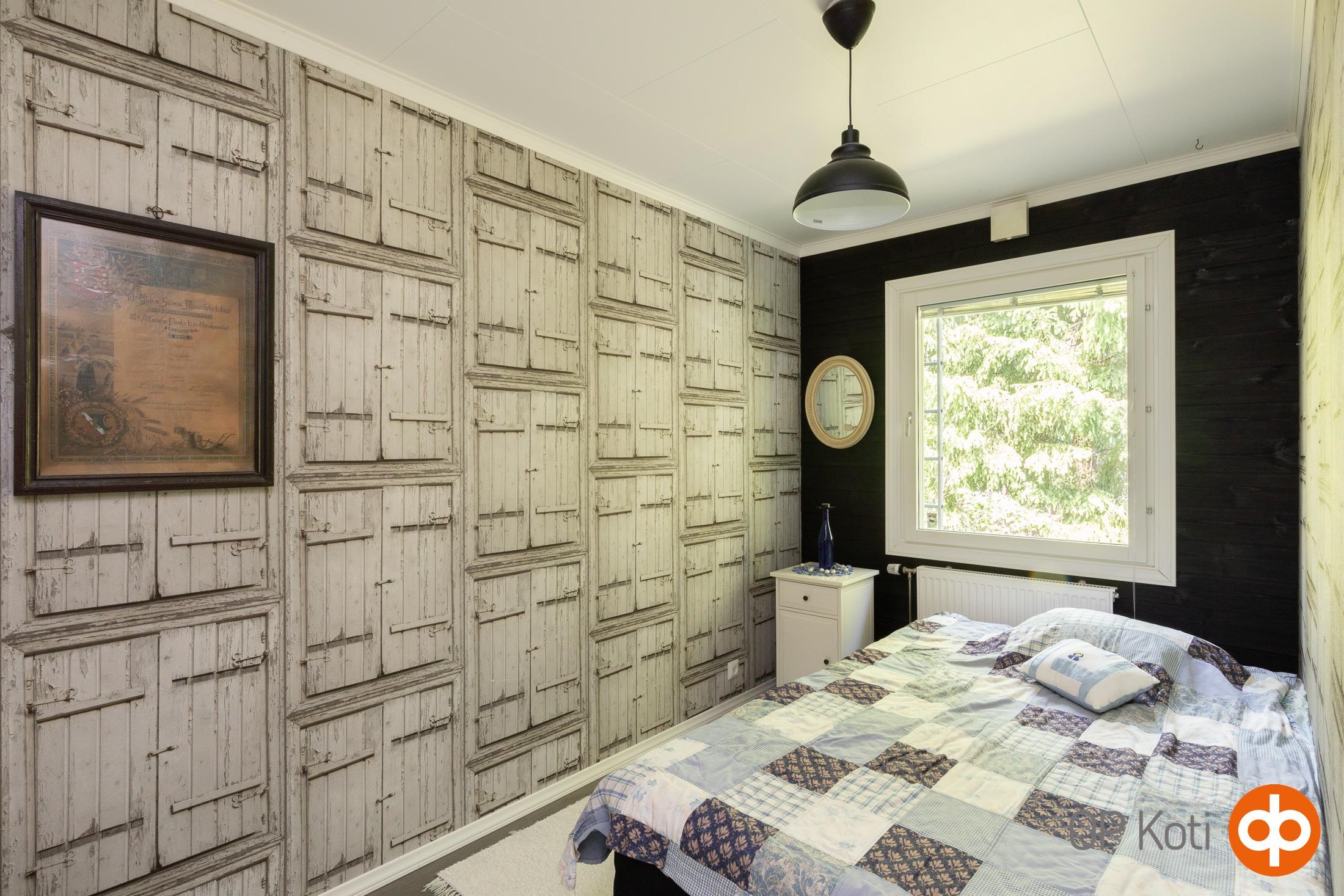 Keittiö: tapetti, vinyylilattia. Olohuone: tapetti, viinyylilattia. Kodinhoitohuone: muovitapetti, muovimatto. Sauna: paneli, laatta. Kylpyhuone: laatta, laatta. Alakerran makuuhuoneet: tapetti, vinyylilankku. Yläkerran makuuhuoneet: tapetti, laminaatti. Alakerran wc: tapetti, laatta. Yläkerran wc: laatta, muovimatto.