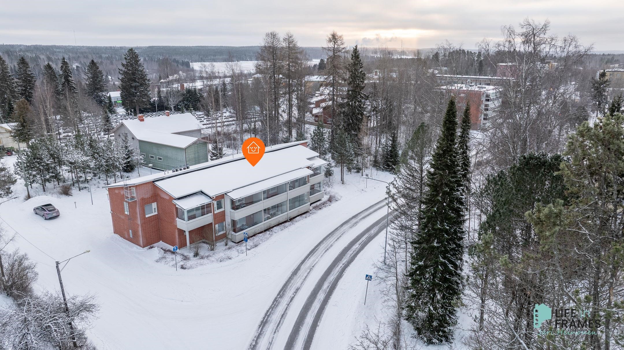 Läheltä keskustan palveluita on vapaana 2H+KK+S. Ensimmäisen kerroksen huoneisto on siistissä käyttökunnossa. Olohuoneesta käynti lasitetulle parvekkeelle.