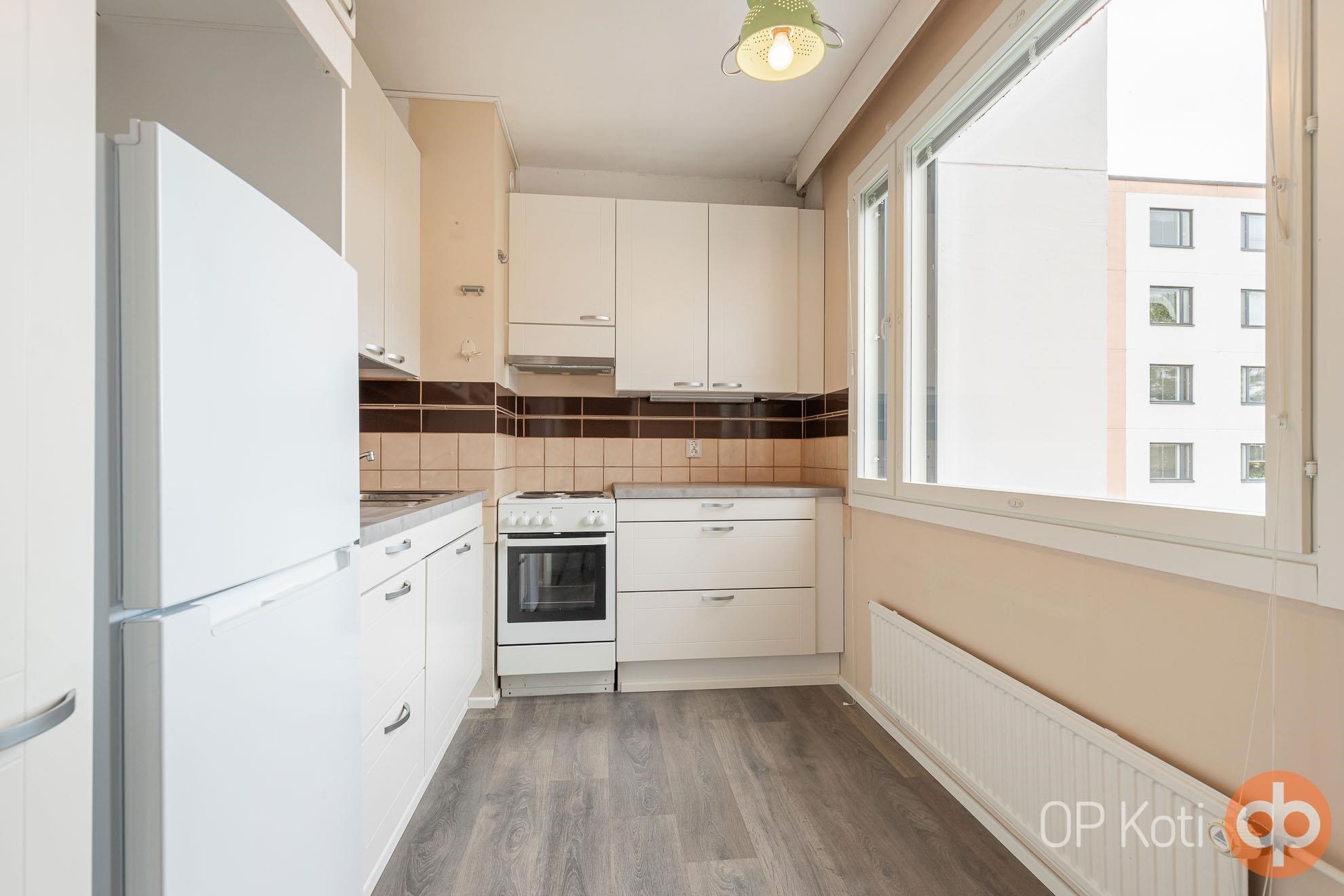 Asunto sijaitsee talon kolmannessa kerroksessa ja siinä on lasitettu parveke, josta on näkymät länteen. Asunnossa on tilava keittiö, joka on remontoitu vuonna 2012 ja varustettu Puustellin kaapistoilla. Asunnossa on myös vaatehuone, joka tarjoaa runsaasti säilytystilaa.