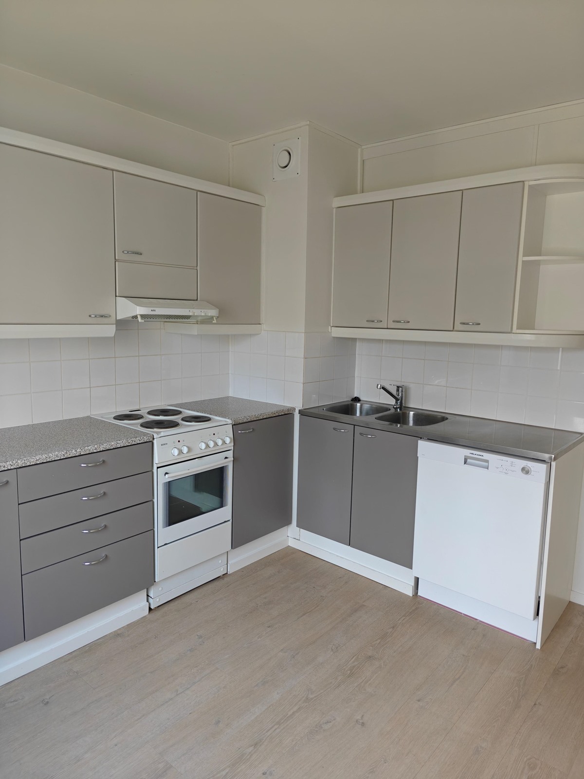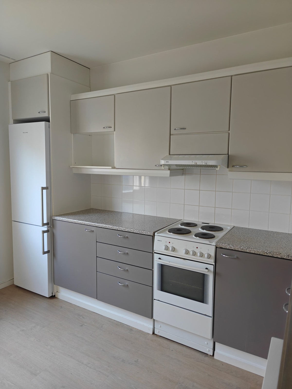 - Jääkaappipakastin, sähköliesi, liesikupu, astianpesukone, kaapistot.