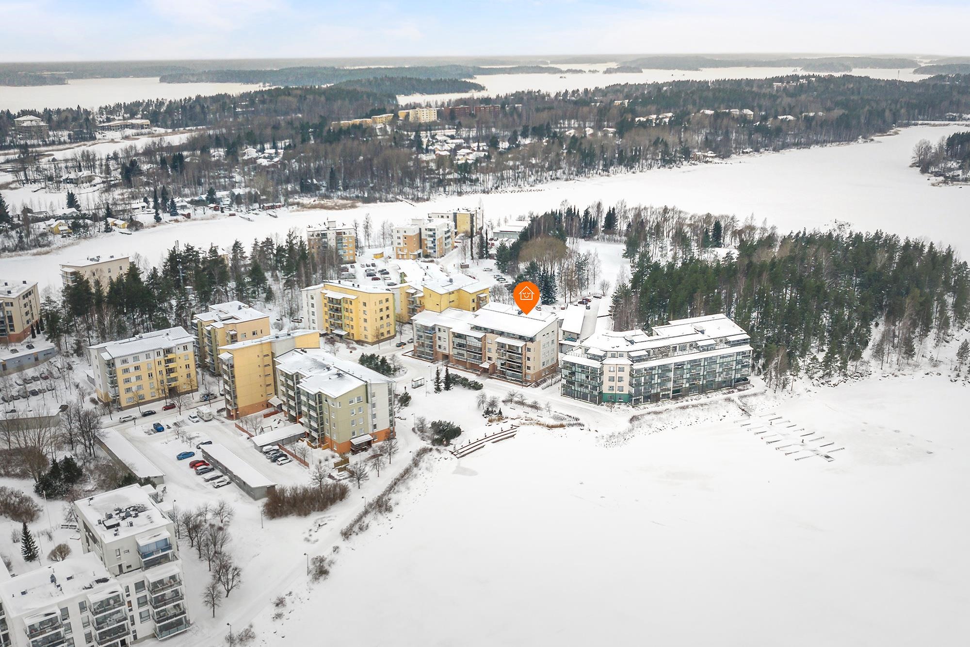 Keittiö avautuu olohuoneeseen, ja aamukahvia nauttiessa voit ihailla järvimaisemaa suoraan ikkunasta. Valoisa olohuone jatkuu lasitetulle parvekkeelle, josta avautuvat upeat näkymät Saimaalle. Oman saunan löylyissä on ihanaa rentoutua, ja uimaan pääset helposti läheiseltä laiturilta.