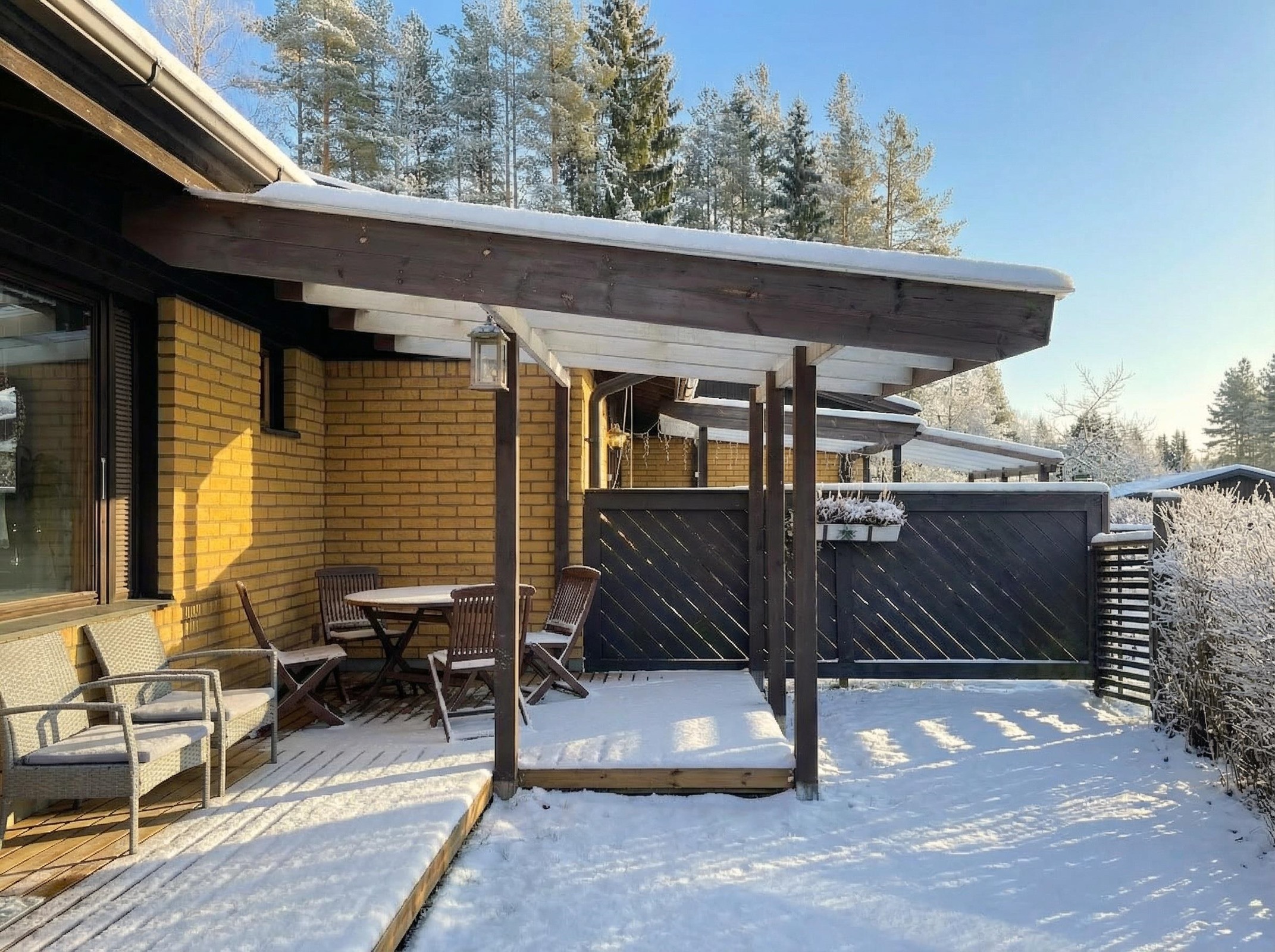 - Olohuone, keittiö, sauna ja takapiha etelään, makuuhuoneet pohjoiseen