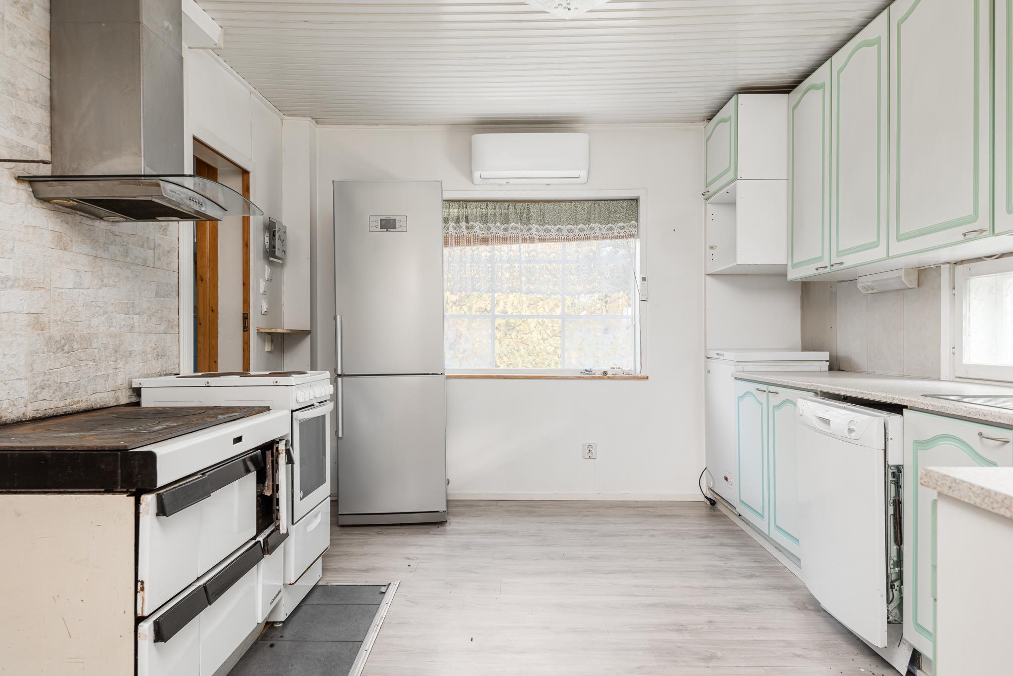 - Jääkaappipakastin, pakastekaappi, sähköliesi, astianpesukone, Puuhella.