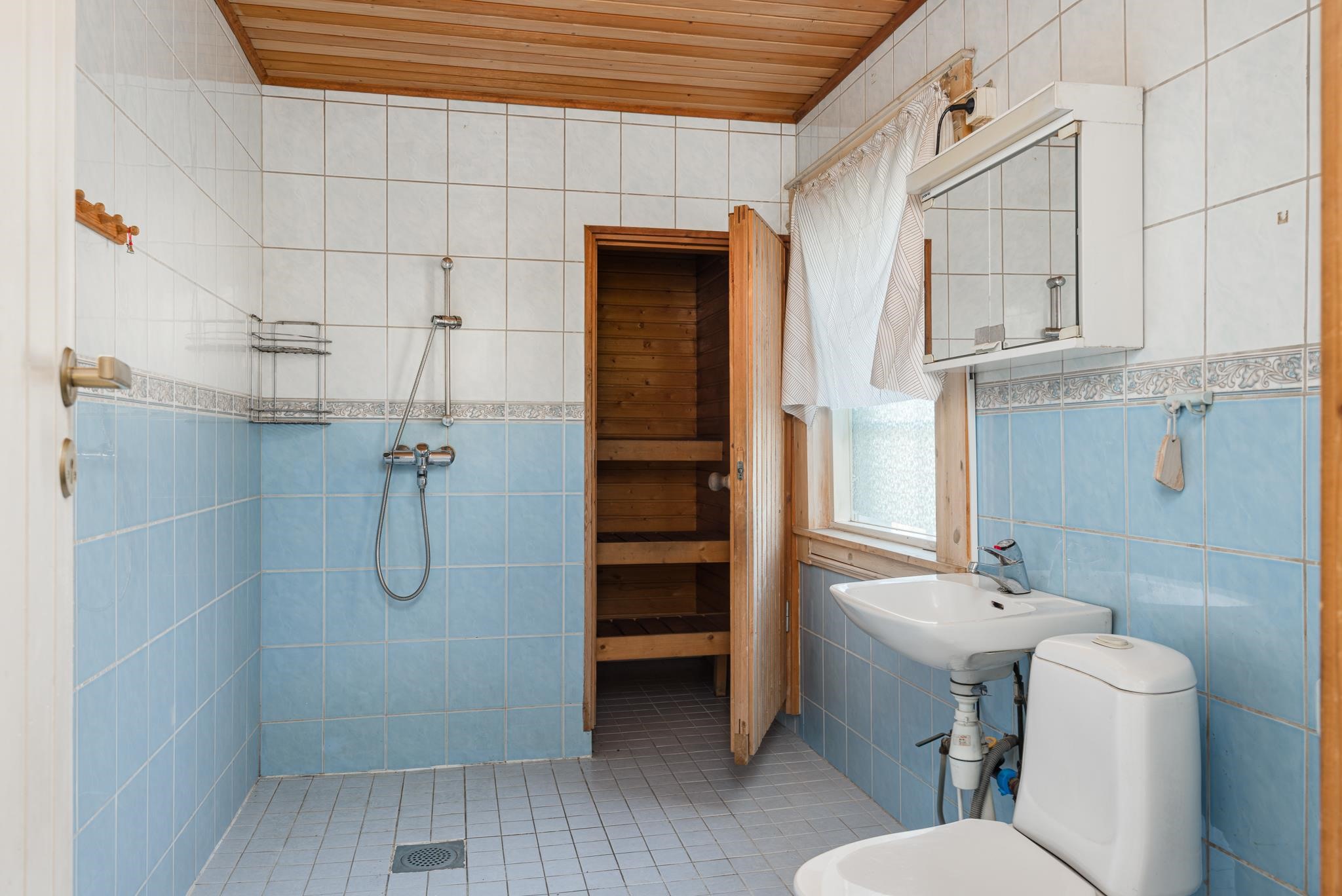 - Sauna, sähkökiuas, kylpyhuone, suihku, pesukoneliitäntä.