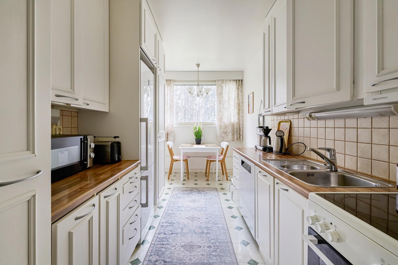 - Jääkaappipakastin 2018, keraaminen liesi, liesituuletin, astianpesukone 2023, kaapistot osa rungoista uusittu, kiinteät valaisimet.