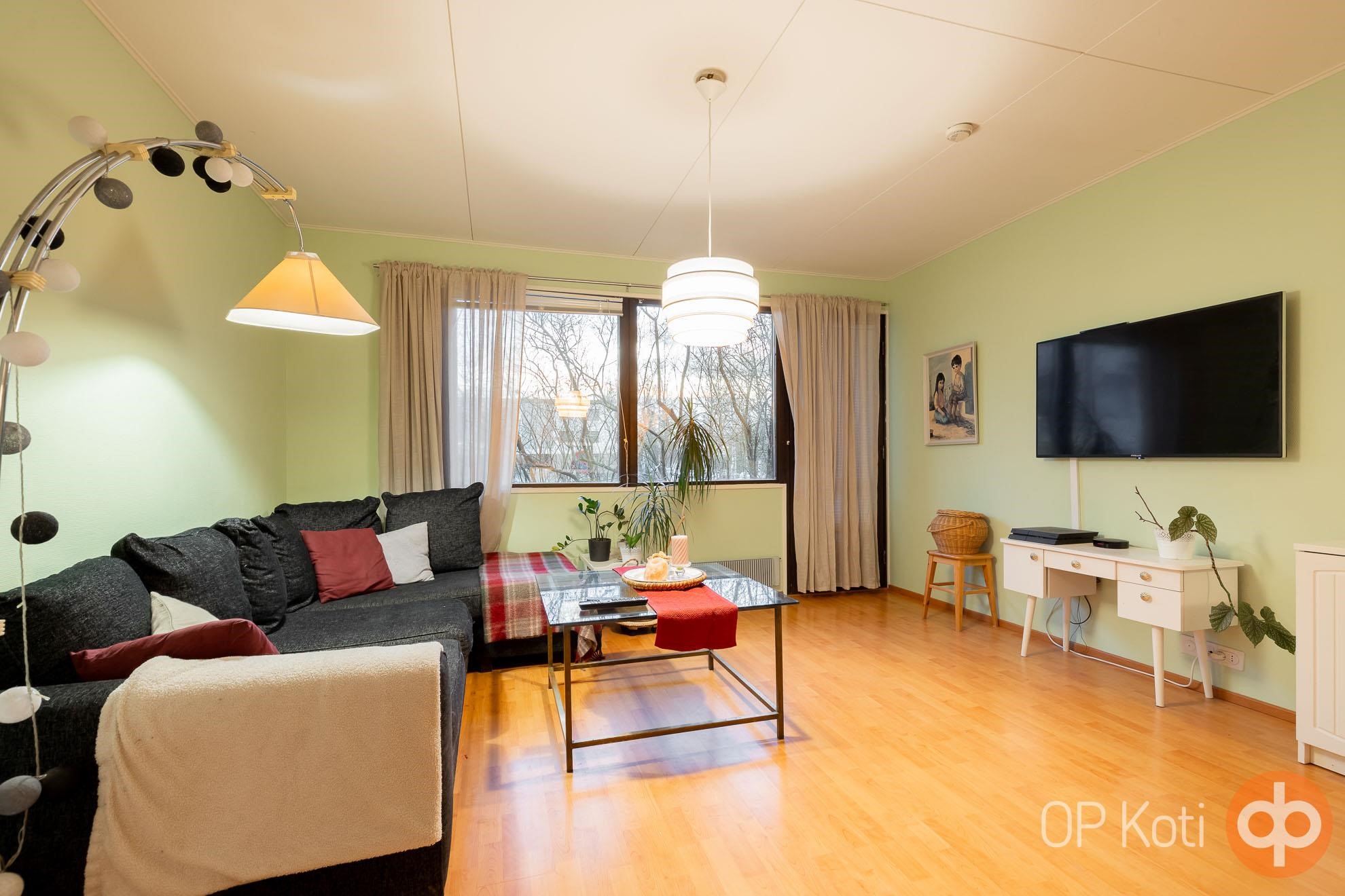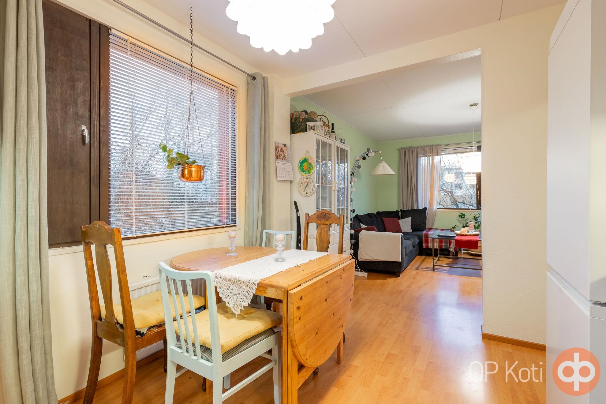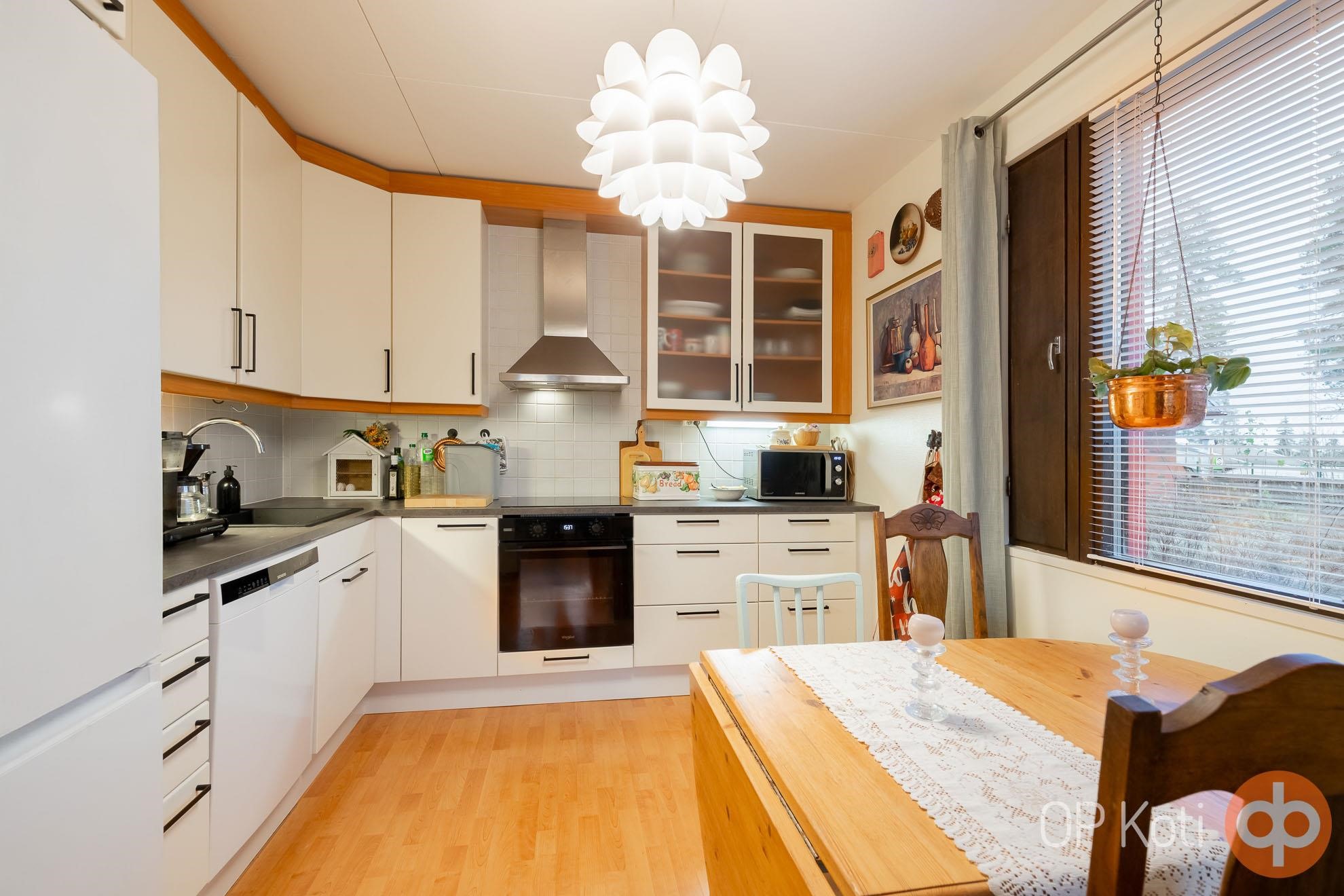 Astut sisään avaraan ja valoisaan olohuoneeseen, joka kutsuu rentoutumaan ja viettämään aikaa perheen ja ystävien kanssa. Vuonna 2023 remontoitu keittiö on varustettu laadukkailla kodinkoneilla, jotka tekevät ruoanlaitosta nautinnon.