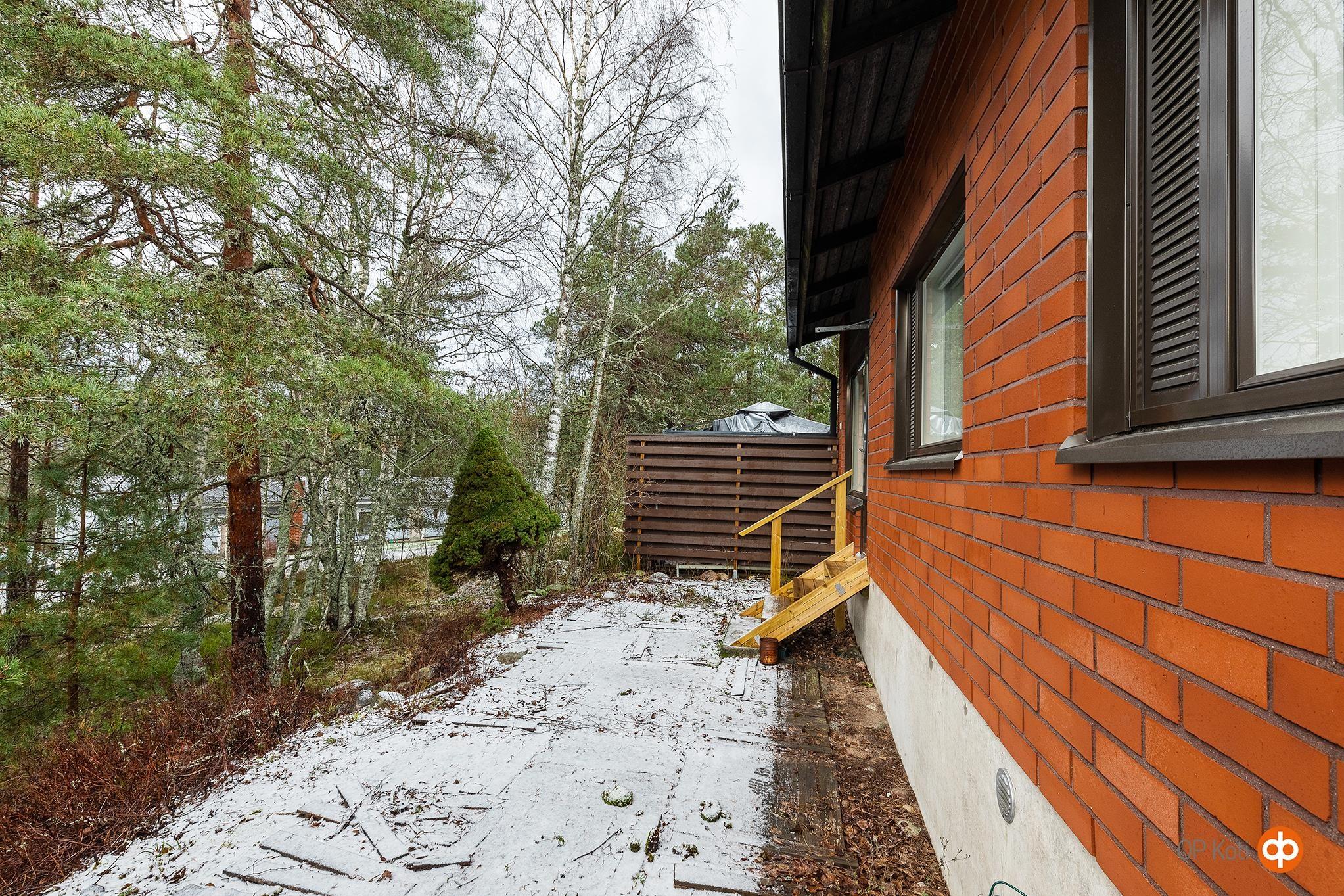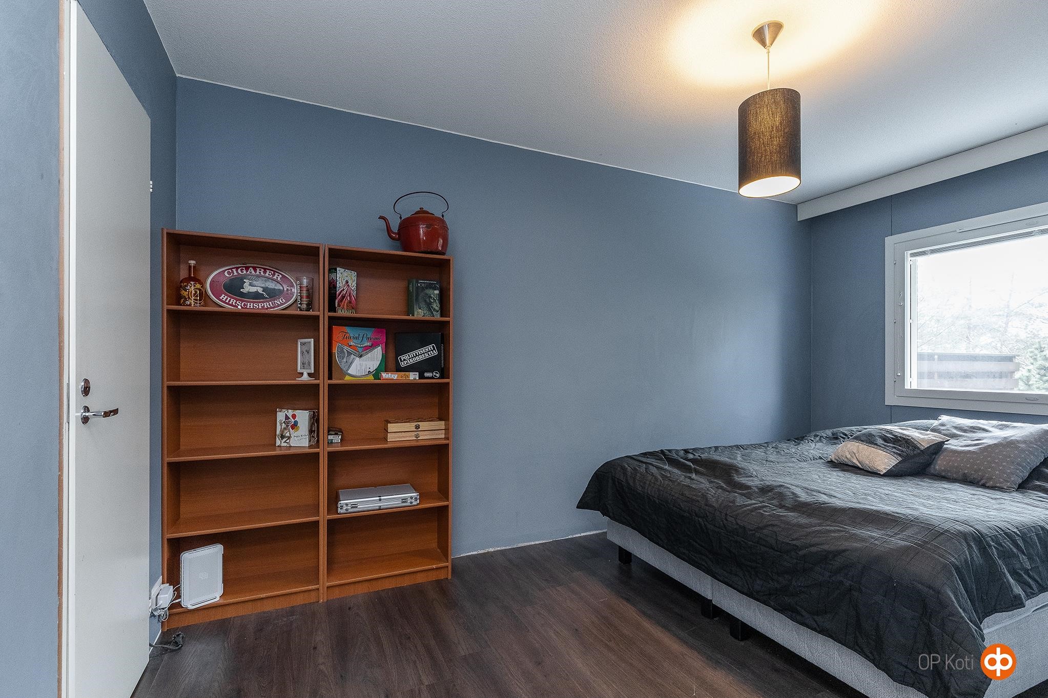 Tässä kodissa on kaksi makuuhuonetta, joista toisessa on kaapisto ja toisessa vaatehuone. Keittiö on sisääntulon yhteydessä ja remontoitu aikanaan. Olohuone on takapihan suuntaan ja sieltä on kulku takapihalle. Kylpyhuone on alkuperäisessä peruskunnossa ja kodissa on myös oma sauna.