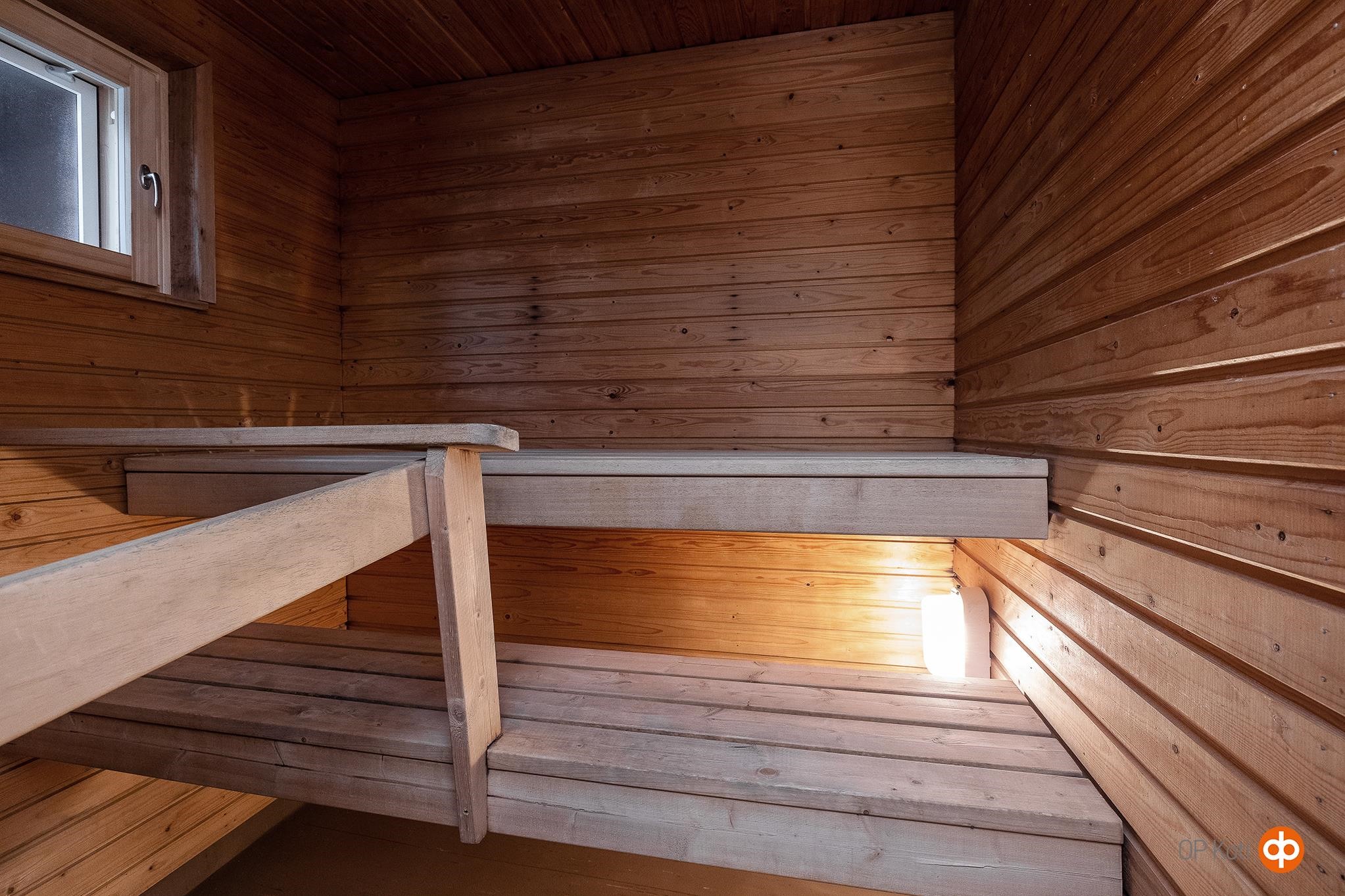 - Sauna, sähkökiuas, kylpyhuone, erillinen wc, suihku, pesukoneliitäntä, lattialämmitys, kiinteät valaisimet.