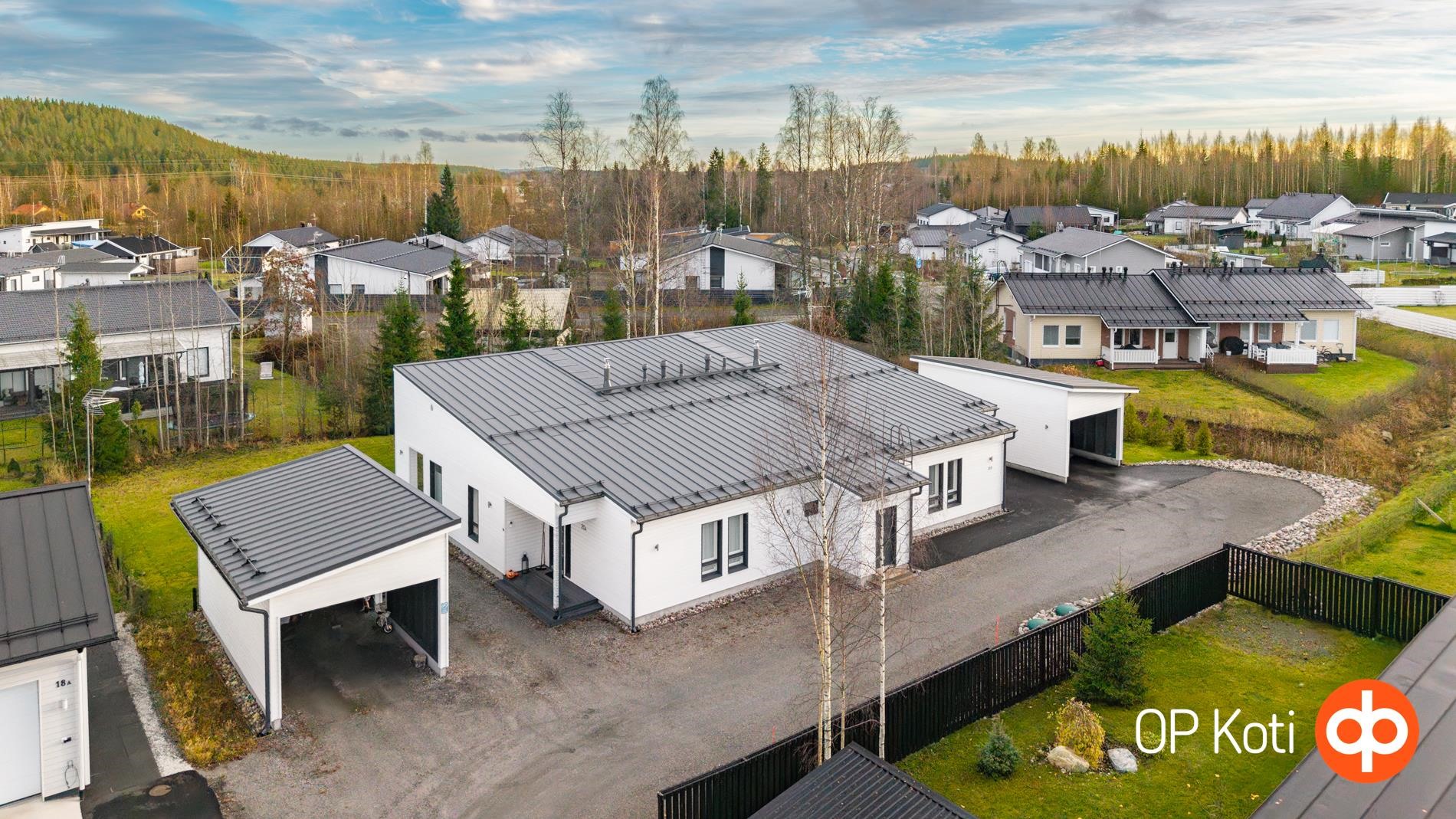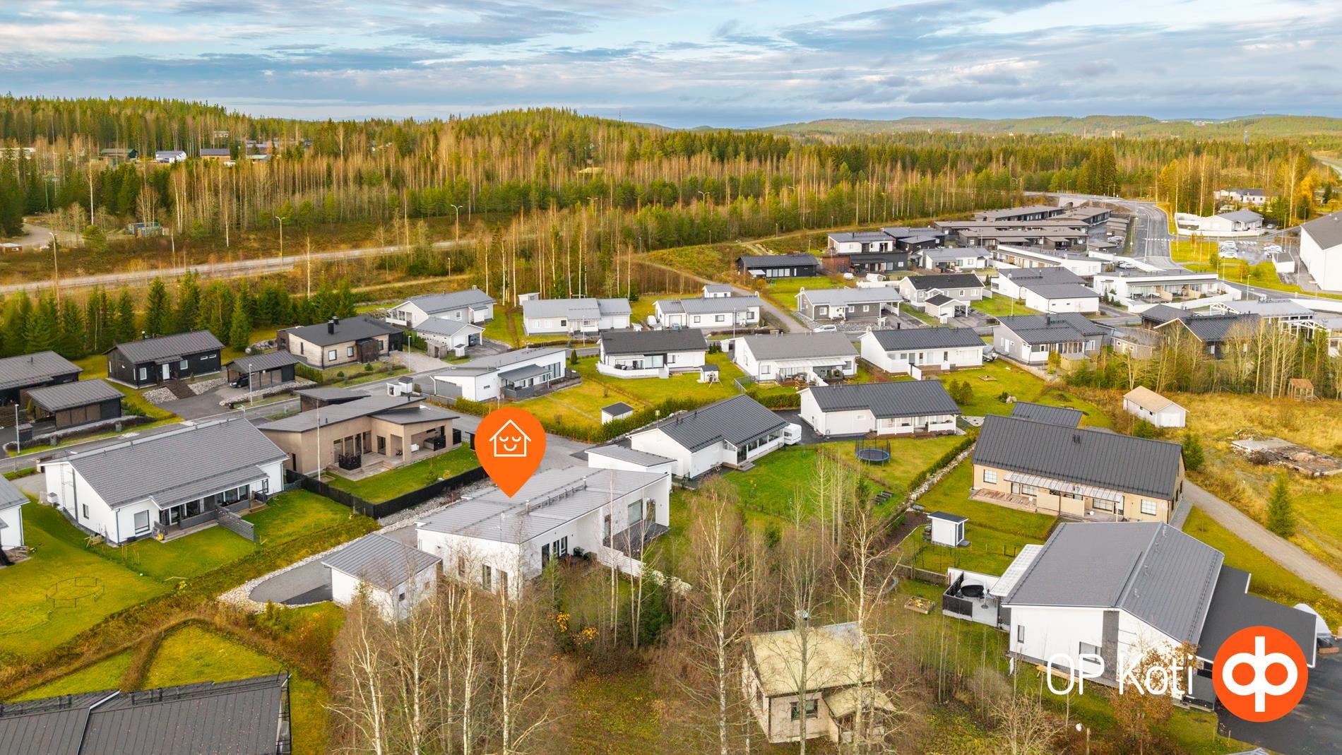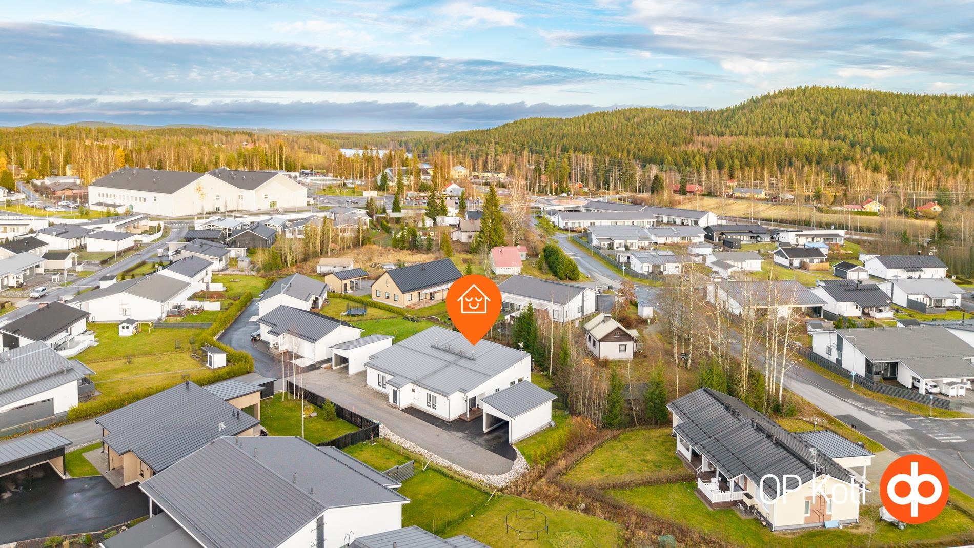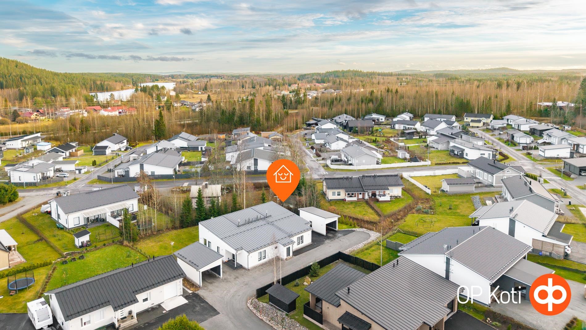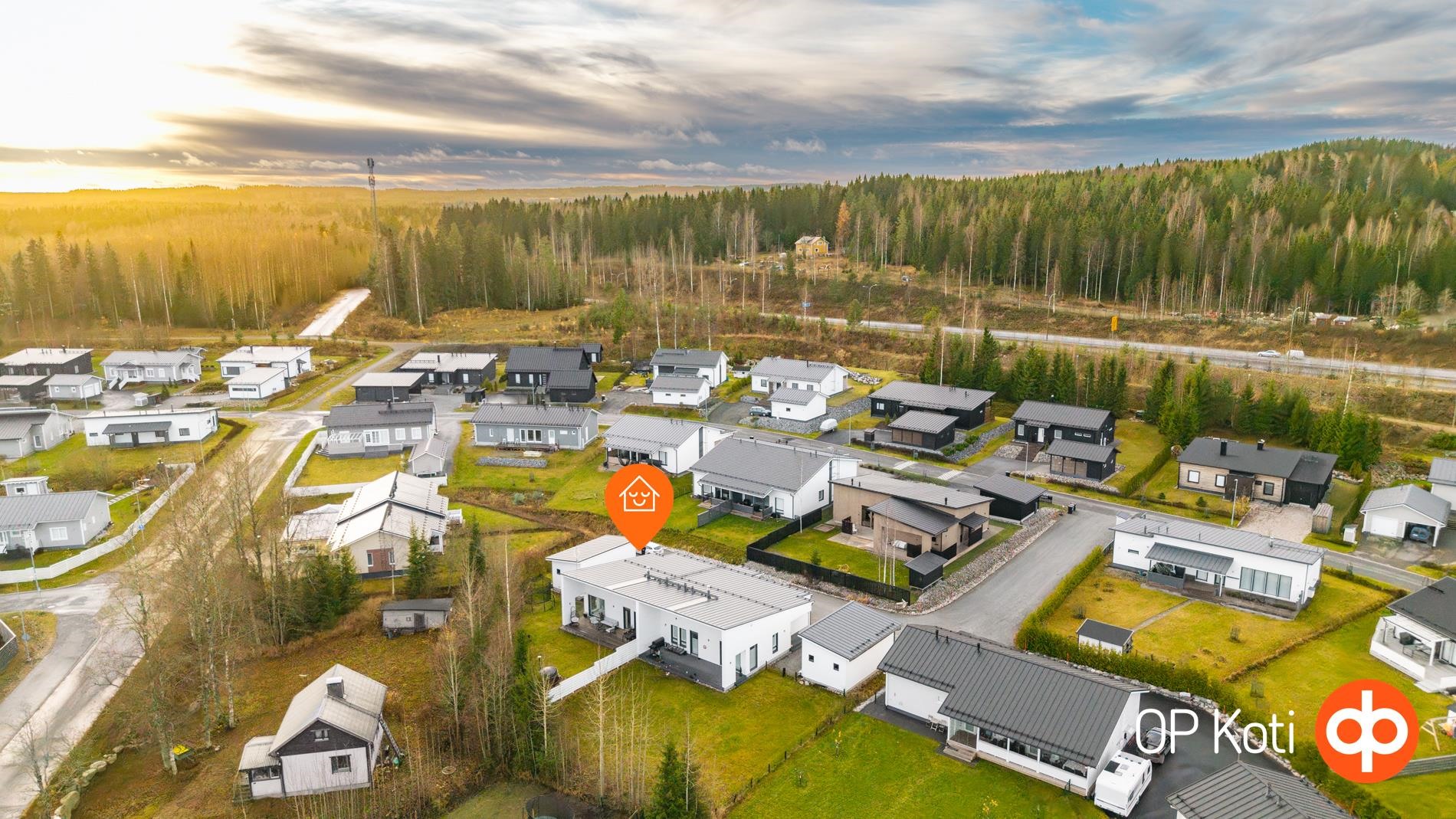 Sijainti on ihanteellinen: rauhallinen ja luonnonläheinen, mutta kaikki arjen palvelut, kuten koulu ja päiväkoti, löytyvät lyhyen kävelymatkan päästä. Moottoritietä pitkin ajat keskustaan nopeasti ja vaivattomasti.