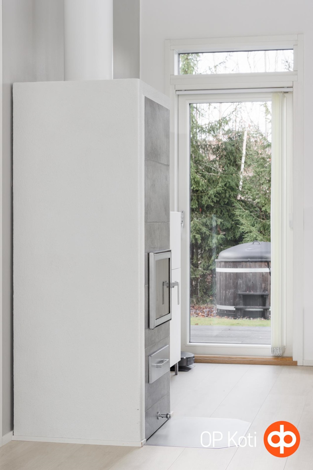 Kaukolämpö, varaava takka ja ilmalämpöpumppu takaavat energiatehokkuuden ja miellyttävän sisäilman ympäri vuoden.