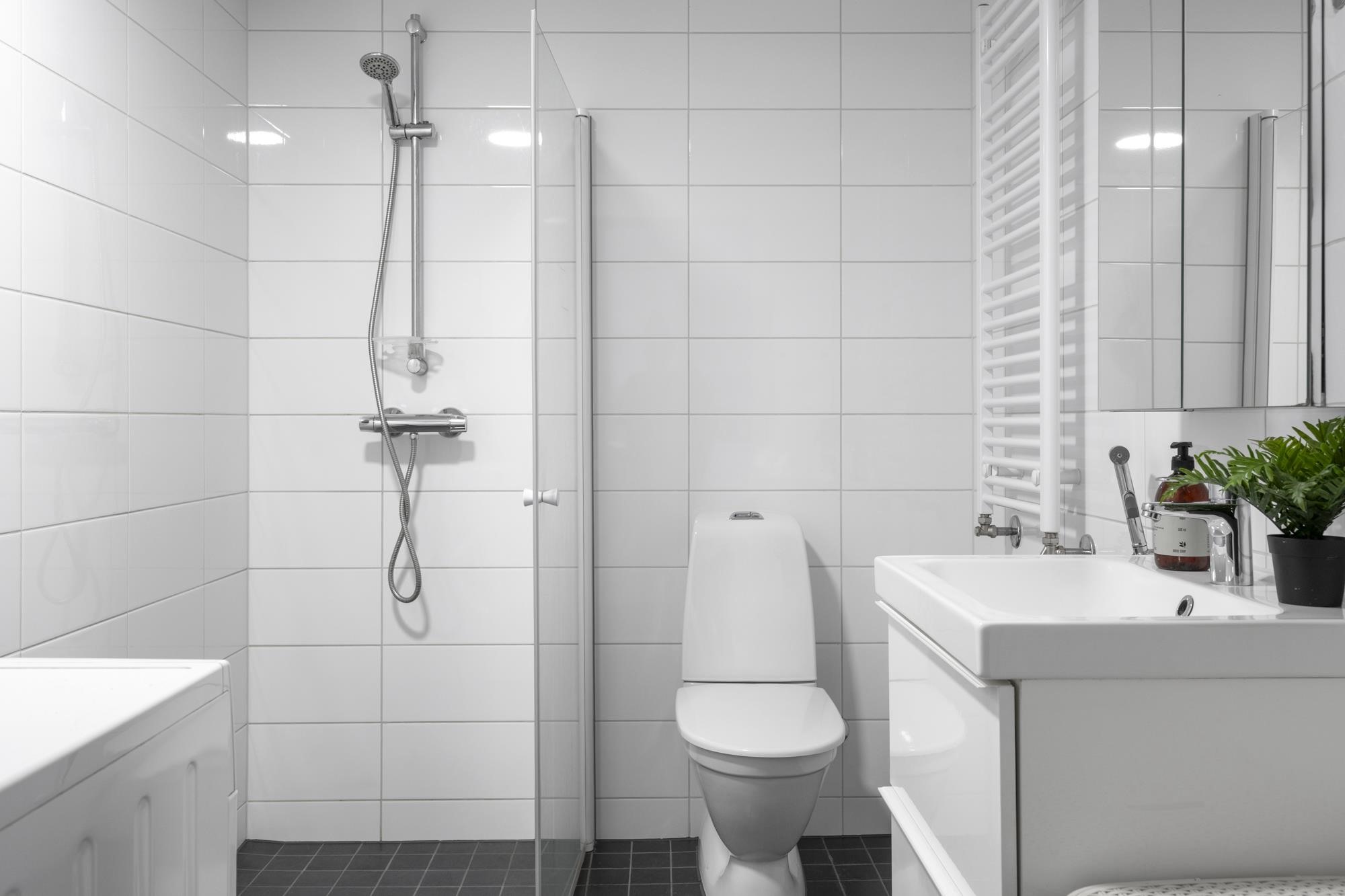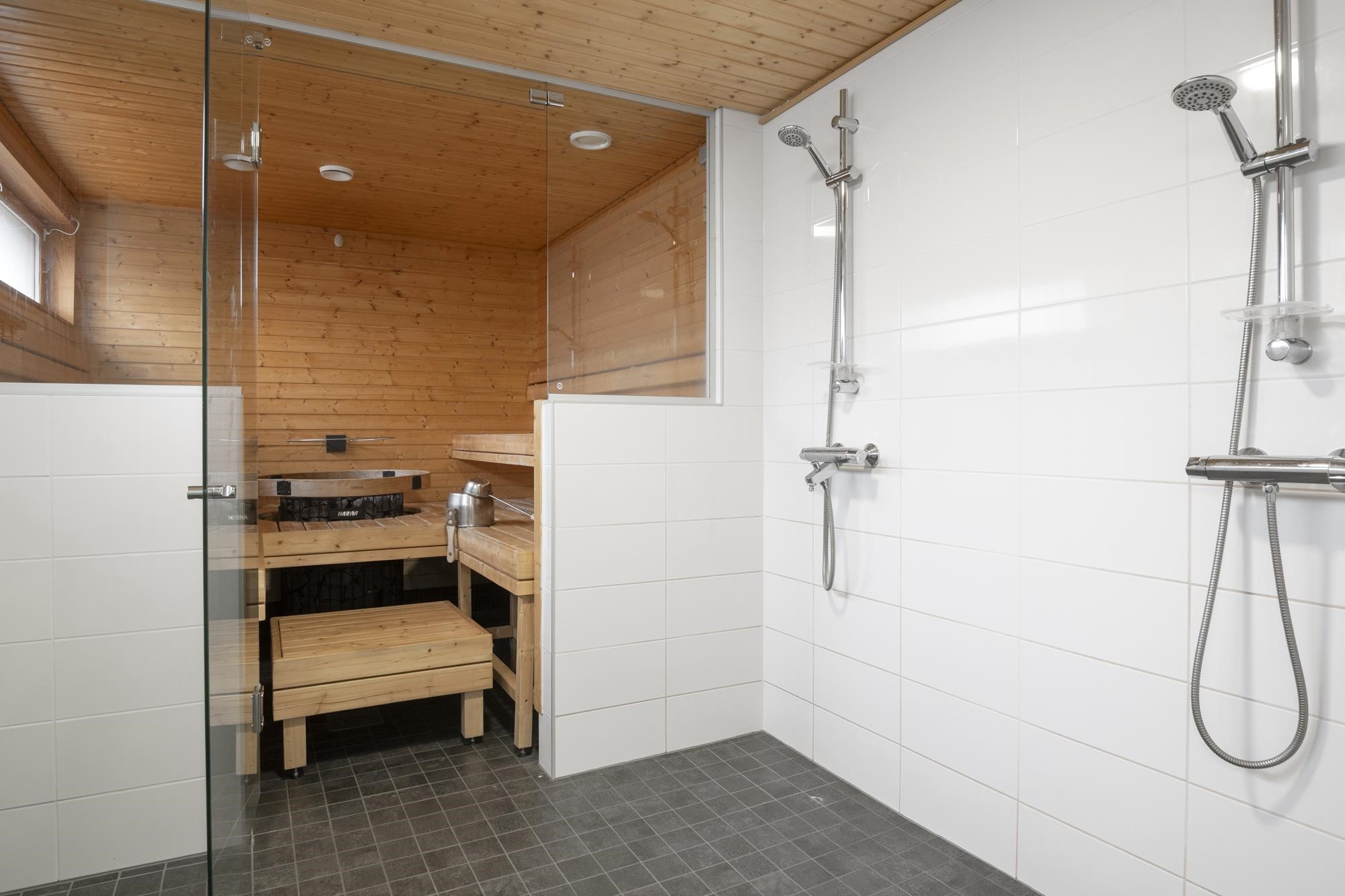 - Kylpyhuone, suihku, suihkuseinä, peilikaappi, allaskaappi, pesukoneliitäntä, lattialämmitys Mukavuus lattialämmitys, sähkö, kiinteät valaisimet.