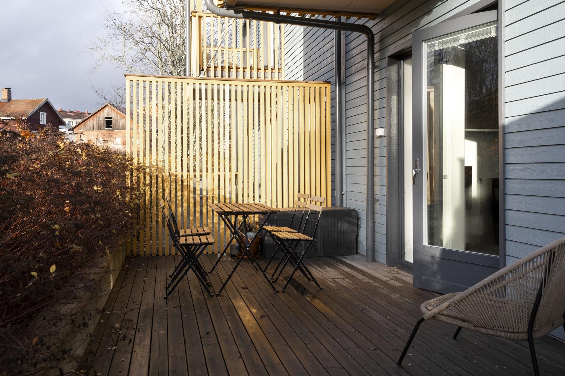 Asunto tulvii luonnonvaloa ja asuinneliöt ovat käytännölliset ja tehokkaasti käytetty. Olohuoneesta avautuu käynti terassille, jonka suojassa varmasti tulet viihtymään! Yhtiössä on panostettu asukkaiden viihtymiseen. Viherpeukaloille löytyy viljelyalue, lapsille turvallinen leikkipaikka sekä erillinen, tyylikäs saunarakennus, missä pääset nauttimaan makoisista löylyistä perheen kesken. Myös irtaimistovarasto kuuluu asuntoon.