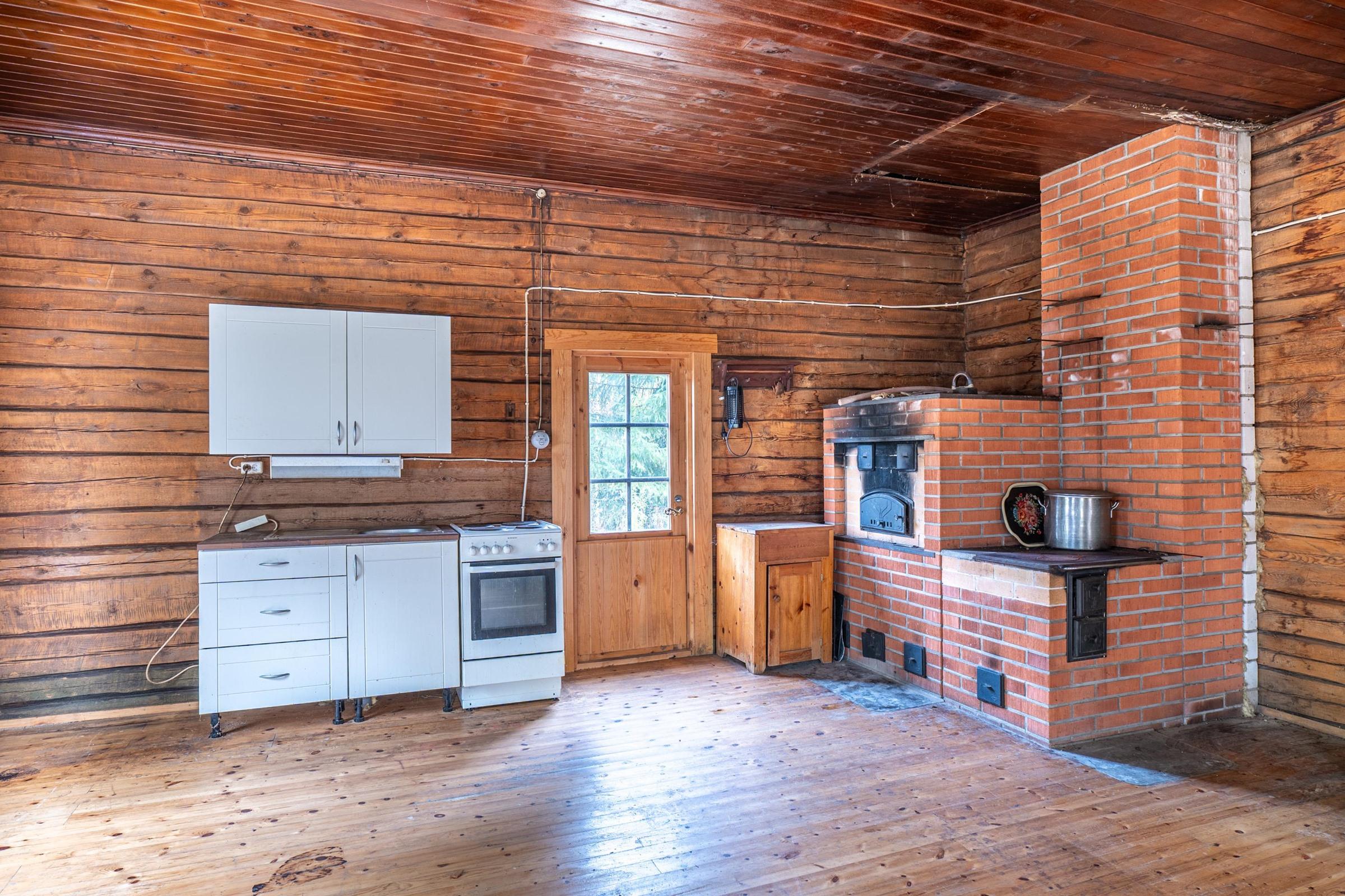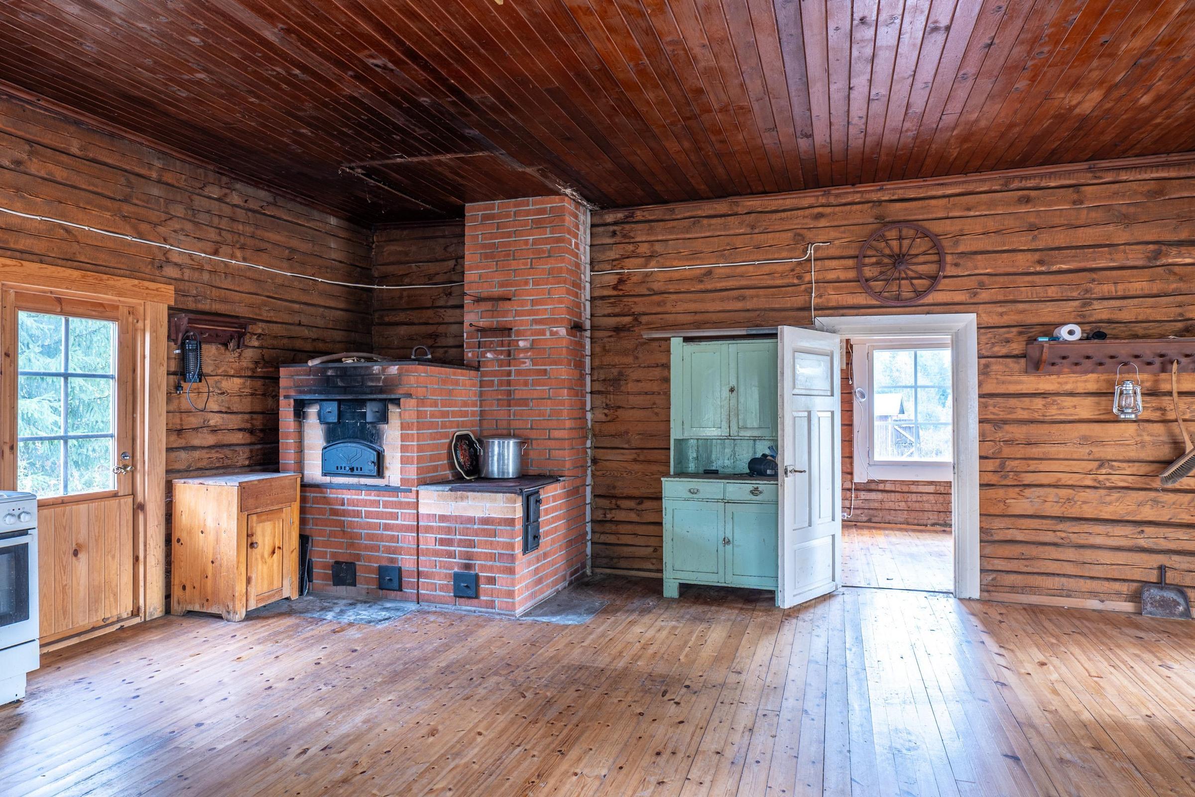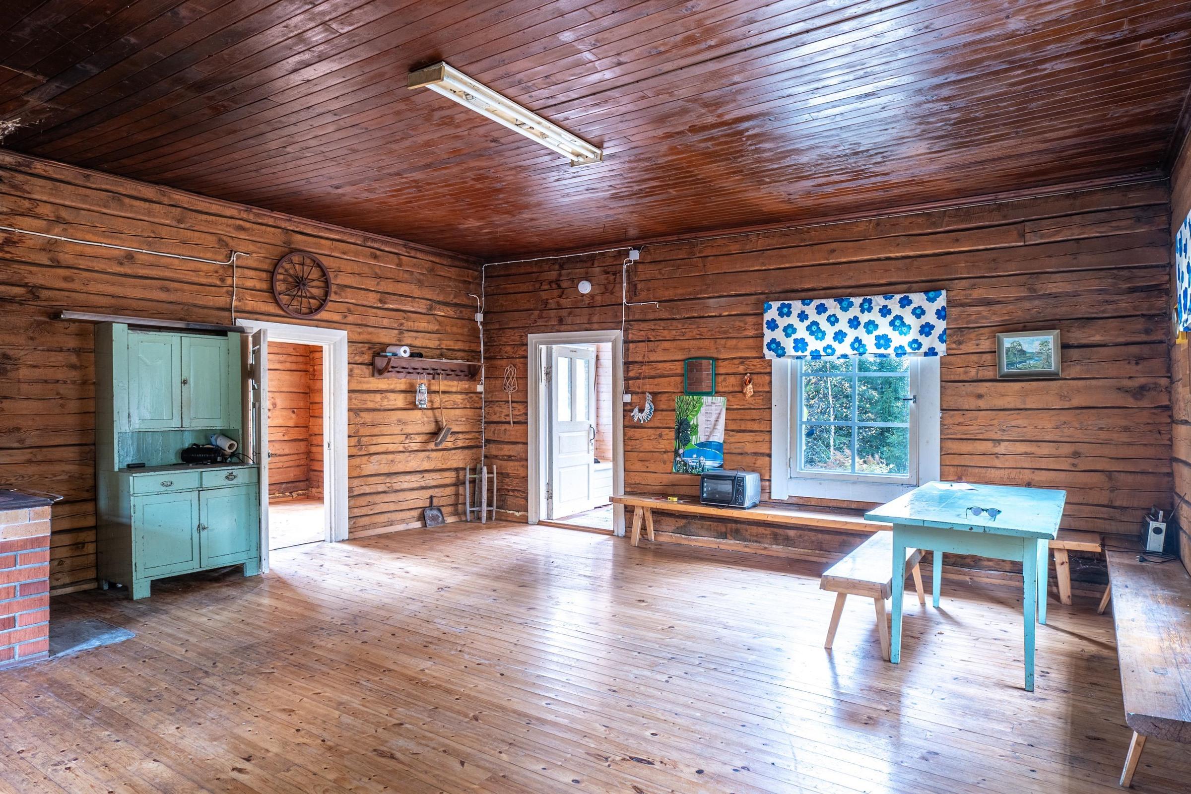 Päärakennus on hirsirakenteinen ja valmistunut vuonna 1930. Talo huokuu vanhan ajan rauhaa heti sisään astuttaessa. Avaran tupakeittiön lautalattiat narahtelevat lempeästi, hirsiseinät kertovat vuosikymmenten tarinoita ja iso leivinuuni levittää ympärilleen lämpöä ja kodikasta tunnelmaa. Rakennuksen katto ja julkisivu on uusittu vuonna 2015, joten tärkeimmät rakenteet ovat hyvässä kunnossa.