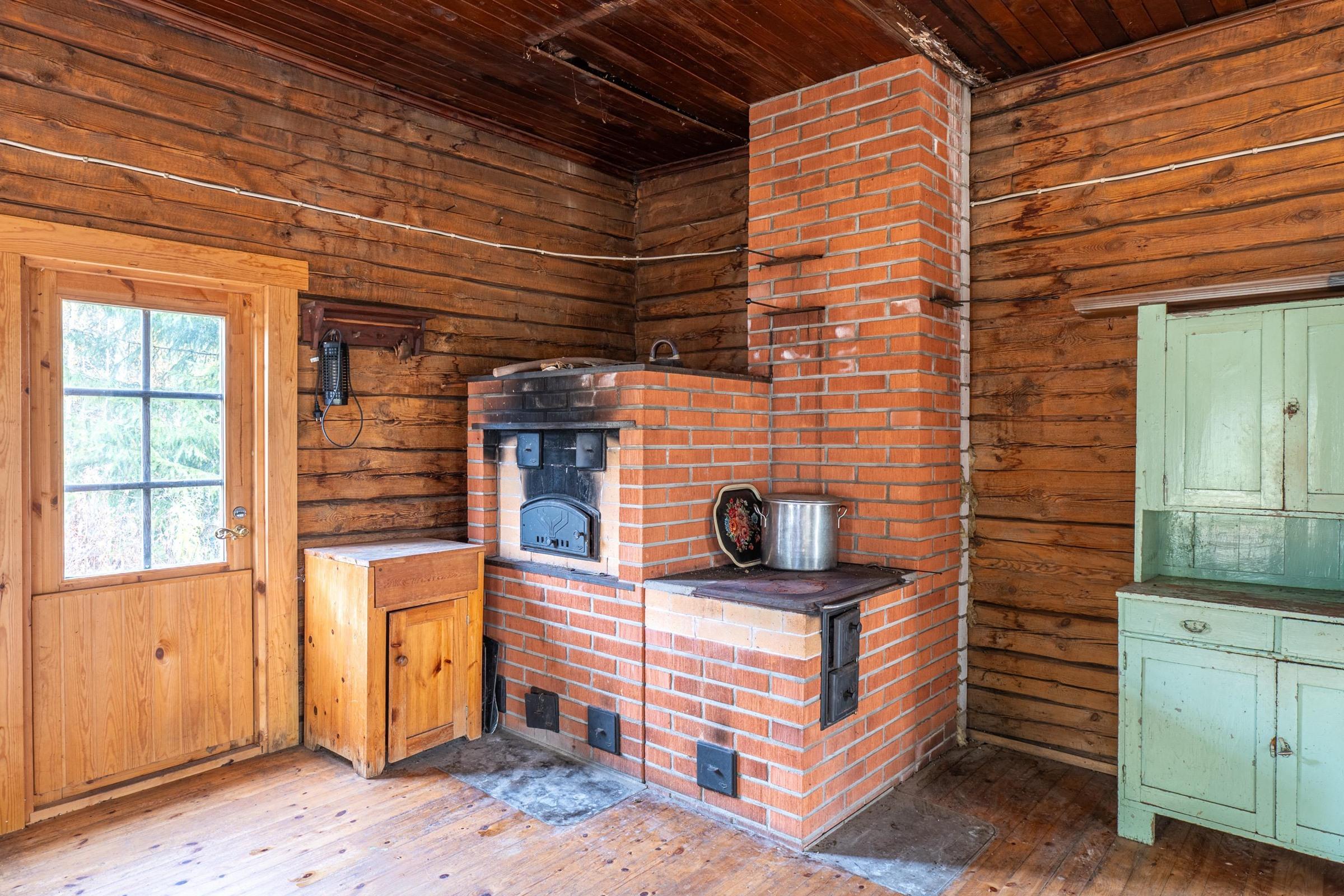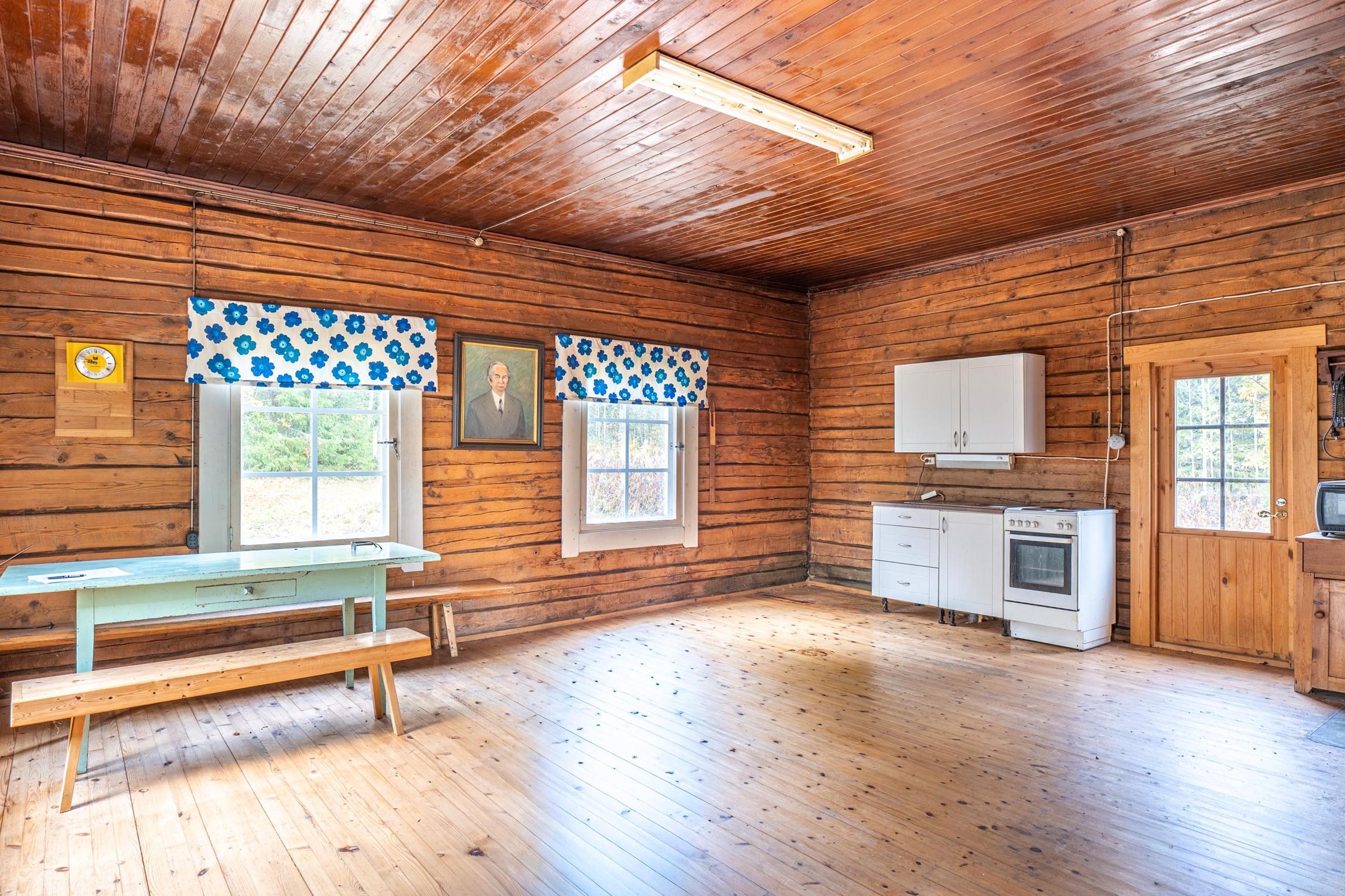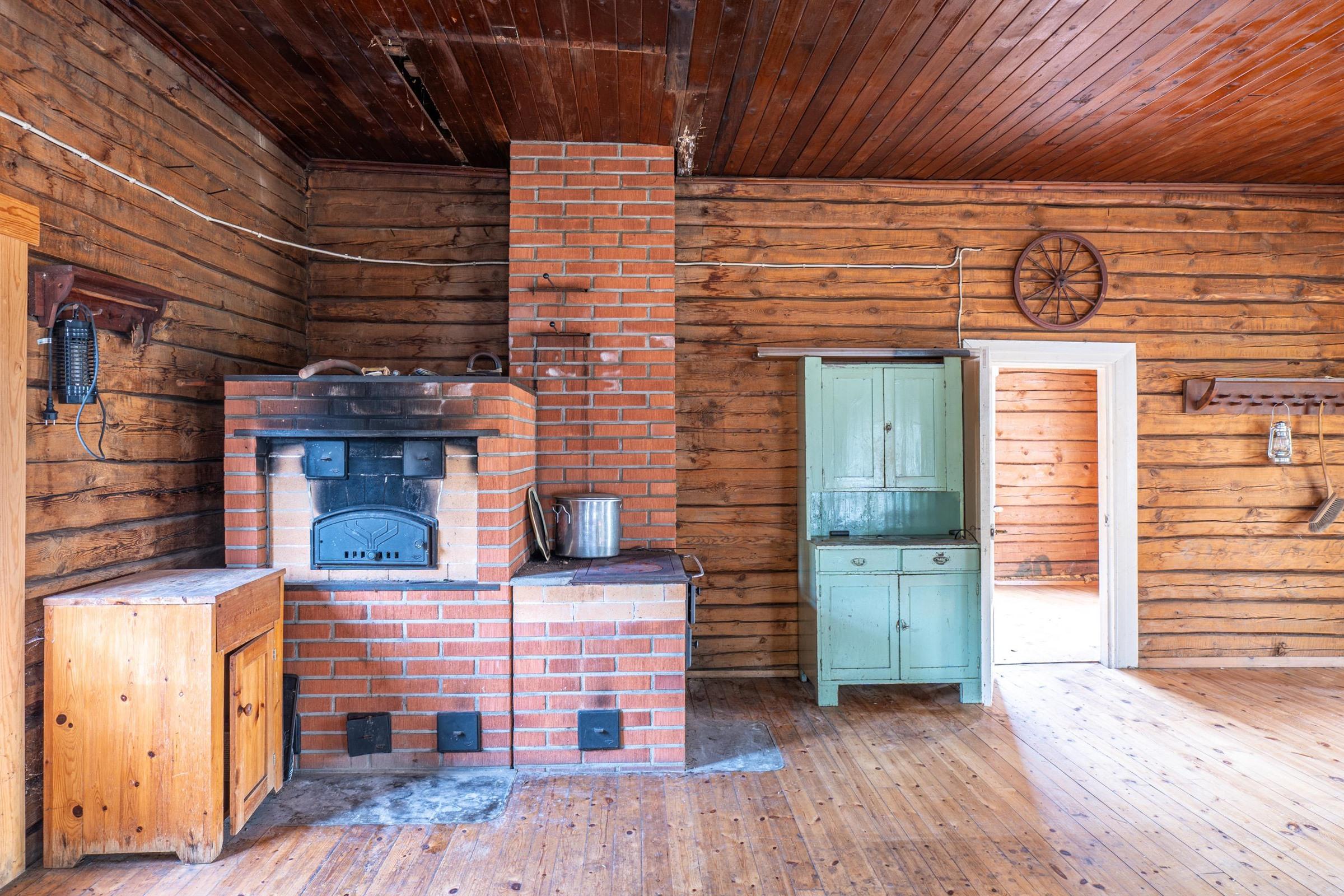 Päärakennus on hirsirakenteinen ja valmistunut vuonna 1930. Talo huokuu vanhan ajan rauhaa heti sisään astuttaessa. Avaran tupakeittiön lautalattiat narahtelevat lempeästi, hirsiseinät kertovat vuosikymmenten tarinoita ja iso leivinuuni levittää ympärilleen lämpöä ja kodikasta tunnelmaa. Rakennuksen katto ja julkisivu on uusittu vuonna 2015, joten tärkeimmät rakenteet ovat hyvässä kunnossa.