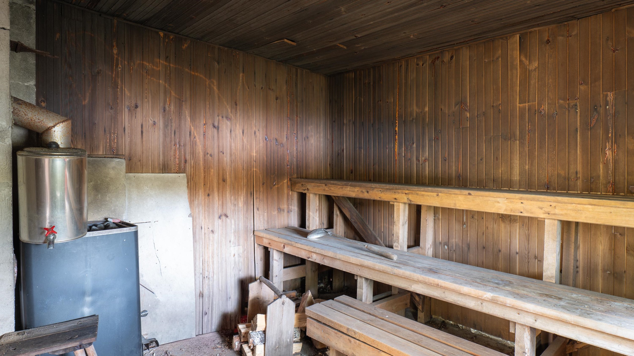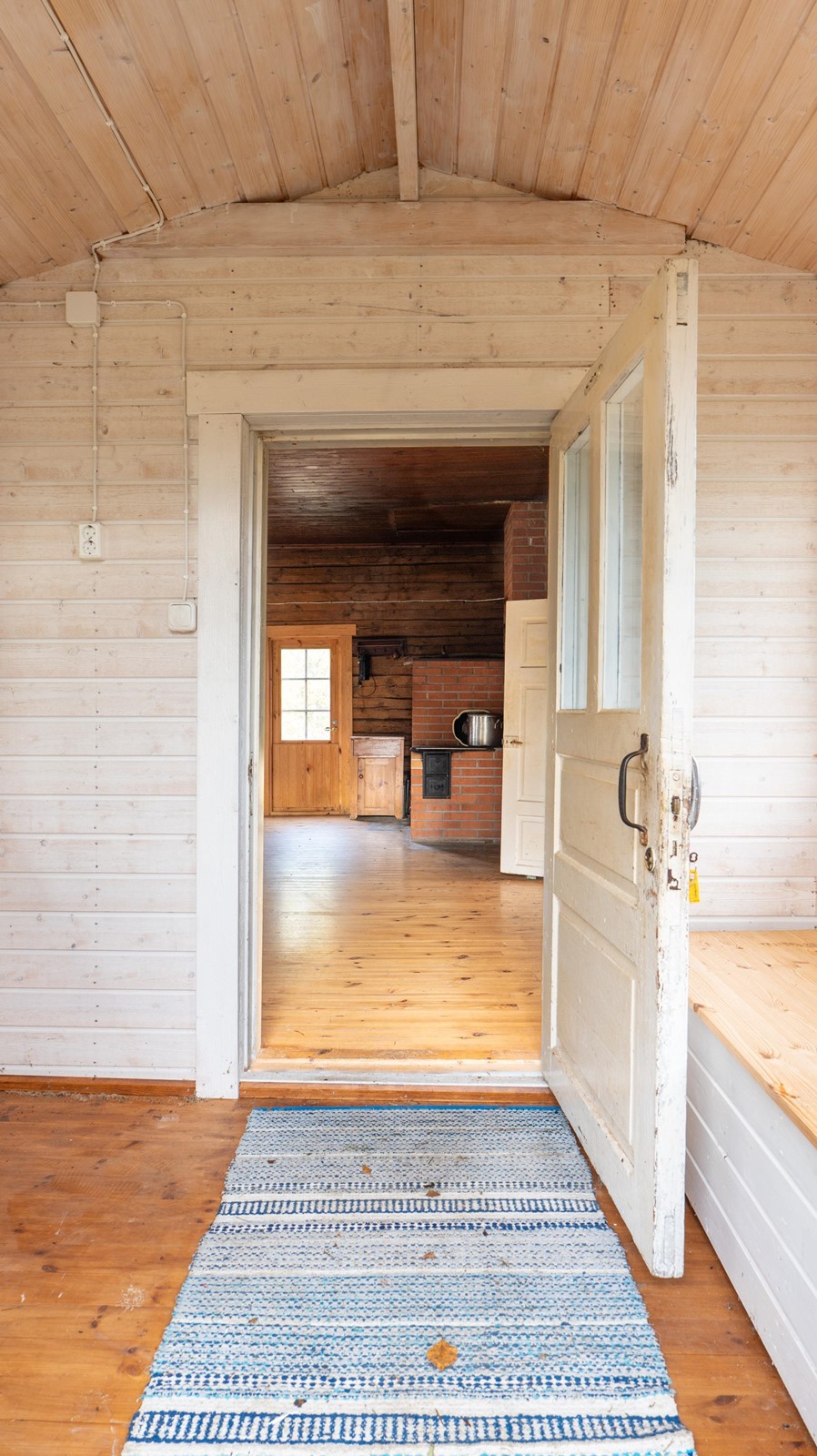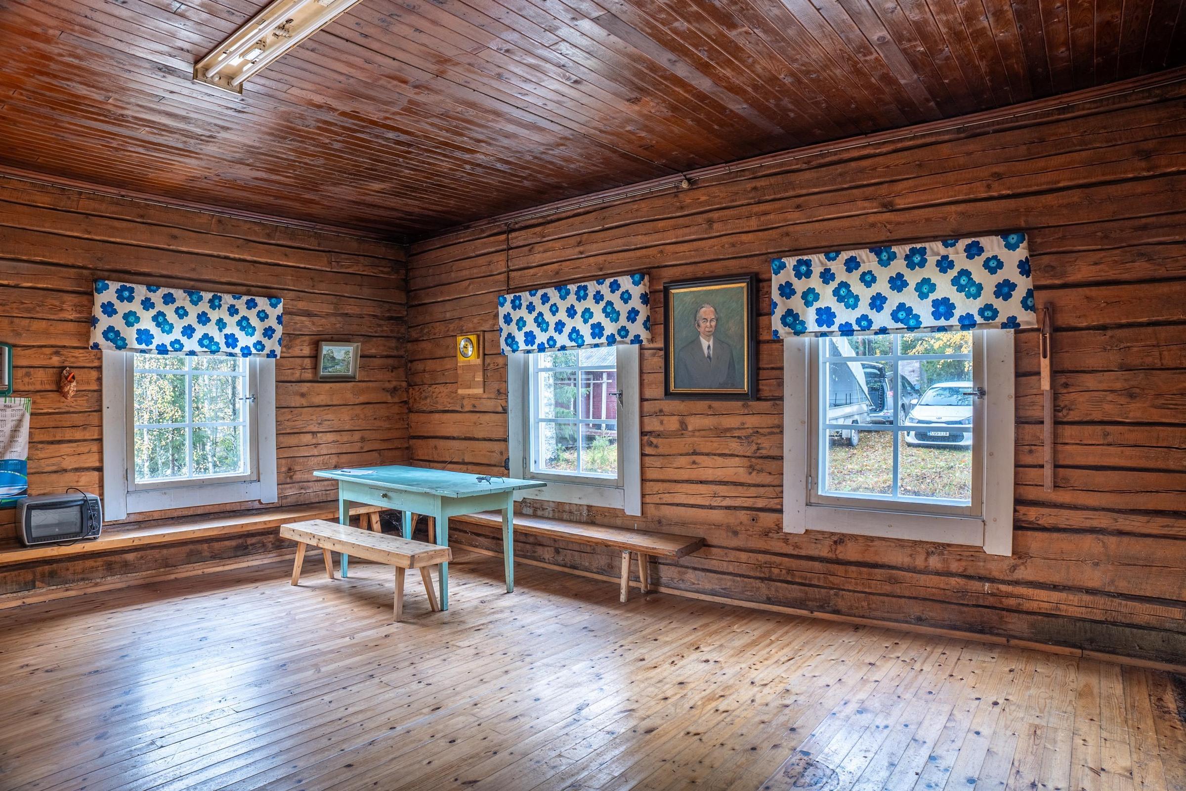 Tupakeittiö: Lautalattia, hirsiseinät. Makuuhuone: Lautalattia, hirsiseinät.