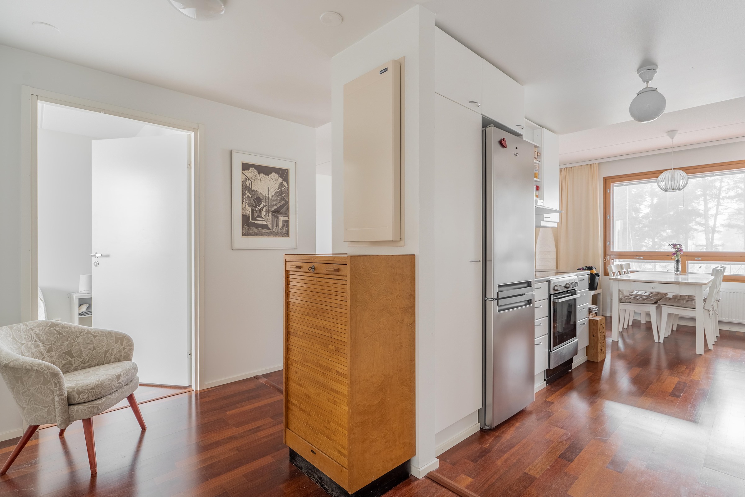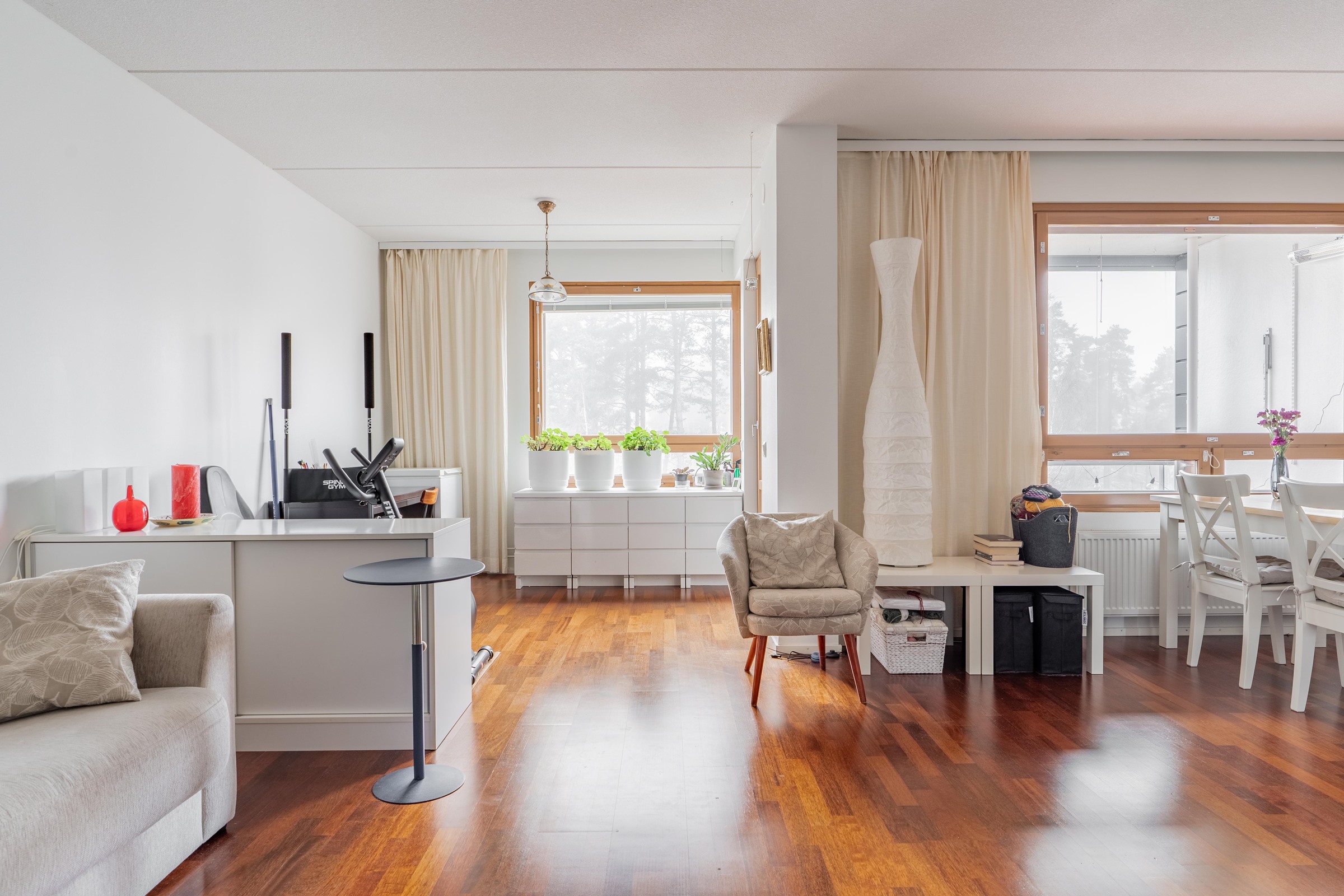 Aurinkotuulenkatu 7:n jossa neljännen kerroksen koti tarjoaa modernia ja viihtyisää asumista merellisessä Aurinkolahdessa. Vuonna 2009 valmistuneessa hissitalossa sijaitseva asunto hurmaa kahdella lasitetulla parvekkeella: toinen avautuu idylliselle kanavalle ja toinen vehreään puistoon. Hyvin suunniteltu pohjaratkaisu yhdistää olohuoneen ja keittiön avaraksi yhtenäiseksi tilaksi, jossa arki ja yhdessäolo sujuvat luontevasti. Kaksi makuuhuonetta tuovat joustavuutta asumiseen, ja toisen yhteydessä oleva parveke lisää tilan valoisuutta ja yksityisyyttä.