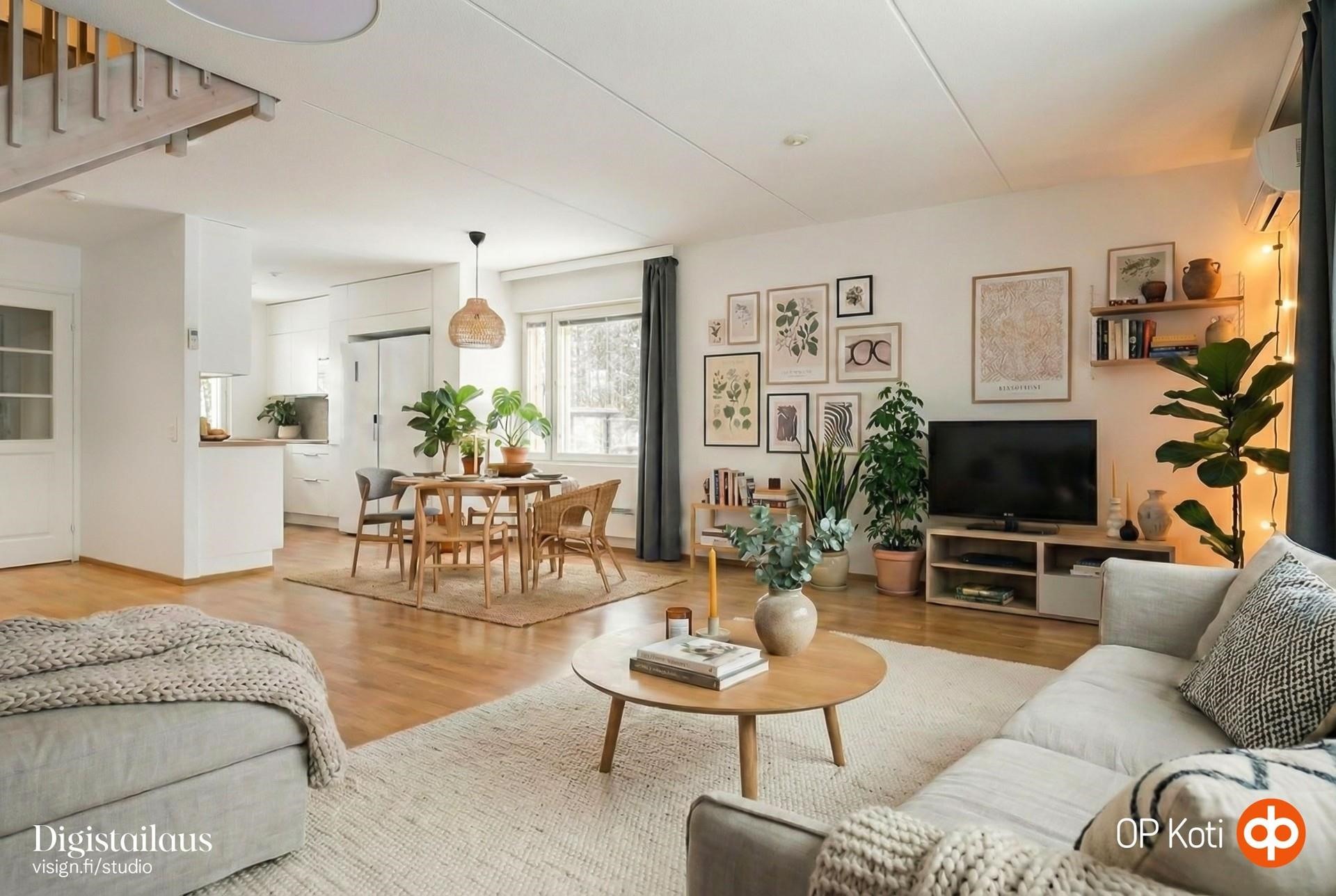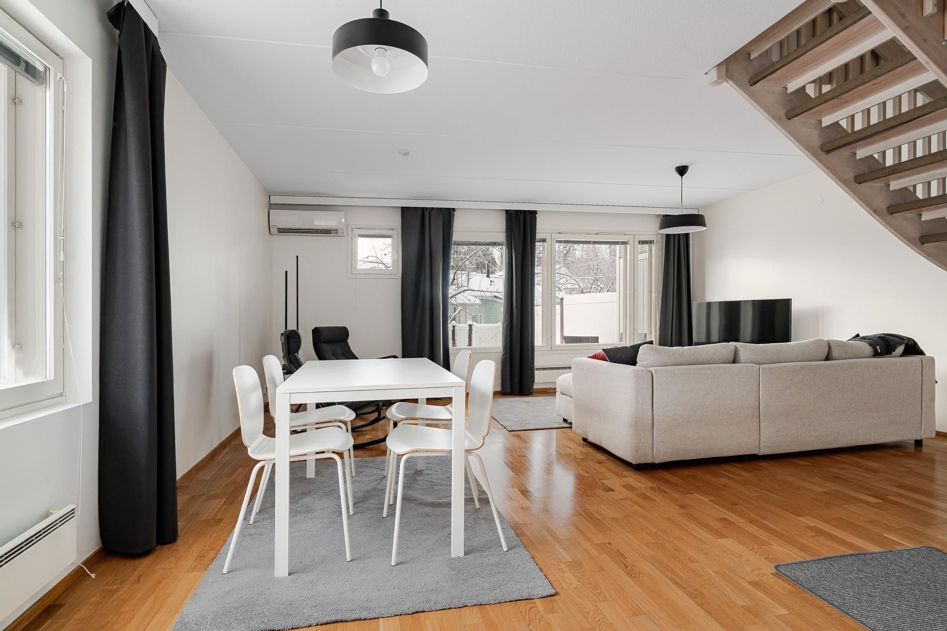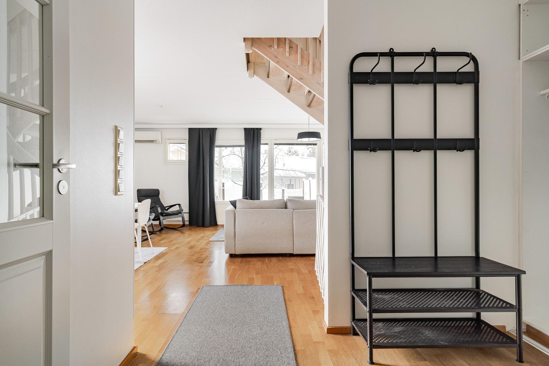 Tervetuloa viihtyisään ja hyvin pidettyyn kotiin rauhallisella pientaloalueella Masalassa! Tämä kahdessa tasossa oleva rivitalon päätyasunto tarjoaa toimivaa arkea ja kodikasta tunnelmaa ympäristössä, jossa luonto ja palvelut kohtaavat sopusoinnussa.
