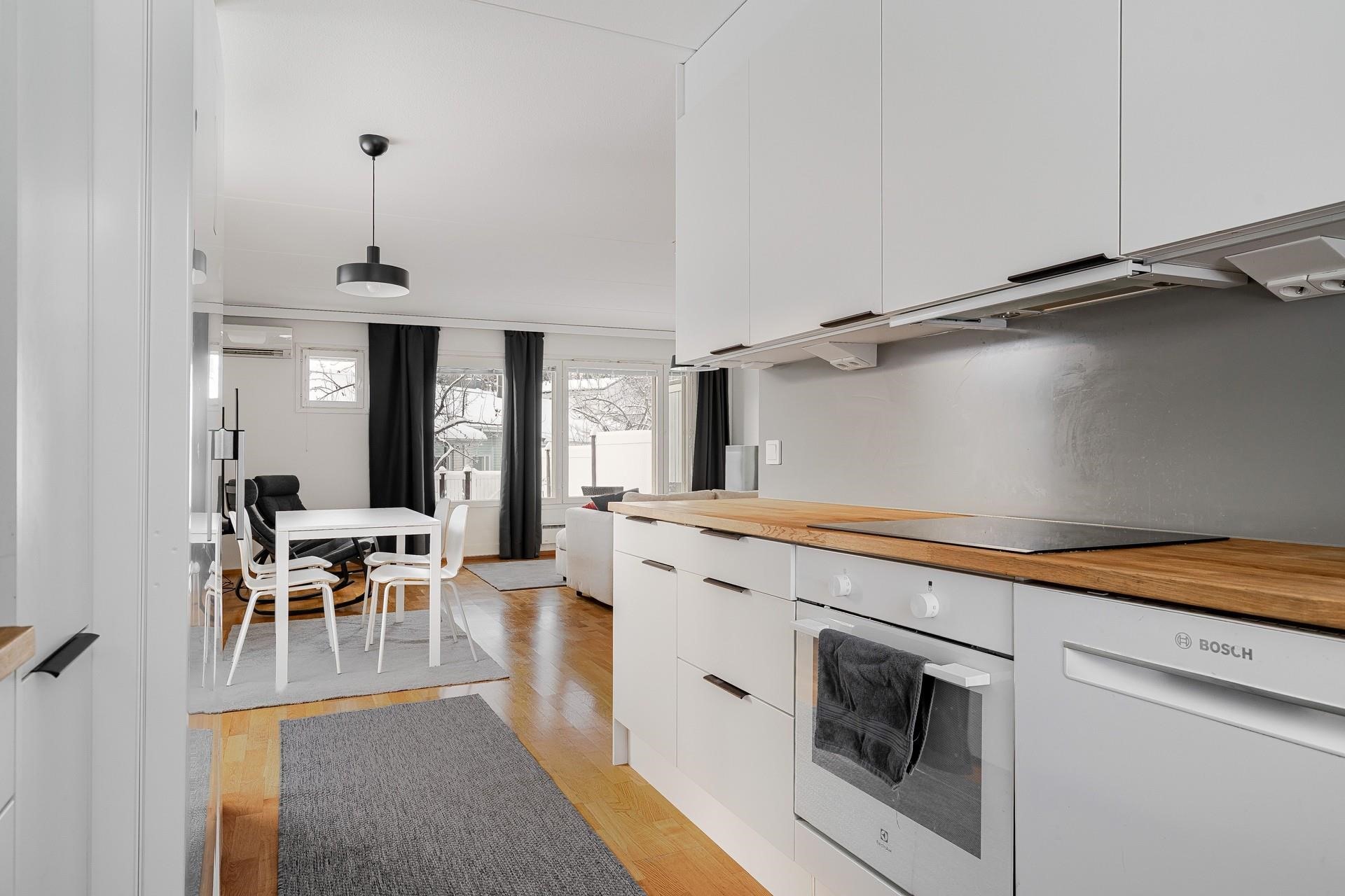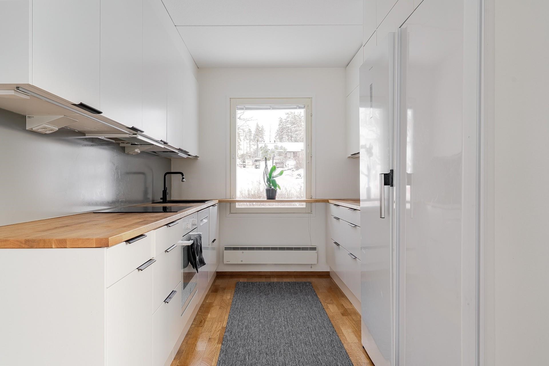 - Jääkaappi, pakastekaappi Uusittu 2025, erillisuuni, induktioliesi, liesituuletin, mikroaaltouuni Kiinteä, astianpesukone, kiinteät valaisimet.