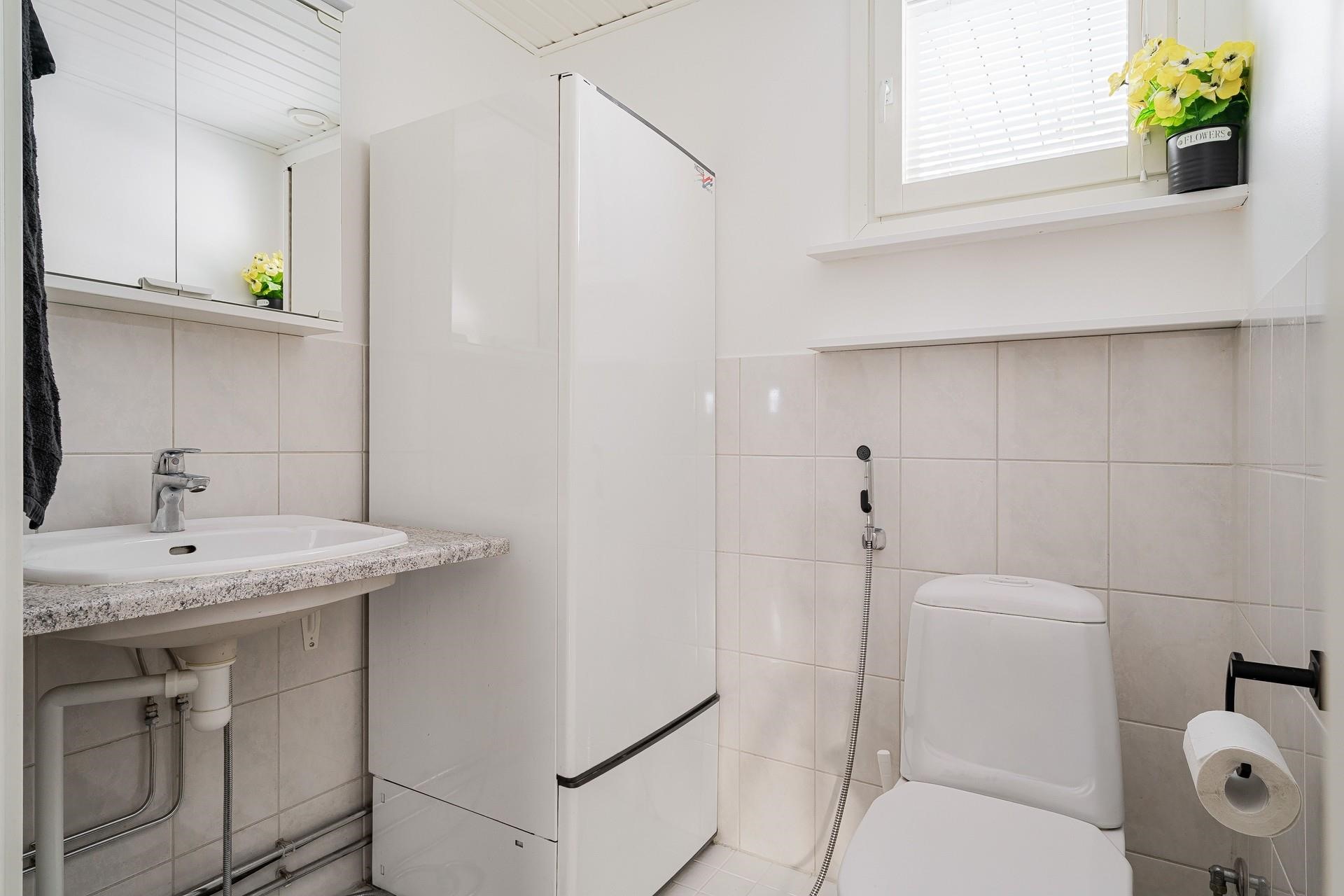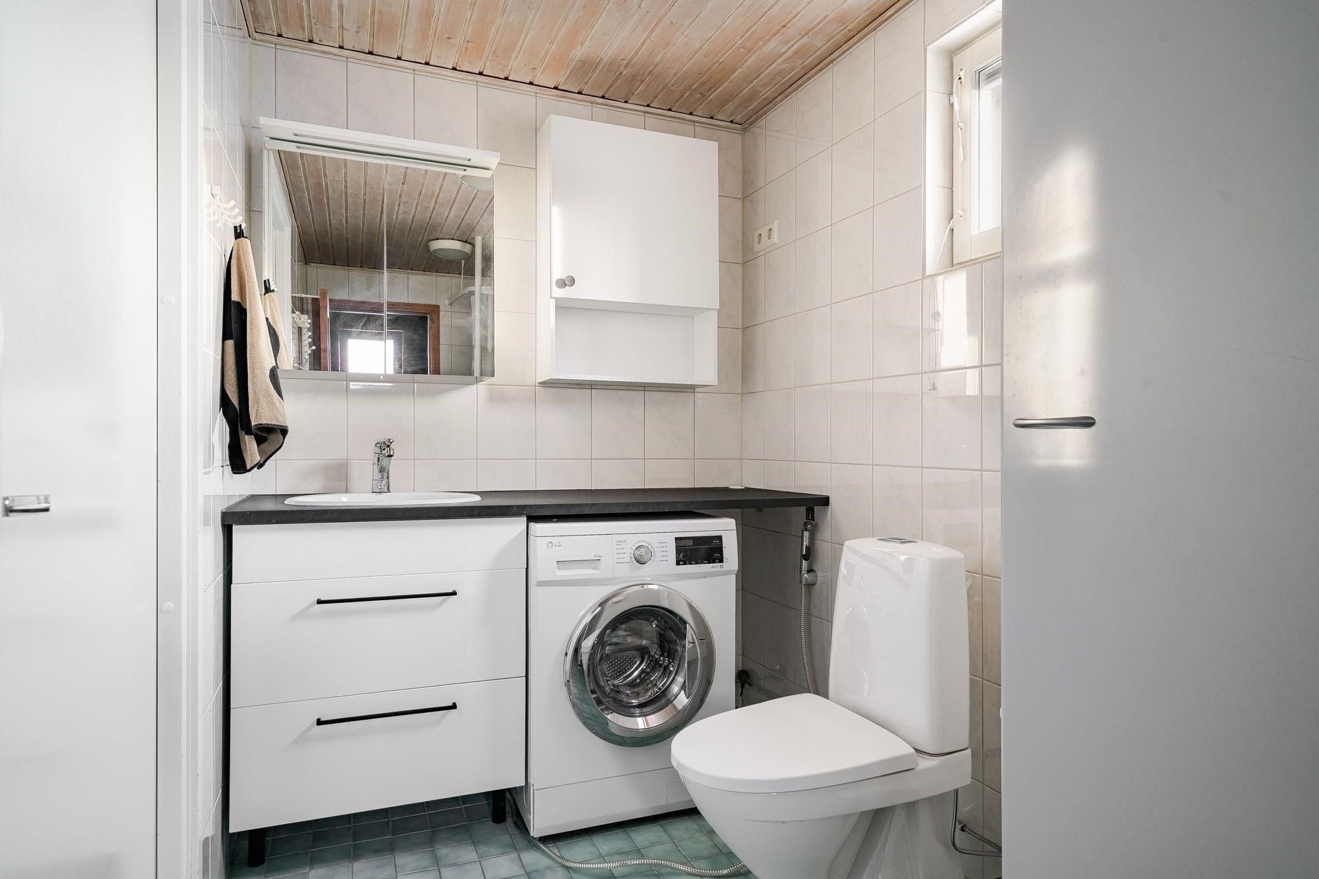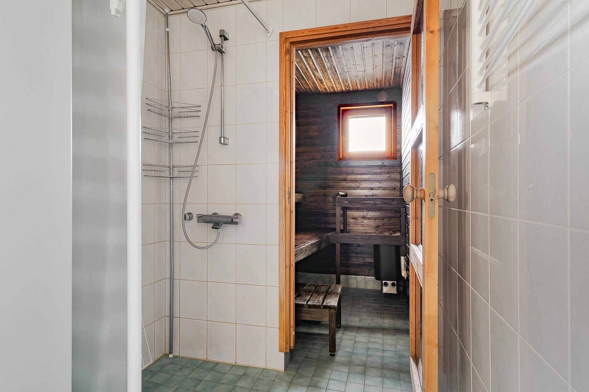 - Sauna, sähkökiuas, kylpyhuone, erillinen wc, suihku, suihkuseinä, peilikaappi, allaskaappi Kylpyhuoneessa, pesukoneliitäntä, lattialämmitys, kiinteät valaisimet.