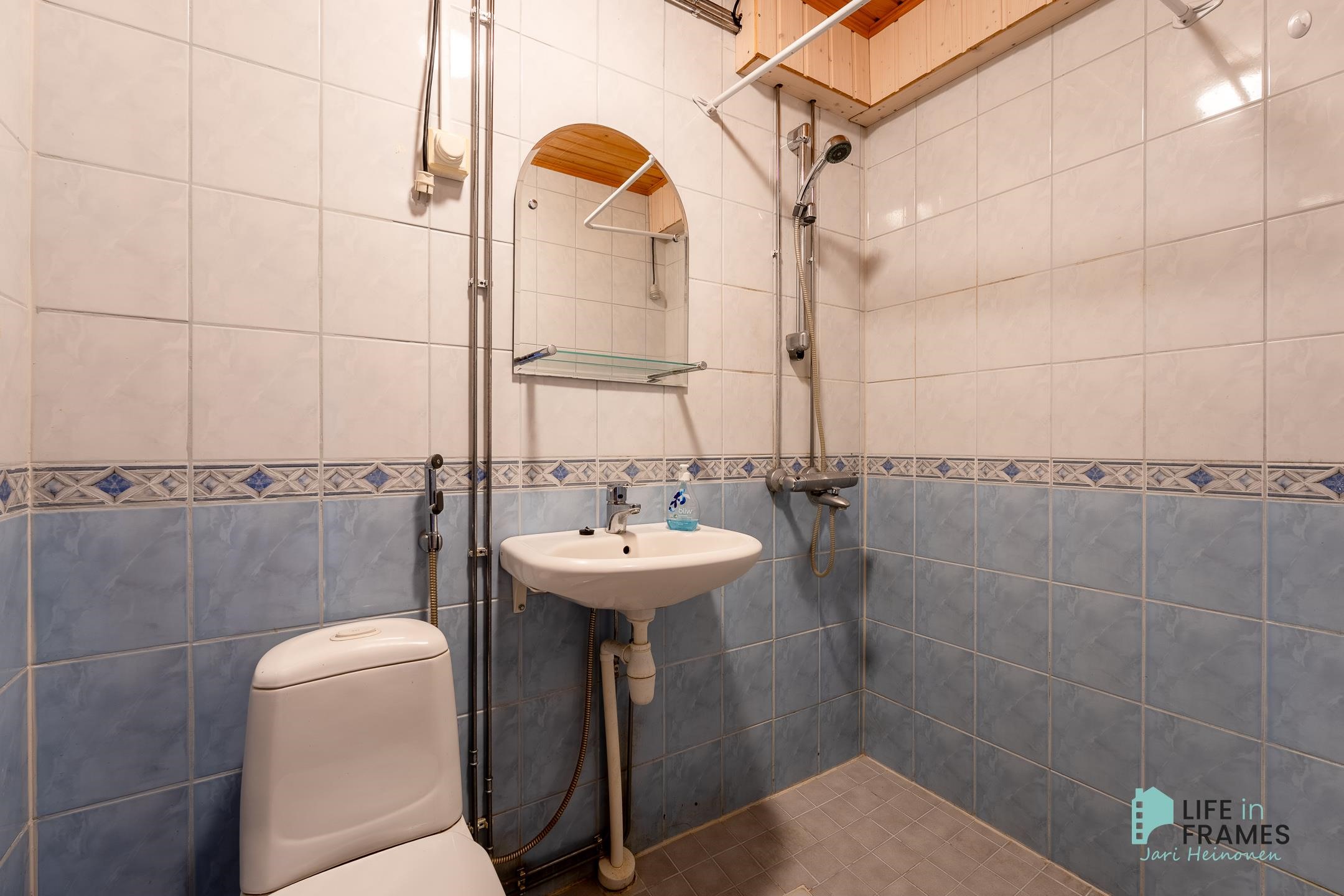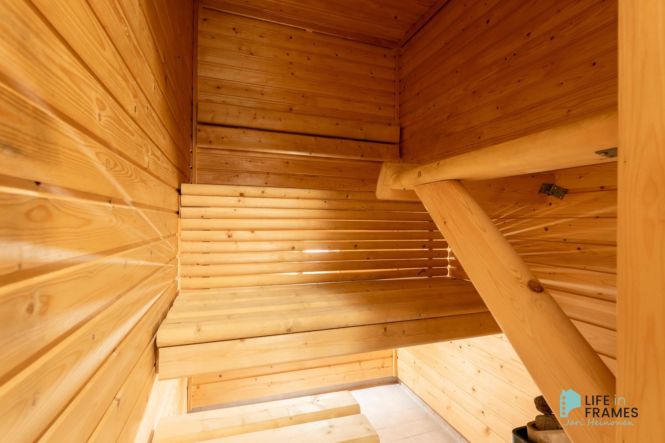 - Sauna, sähkökiuas, kylpyhuone, suihku, peilit, pesukoneliitäntä, lattialämmitys, kiinteät valaisimet.