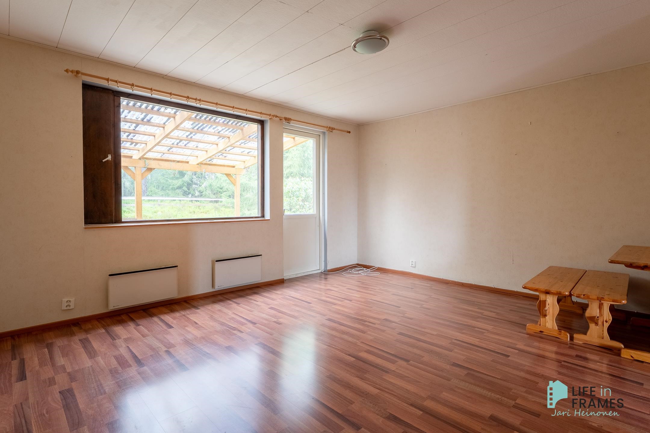- Keittiö: laminaatti lattiassa, puolipaneli/maali seinässä. Olohuone: laminaatti lattiassa, tapetti seinässä. Kylpyhuone: laatta lattiassa ja seinässä.
