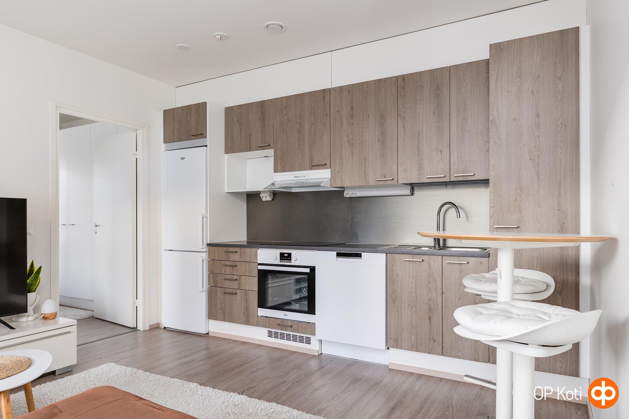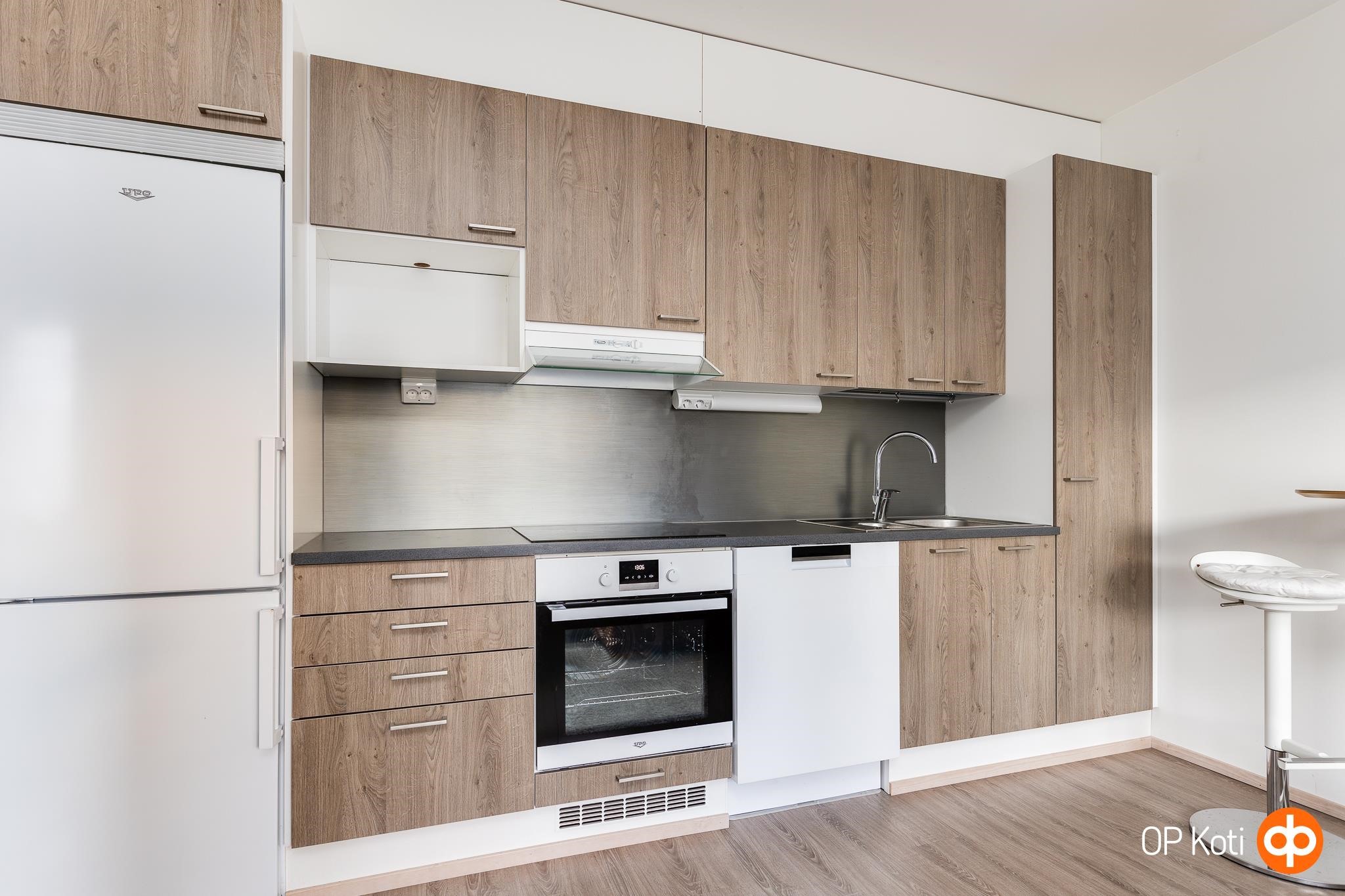 - Jääkaappipakastin, erillisuuni, liesitaso Induktio, liesikupu, astianpesukone, kiinteät valaisimet.
