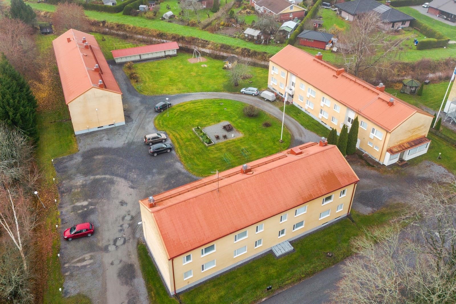 Kiinteistöllä sijaitsee kolme pienkerrostaloa sekä ulkovarastorakennus.