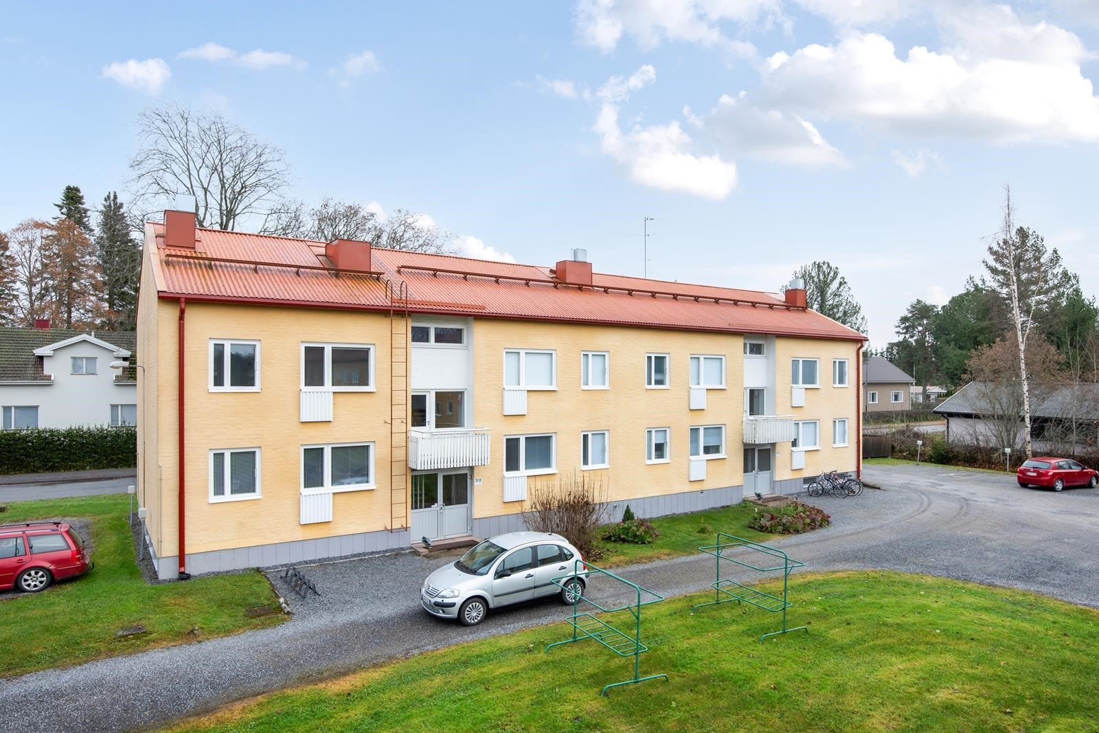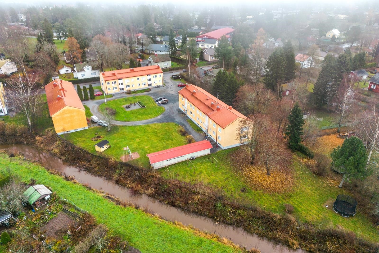 Myytävänä kolmen pienkerrostalon muodostama kiinteistökokonaisuus keskeisellä paikalla Ulvilan Nummelassa.