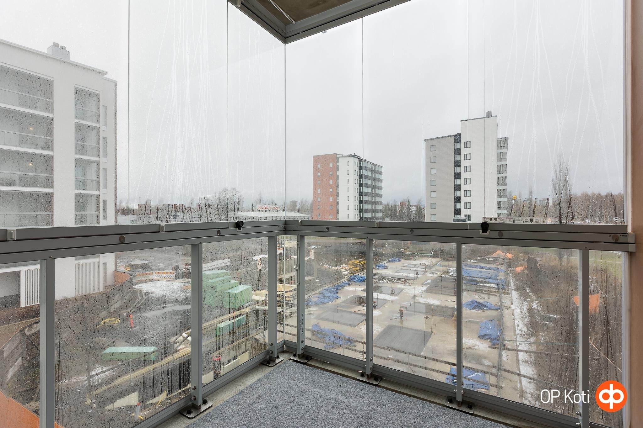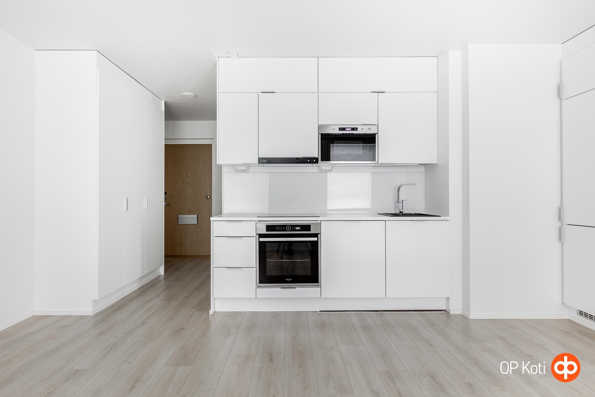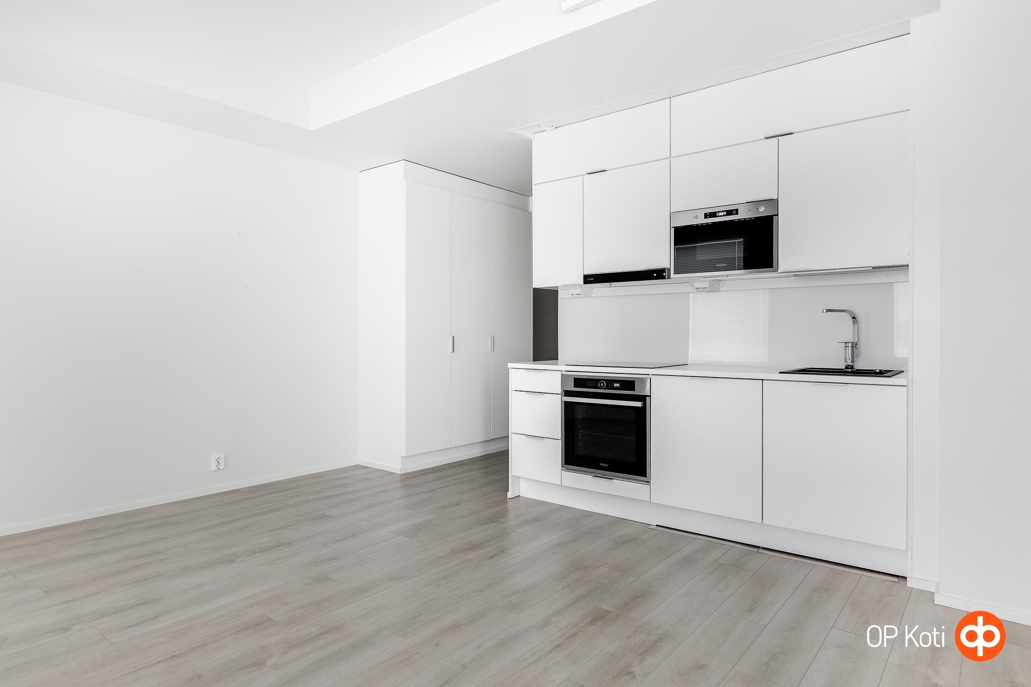 Tämä kolmannen kerroksen uudehko koti tarjoaa elämisen helppoutta ja kaupunkiasumisen parhaita puolia kompaktissa, mutta erittäin toimivassa paketissa. Valoisa tupakeittiö ja suuret ikkunat luovat avaran tunnelman. Makuuhuoneesta on suora käynti lasitetulle parvekkeelle, jossa nautit aamukahvit säällä kuin säällä. Parveke on kulmassa, jossa näkyvyys on laaja. Tilava kylpyhuone tekee arjesta sujuvaa - pyykkihuollollekin on oma paikkansa.