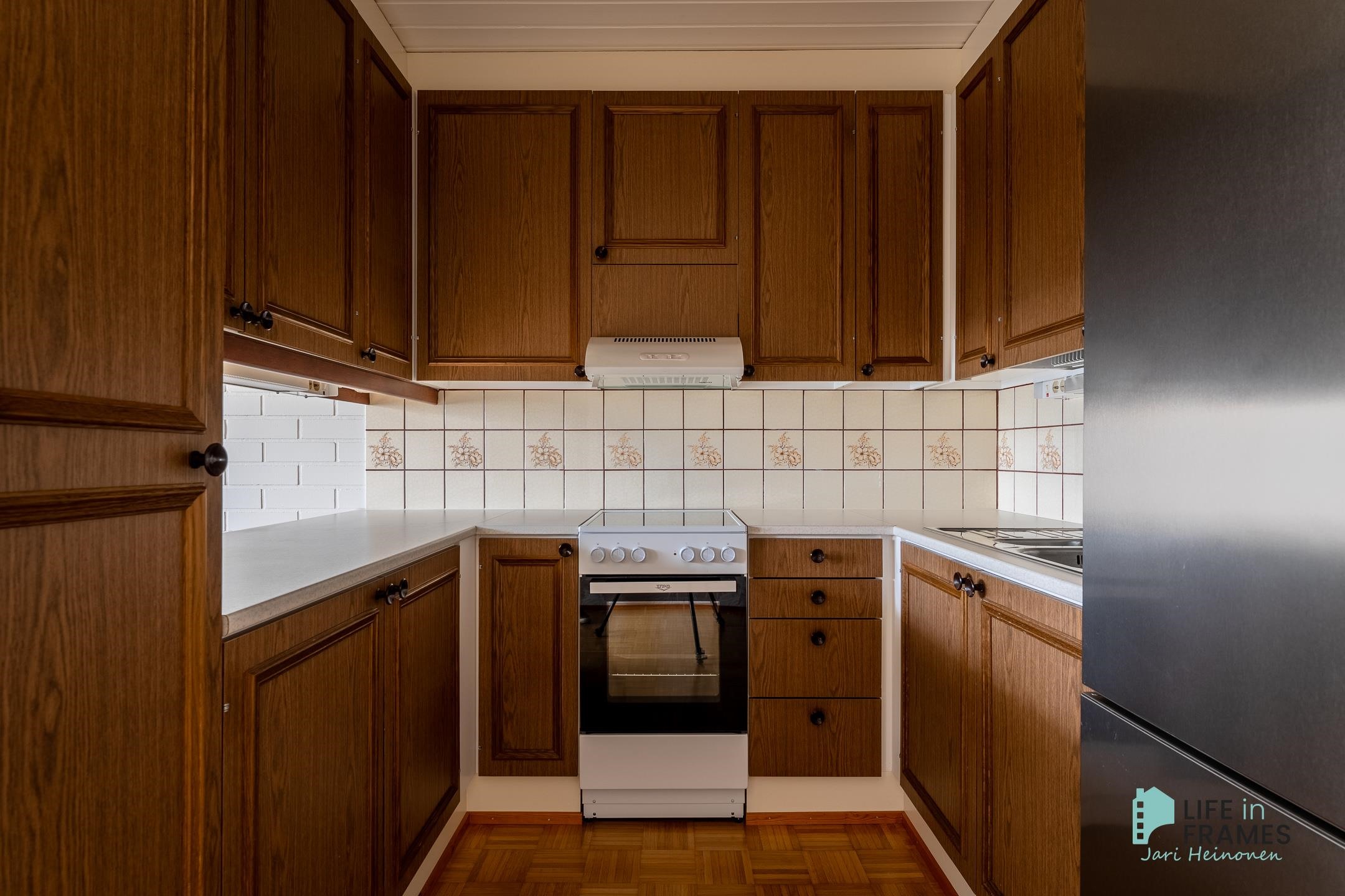 - Jääkaappipakastin, keraaminen liesi, liesituuletin, kiinteät valaisimet.