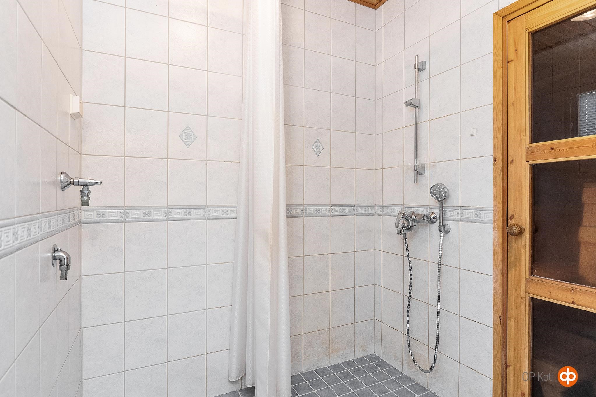 - Sauna, sähkökiuas, erillinen wc, suihku, peilikaappi, allaskaappi, pesukoneliitäntä, lattialämmitys, kiinteät valaisimet.