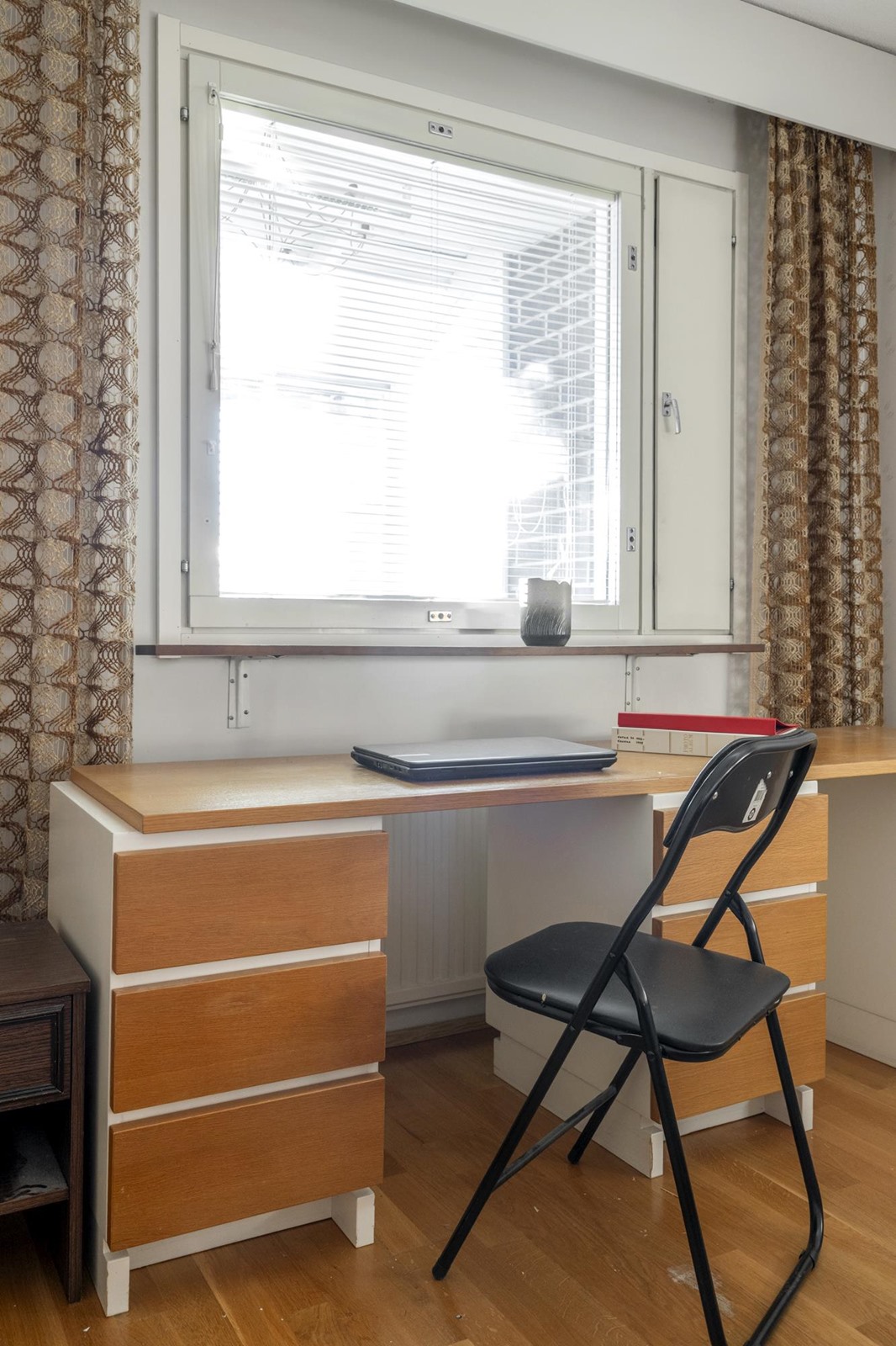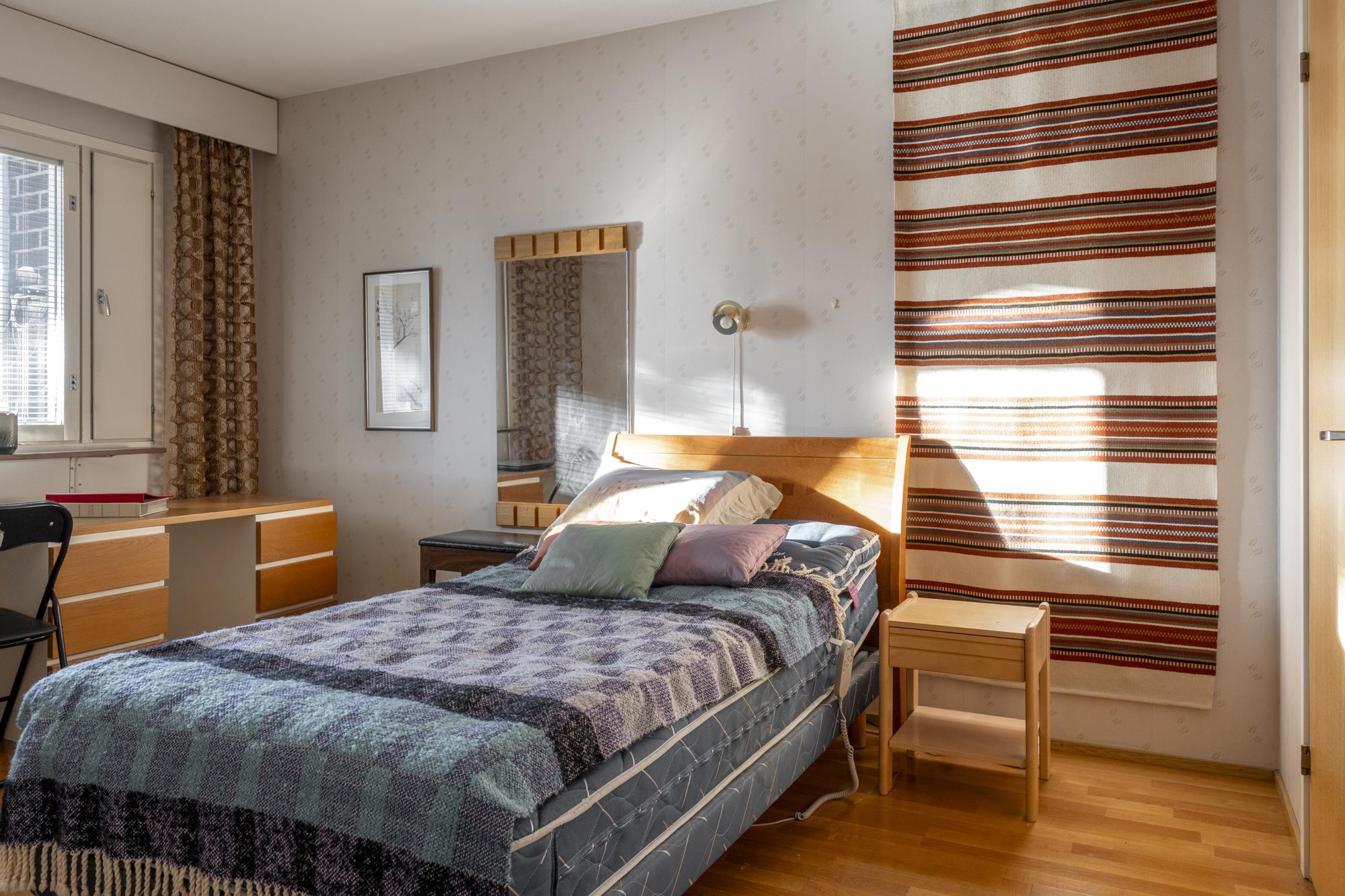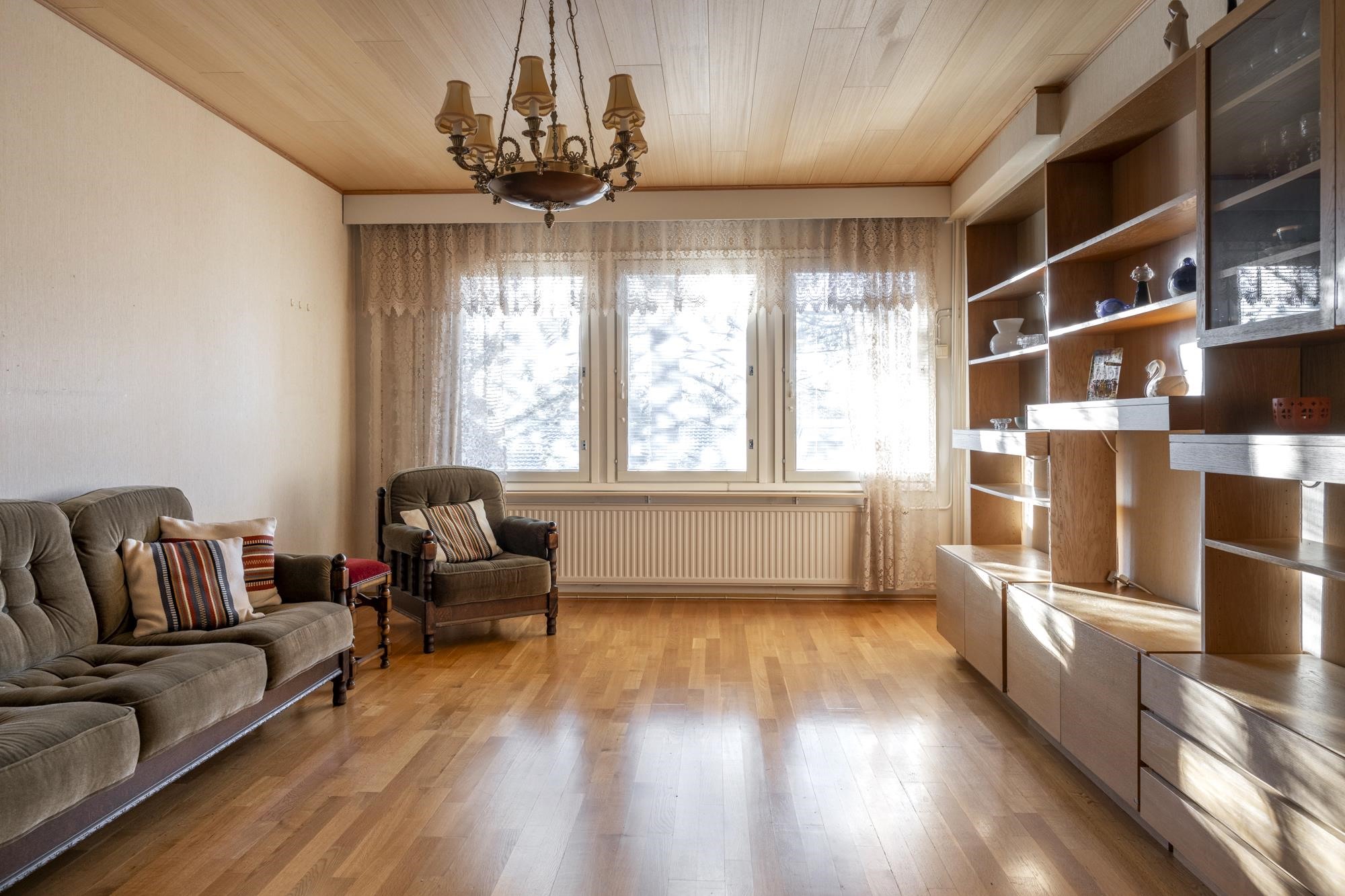Kodin pinta-ala, 70 neliömetriä, on jaettu käytännöllisesti ja tilaa, jopa toiselle huoneellekin löytyy. Valoisasta olohuoneesta kulku terassille ja pihalle. Keittiö sisältää kaiken tarvittavan arkeen, vaikka kaipaakin päivitystä. Makuuhuoneessa on ja siellä on myös vaatehuone. Kodin sauna tarjoaa täydellisen paikan rentoutumiseen pitkän päivän päätteeksi. Säilytystilaa on ruhtinaallisesti. Asunto kaipaa päivitystä tähän päivään, mutta mitään kiirreellisiä remontteja ei tarvitse tehdä. Voit siis muuttaa sisään ja aloittaa remontoimisen rauhassa.