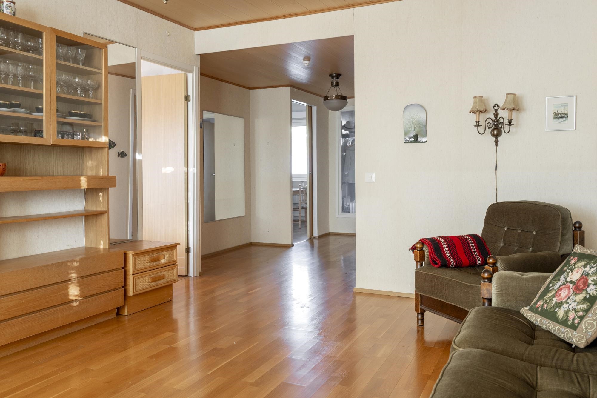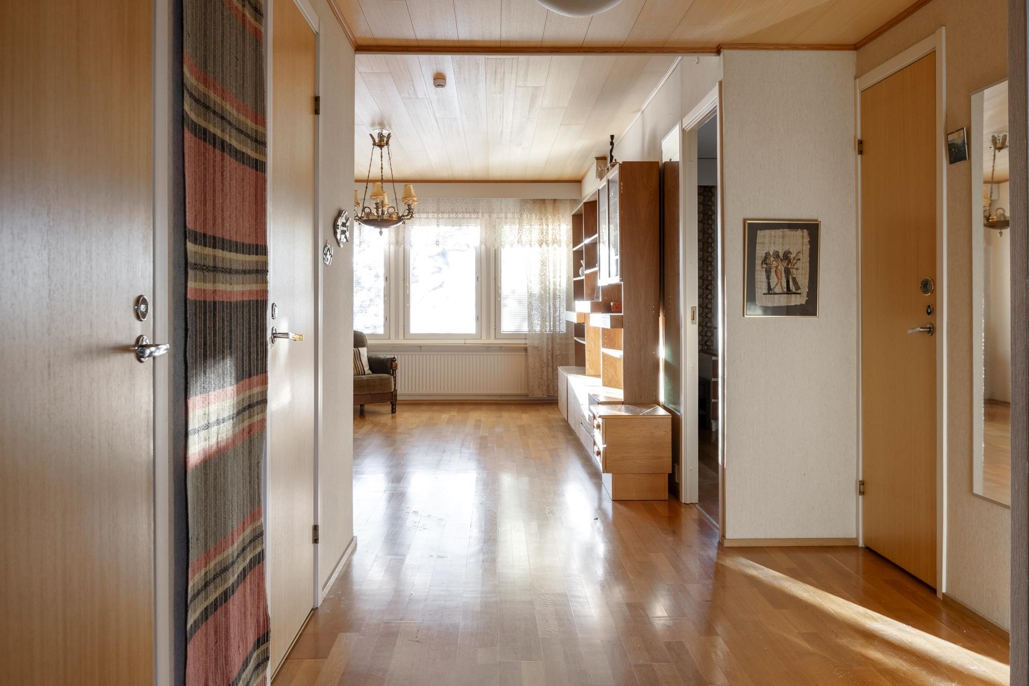 - Keittiö: laminaatti, kaakeli ja maali. Olohuone: parketti ja maali. Makuuhuone 1: parketti ja maali. Sauna: puuta. Kylpyhuone: kaakeli ja laatta. Wc: muovimatto ja seinät.