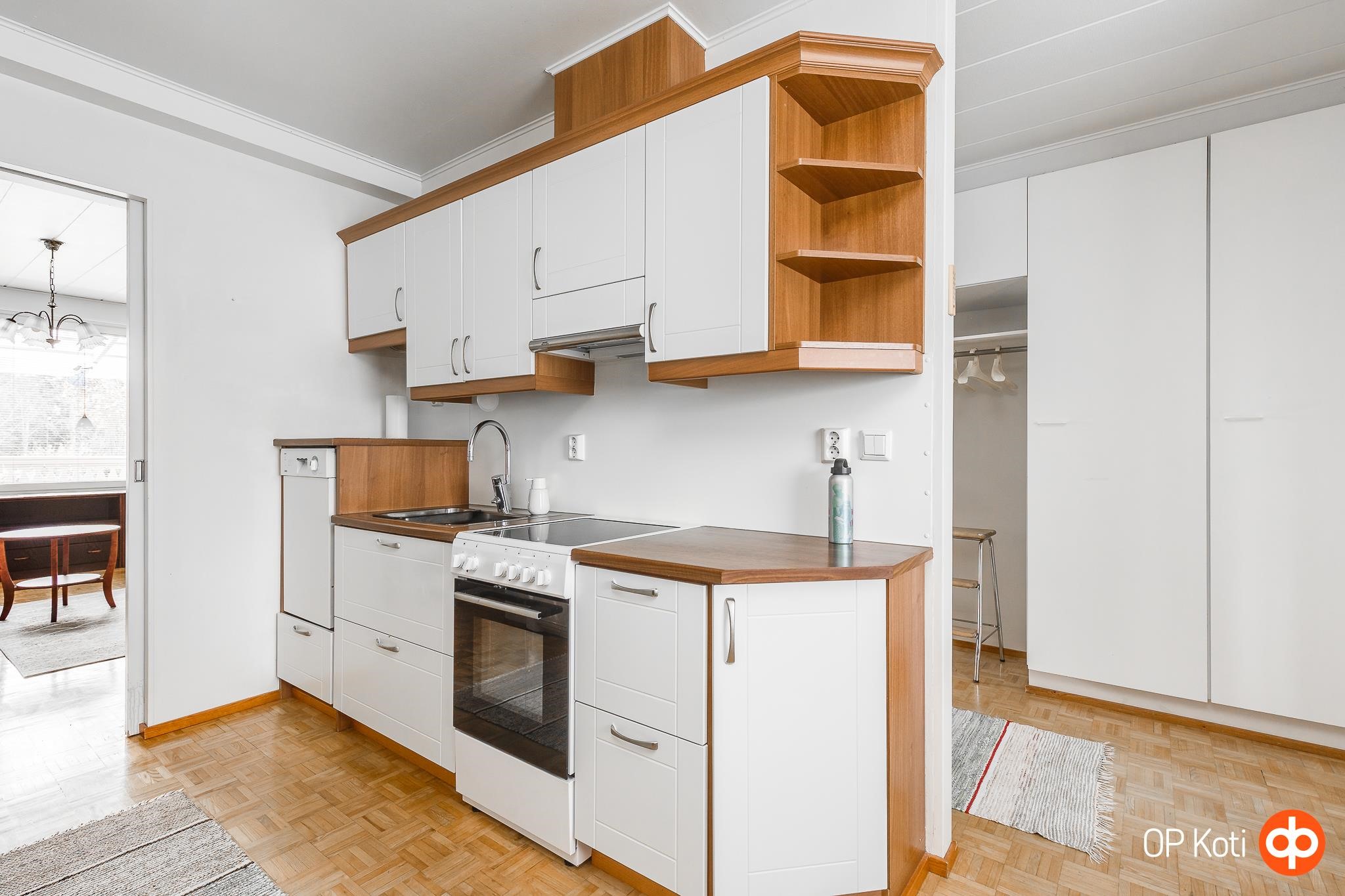- Jääkaappi, lattialiesi keraaminen, keraaminen liesi, liesituuletin, mikroaaltouuni, astianpesukone, kaapistot, kiinteät valaisimet. Keittiö remontoitu 2010-luvulla.
