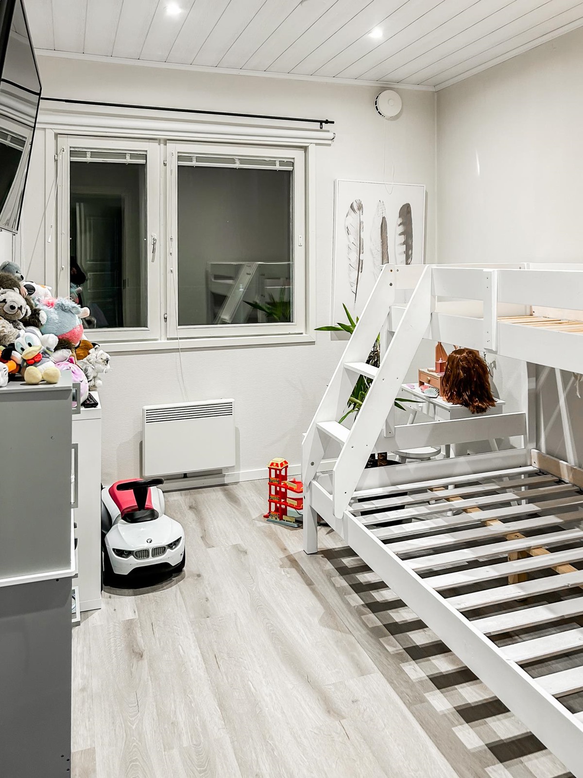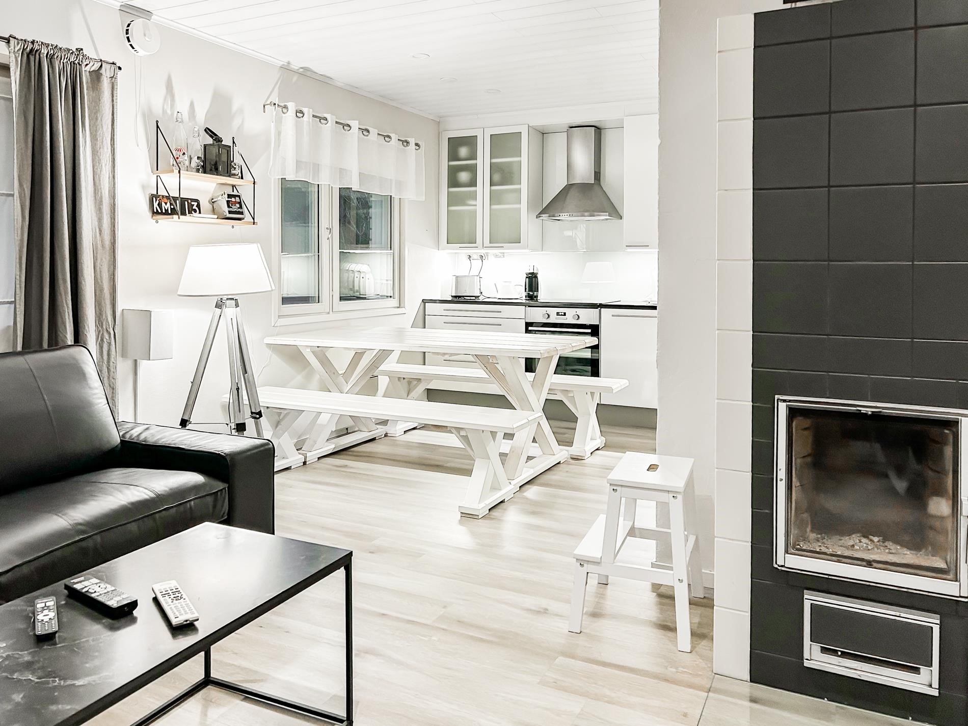 - Sähköpatterilämmitys. Lattialämmitys, ilmalämpöpumppu ja varaava takka.
