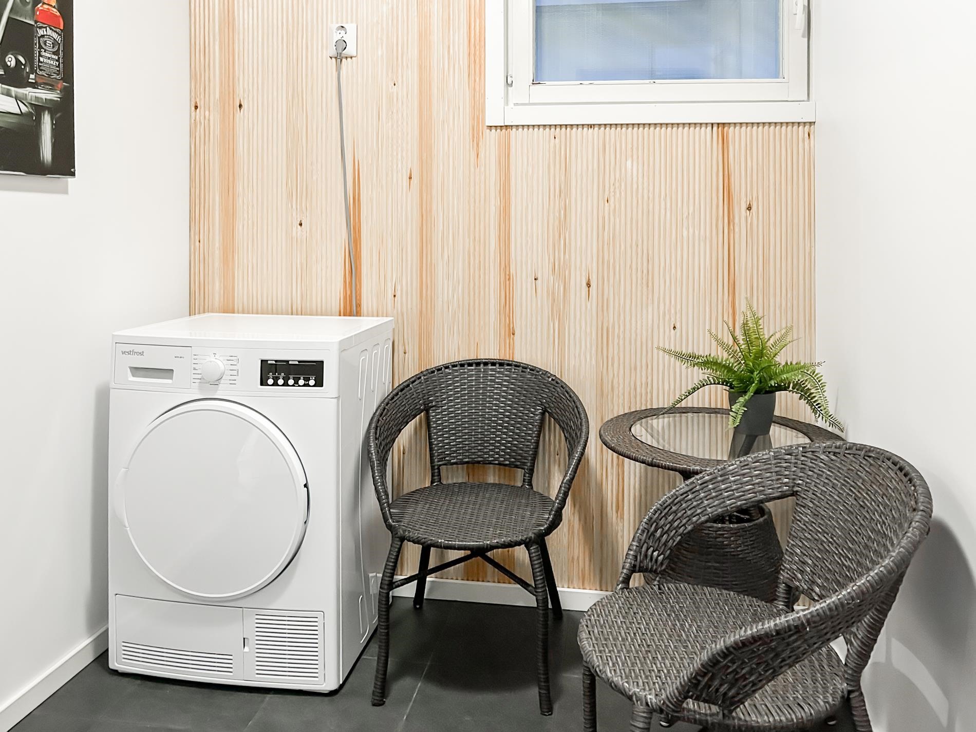 - Sauna, sähkökiuas, kylpyhuone, erillinen wc, suihku, peilikaappi, kaapit, allaskaappi, pesukoneliitäntä, lattialämmitys, kiinteät valaisimet.