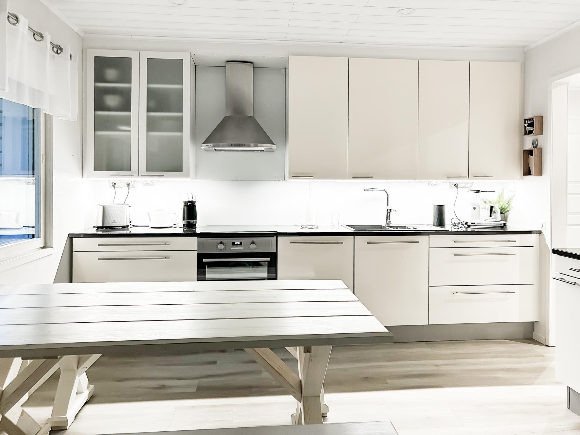 - Jääkaappipakastin, induktioliesi, liesituuletin, astianpesukone, kaapistot uusittu 2006, kiinteät valaisimet.