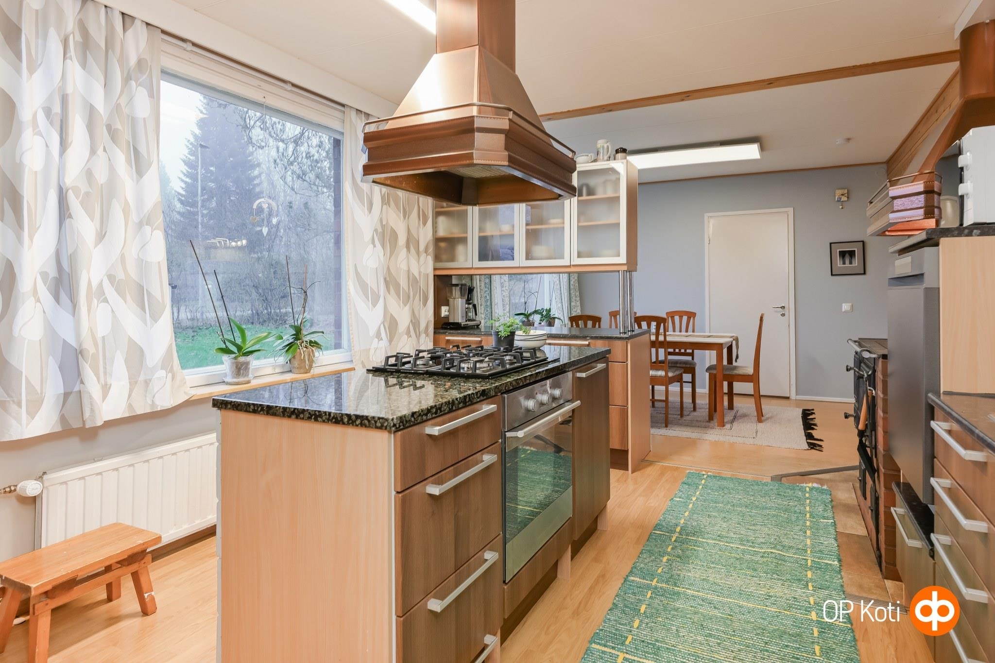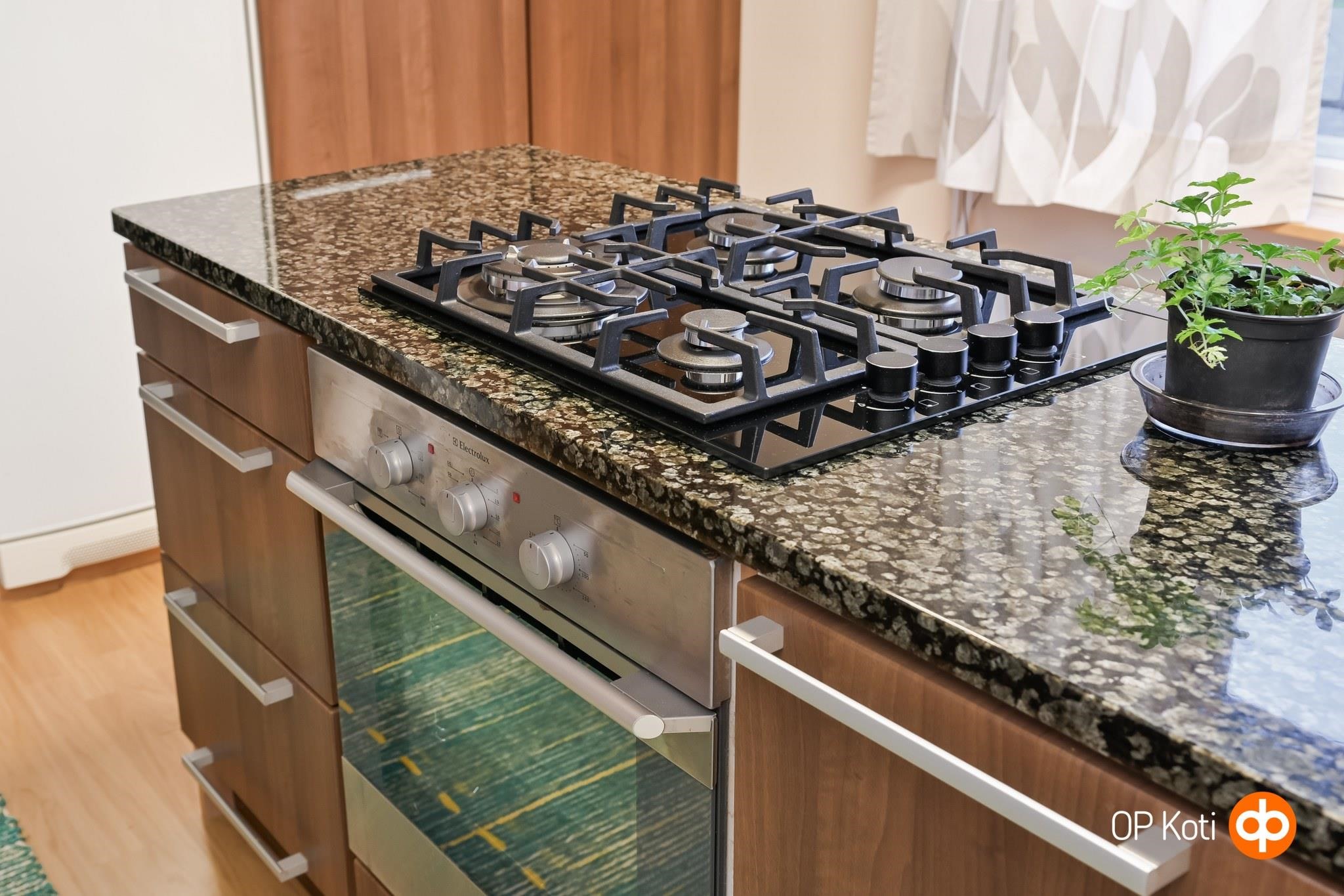 - Jääkaappi, erillisuuni, kaasuliesi, liesituuletin, leivinuuni, astianpesukone, kaapistot, kiinteät valaisimet.
